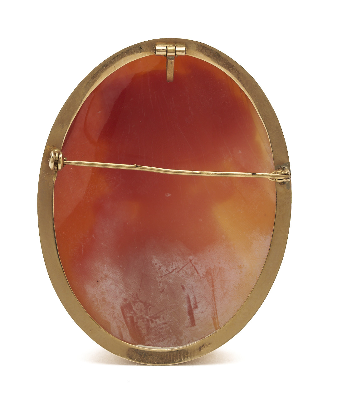 Ladies’ 14K yellow gold framed cameo. The cameo is marked “585” and XRF tests 14K gold. The cameo is 2 in. x 1 1/2 in. and has a gross weight of 13.22 grams.
