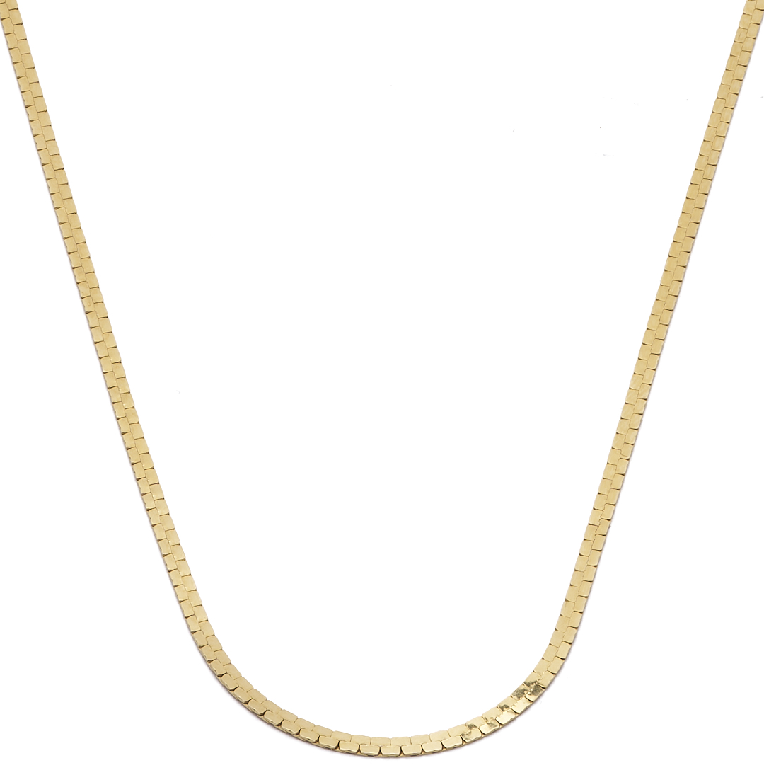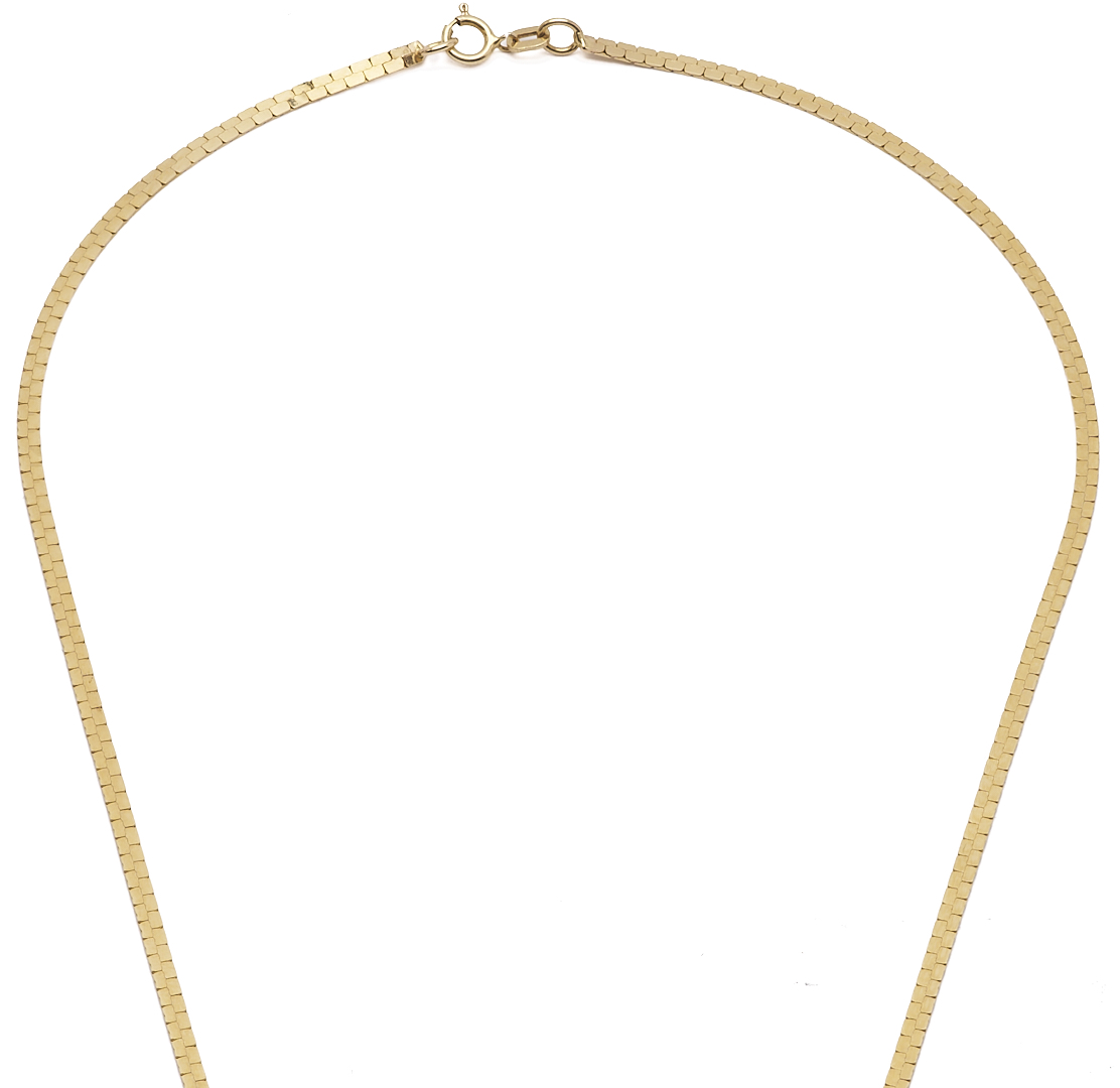 Ladies’ 14K yellow gold necklace. The necklace is marked “14K” and XRF tests 14K gold. The necklace is 18 in. L. and has a weight of 5.31 grams.