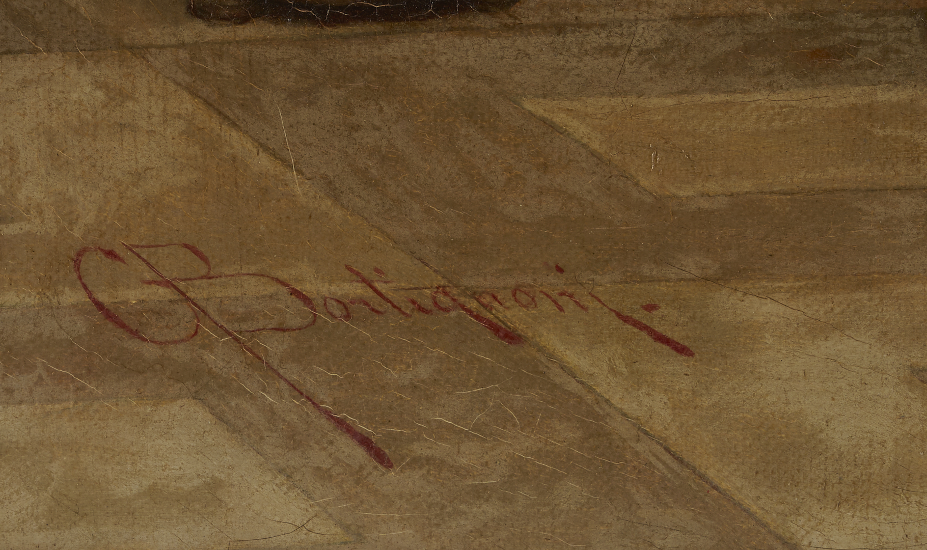 Overall very good condition. With fine, stable craquelure throughout. Frame with negligible abrasions and losses, most not visible frontally.