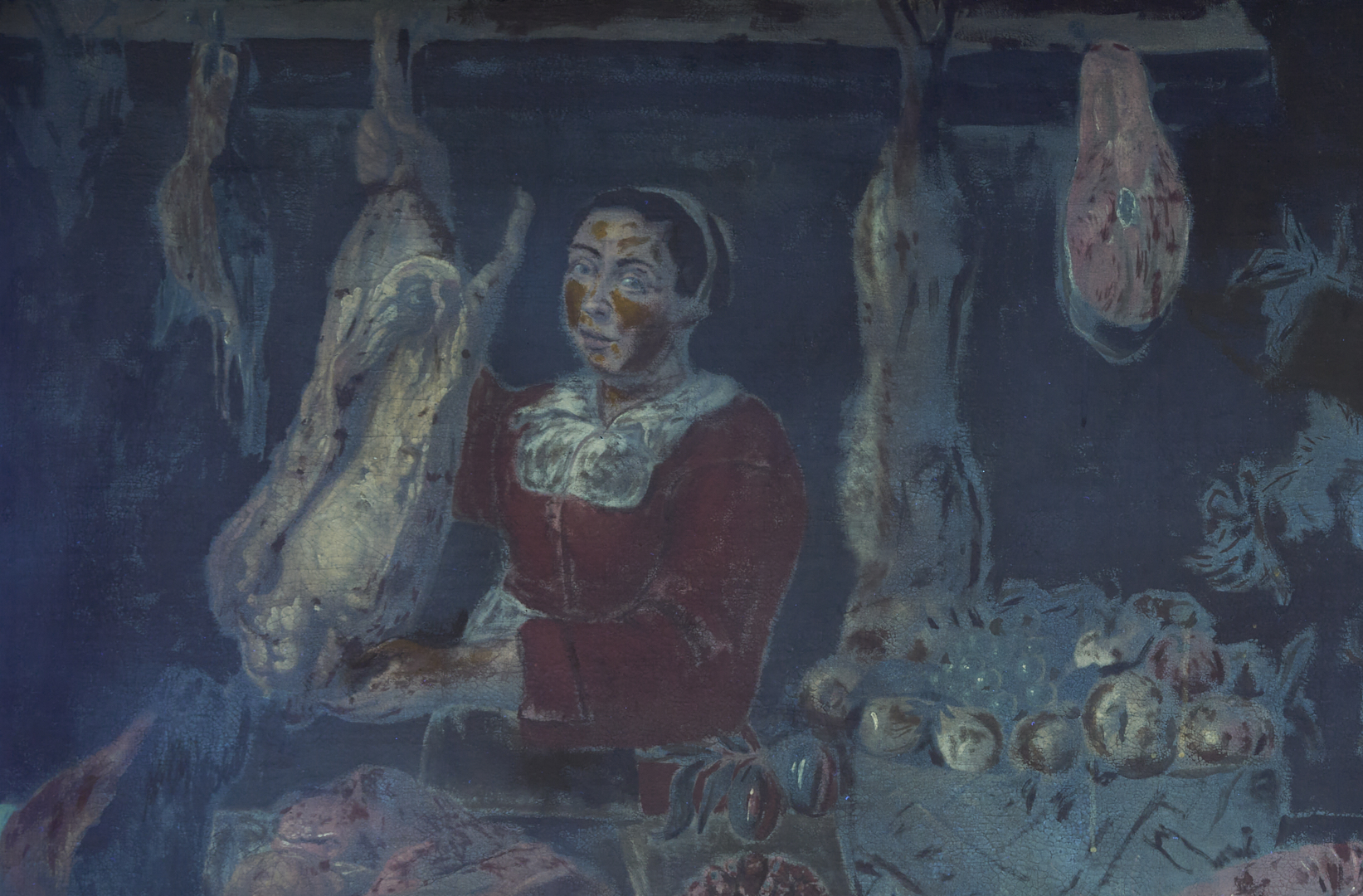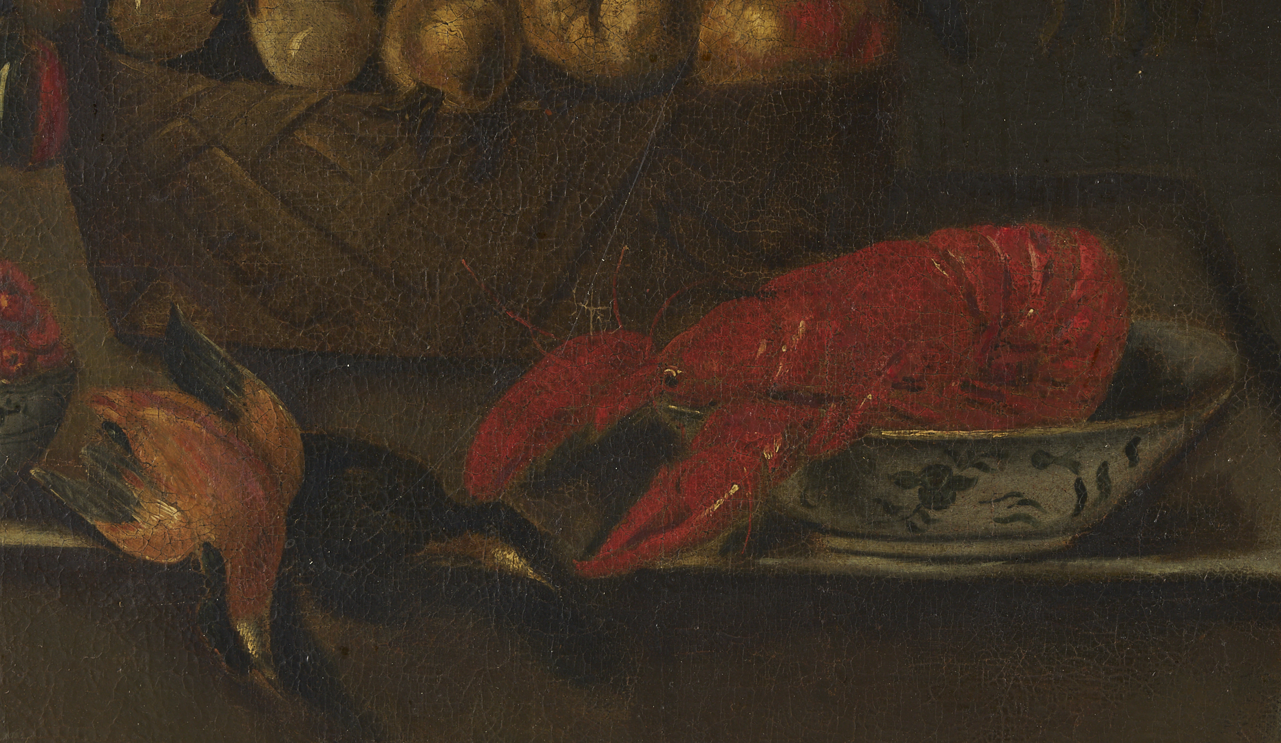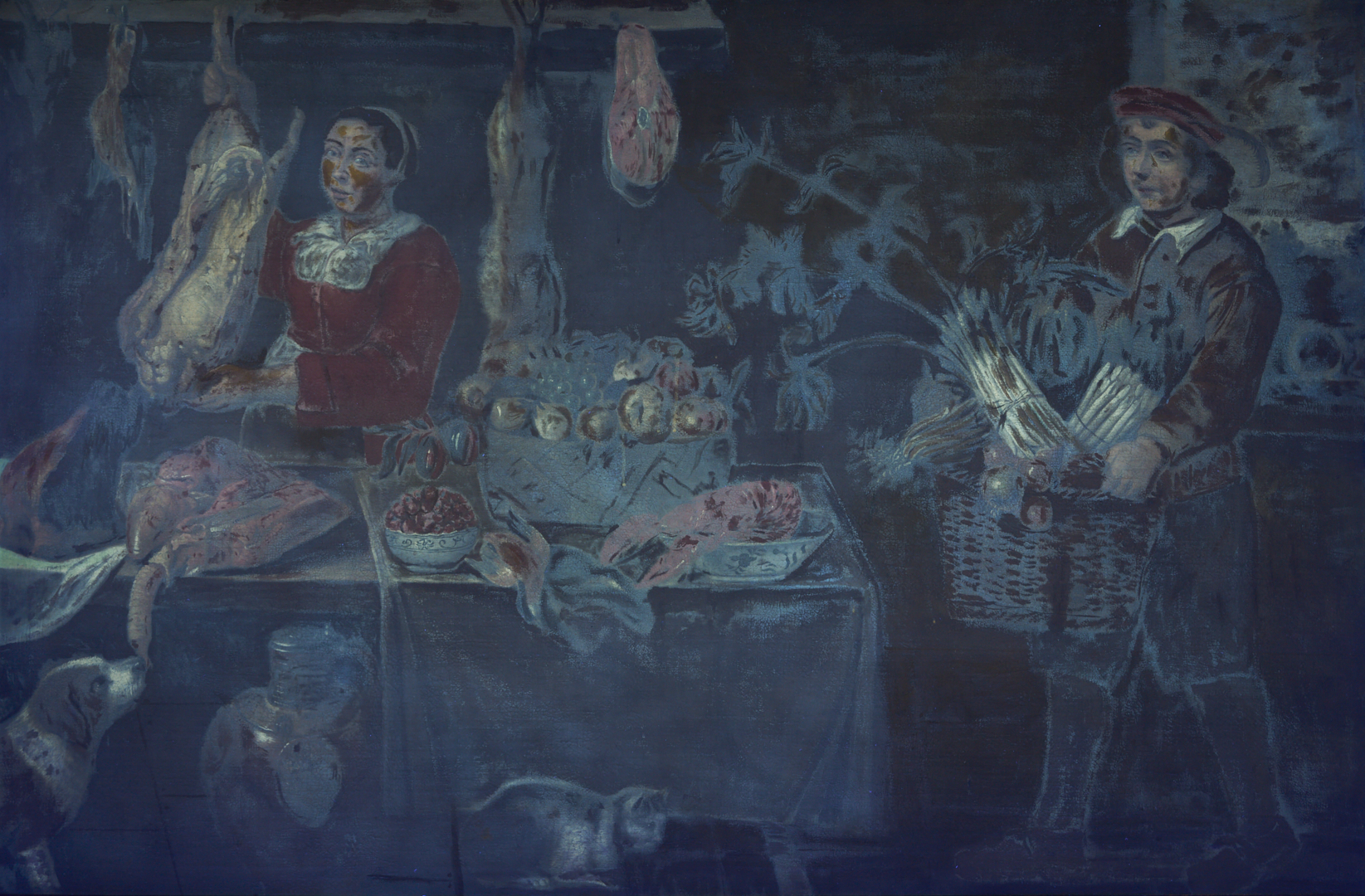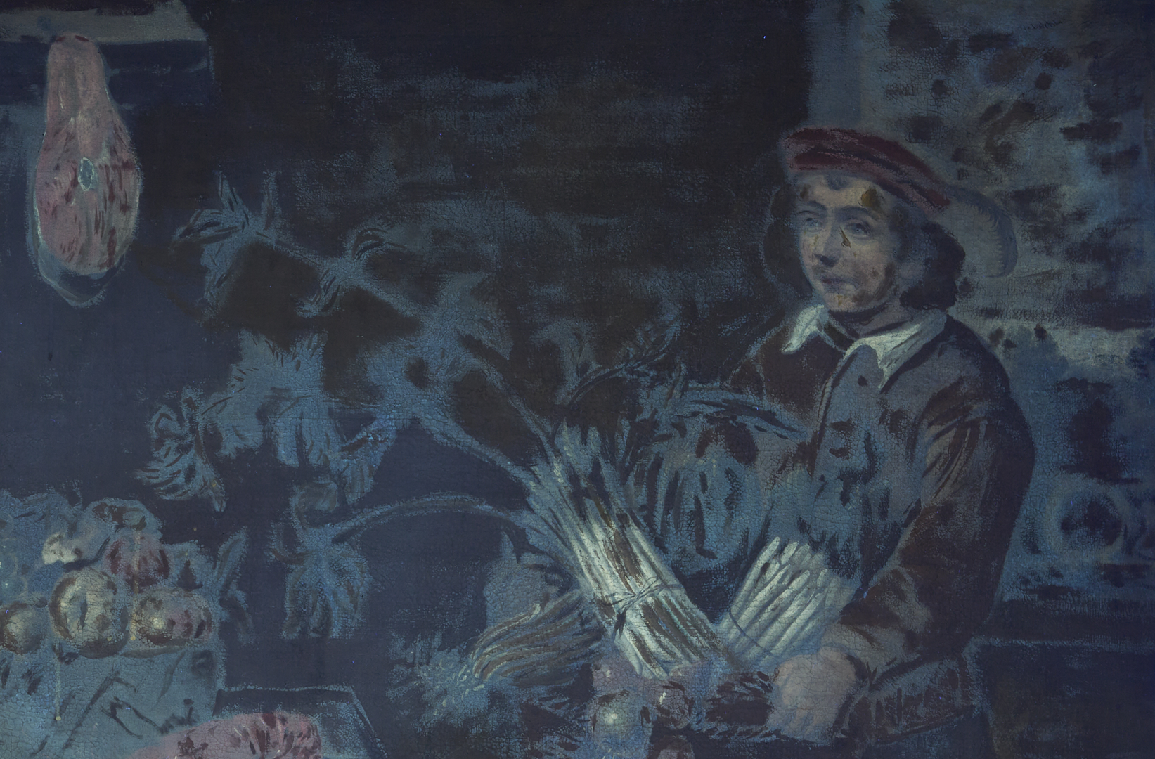 Canvas has been relined. Extensive retouching to background and floor, plus localized areas of retouching throughout including to faces. See U/V photography. With stable craquelure throughout.