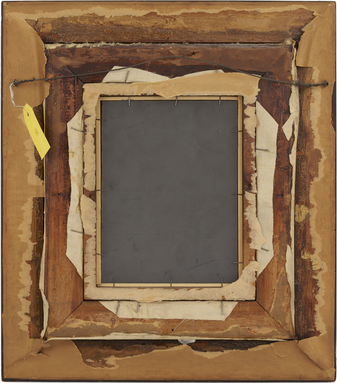 Painting is in overall very good condition and is housed under glass. Not examined out of the frame. Frame with scattered minor losses and repairs.