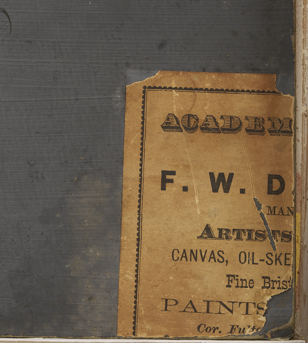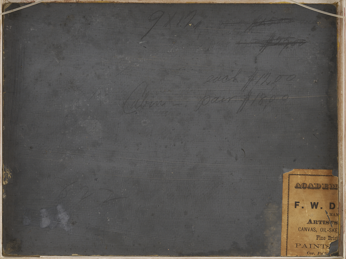 Overall very good condition, with scattered retouch especially to sky, largest area above palm, 1/2 in. x 1/2 in. See UV photography.
