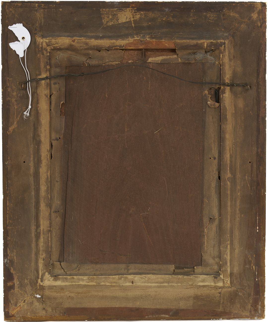 Overall very good condition. With minor pigment losses to sky at left and right of woman and to field at center right, largest approximately 3/16 in. x 1/16 in. Frame with minor abrasions and losses, especially to corners.