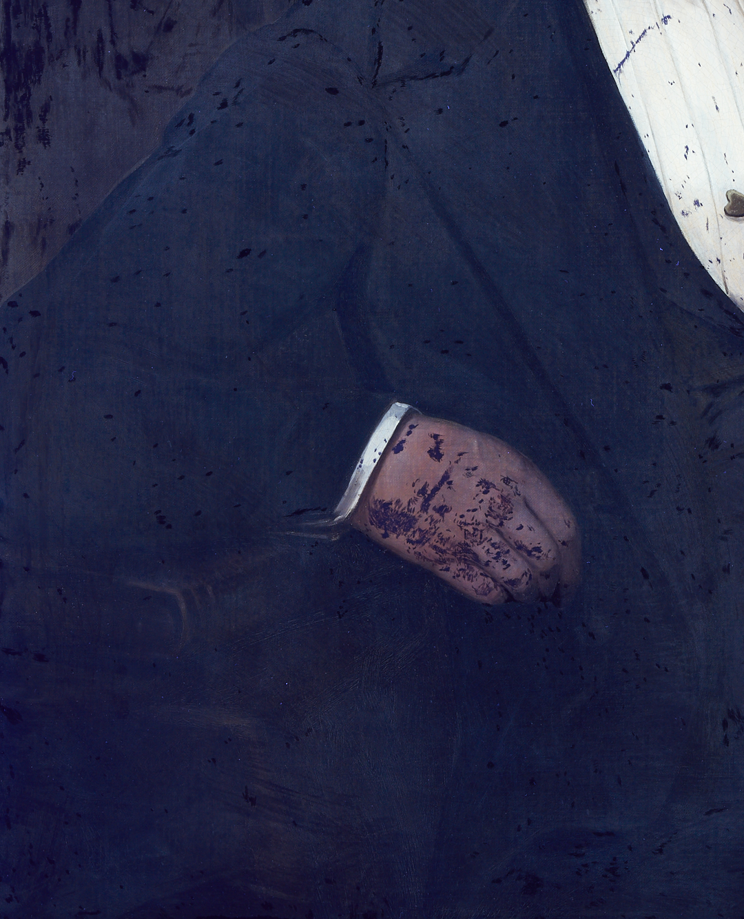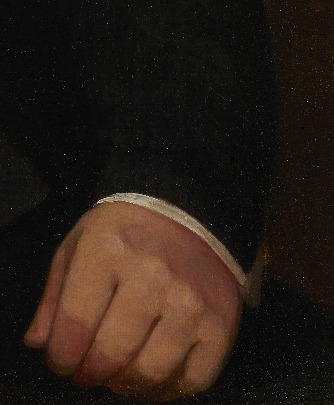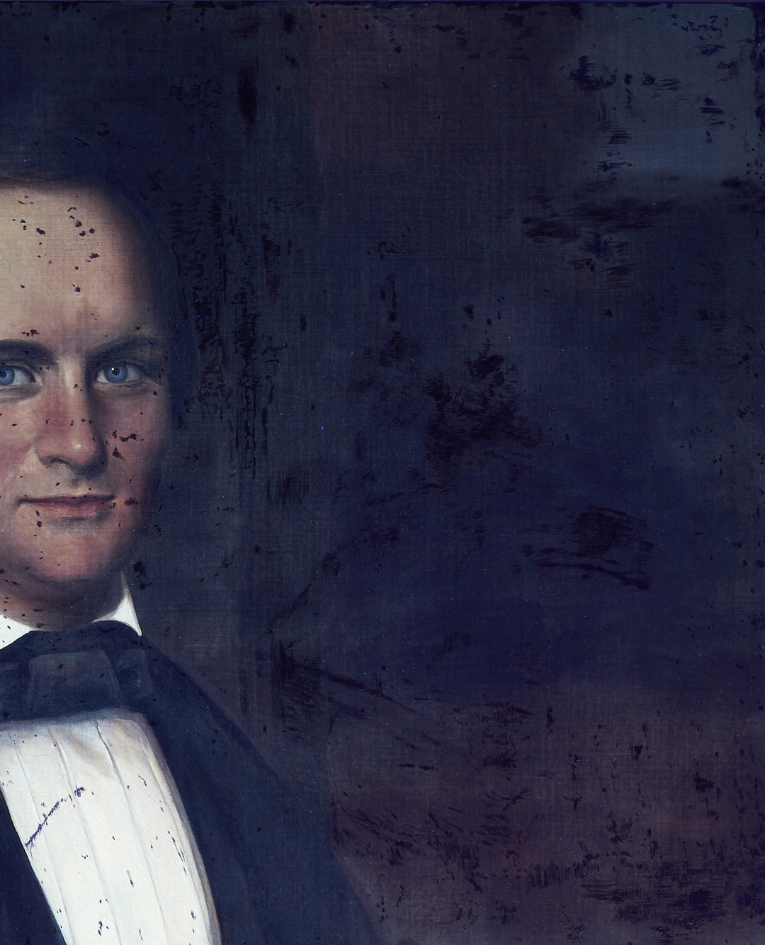 CONDITION: Painting has been professionally conserved, canvas relined and restretched. Overall light craquelure. Scattered retouching throughout, primarily to the upper half. Largest area scattered in the darker background at upper left, throughout 19 19-inch x 9-inch area. See U/V photography.