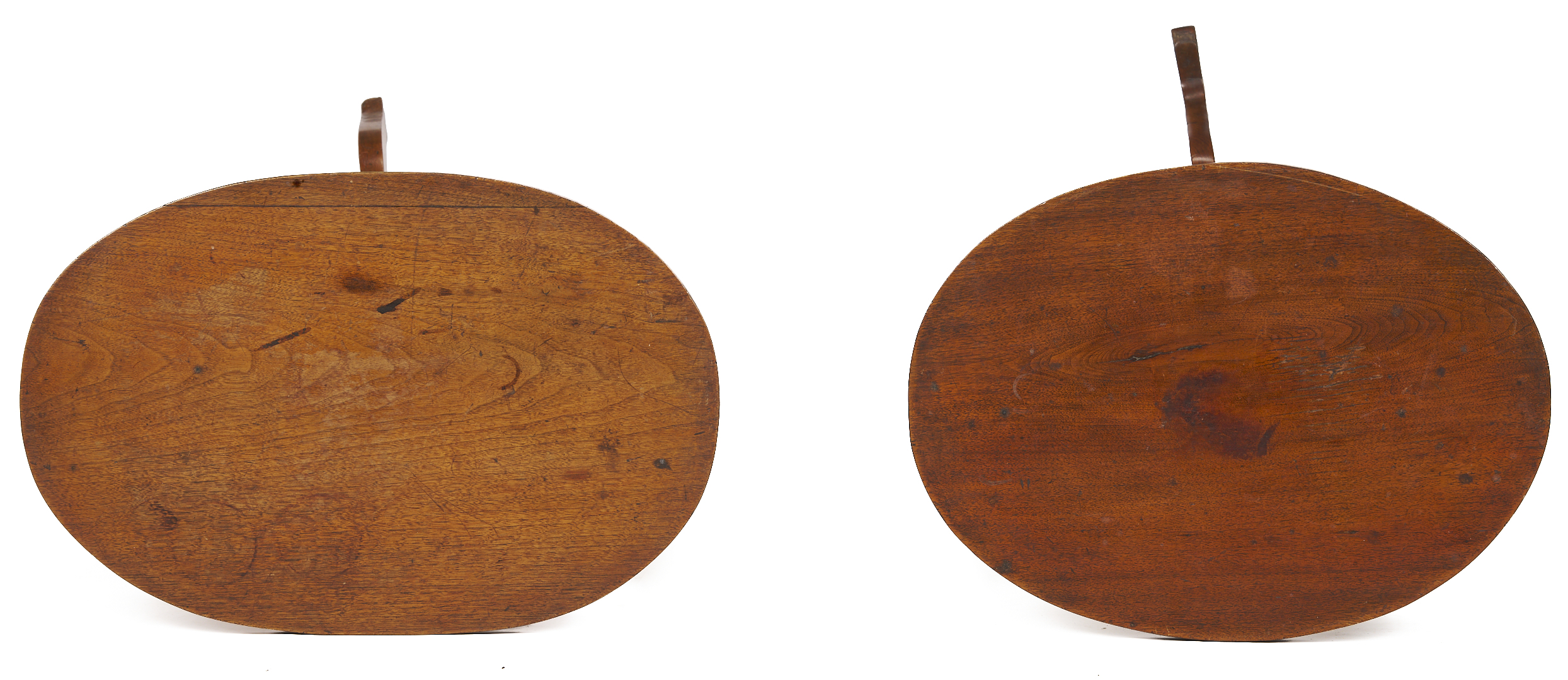 CONDITION: Both with staining and minor abrasions to the top. Smaller stand with old repair to one leg.