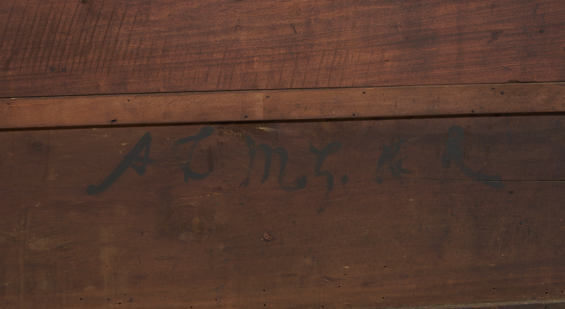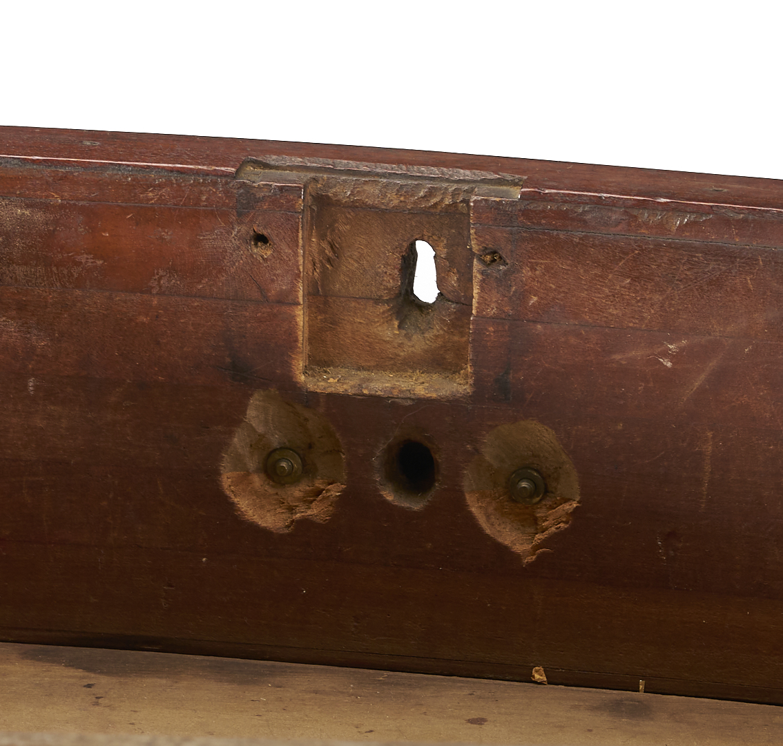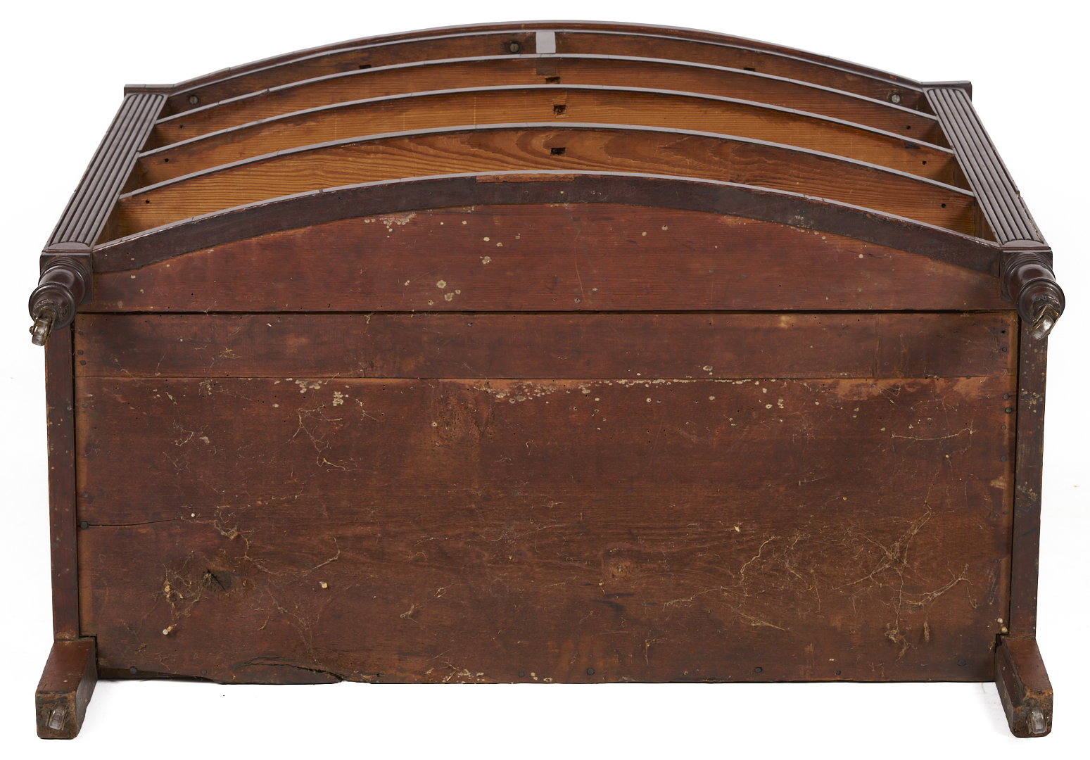 Overall good condition with minor surface wear. Brasses are not original. One backboard appears to be an old replacement, minor buildup of drawer sides, locks missing.