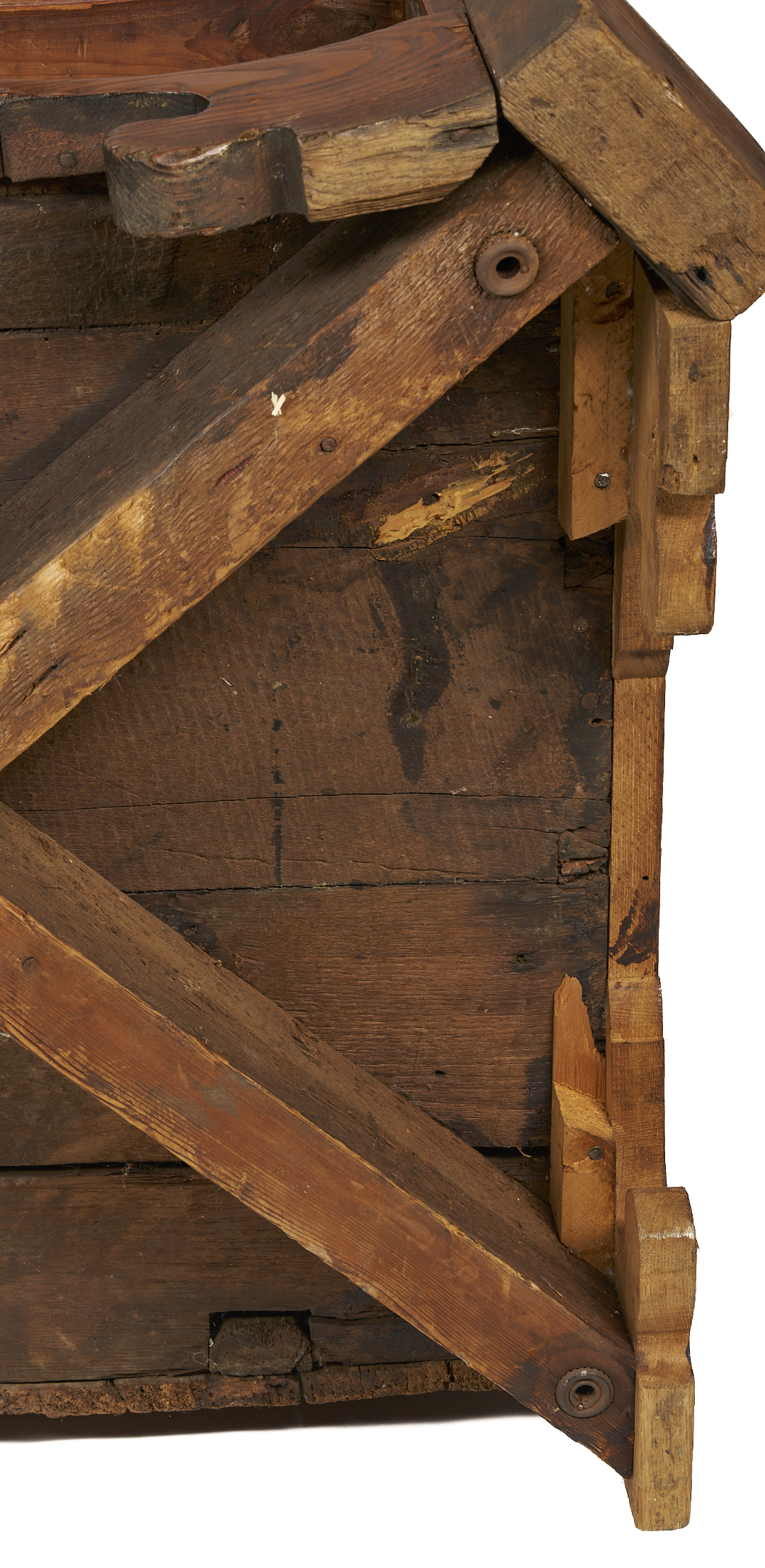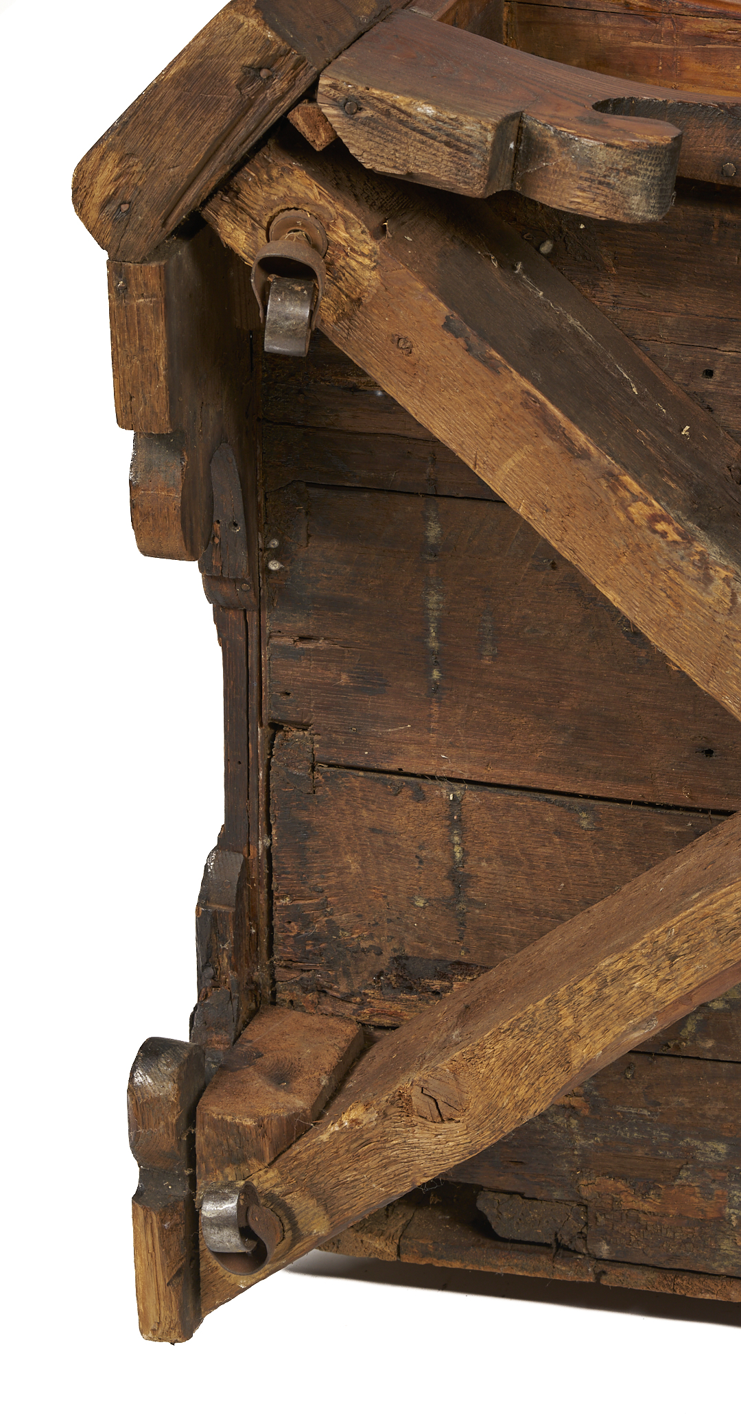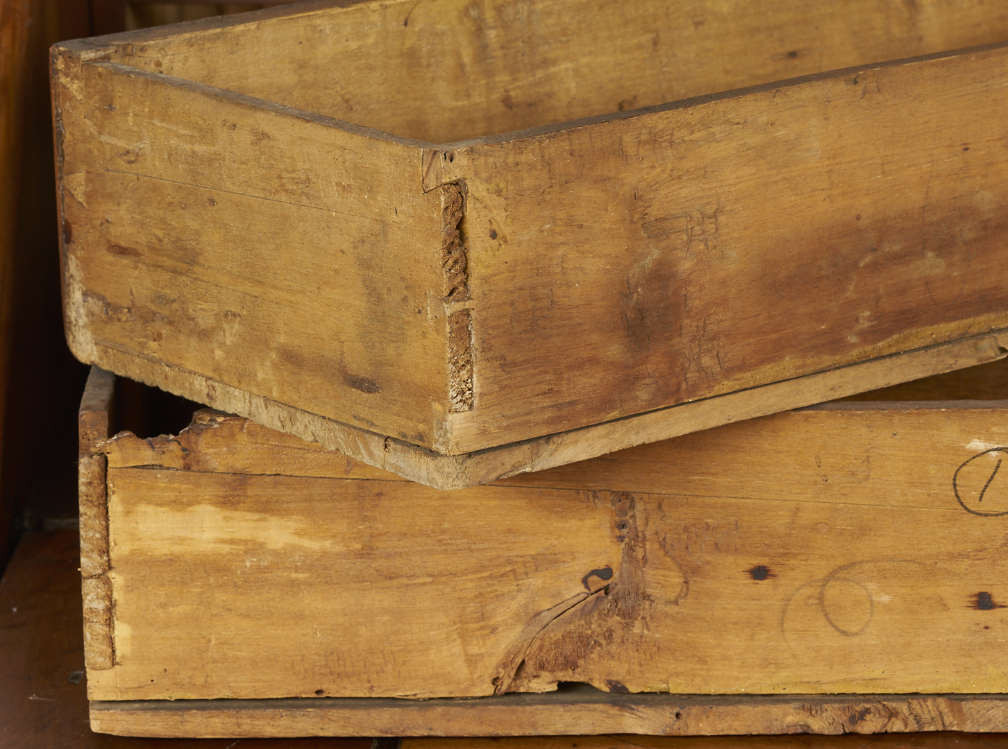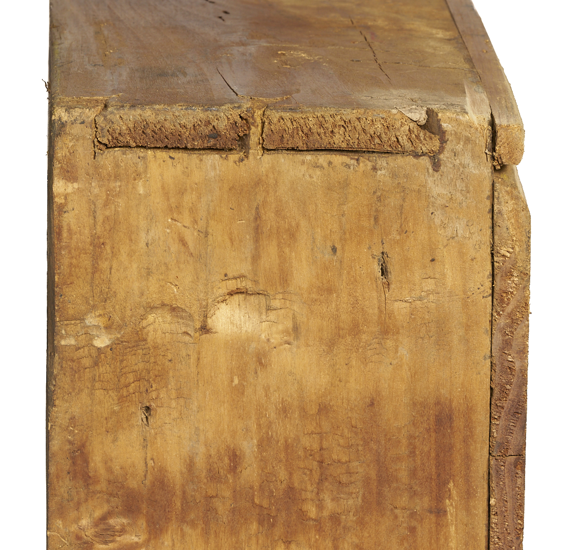 Scattered wood shrinkage to the surface with scattered losses and repairs to the veneer, especially around the lid edges, drawer edges, and escutcheons. Keys are not present. Two feet are fitted with later castors.