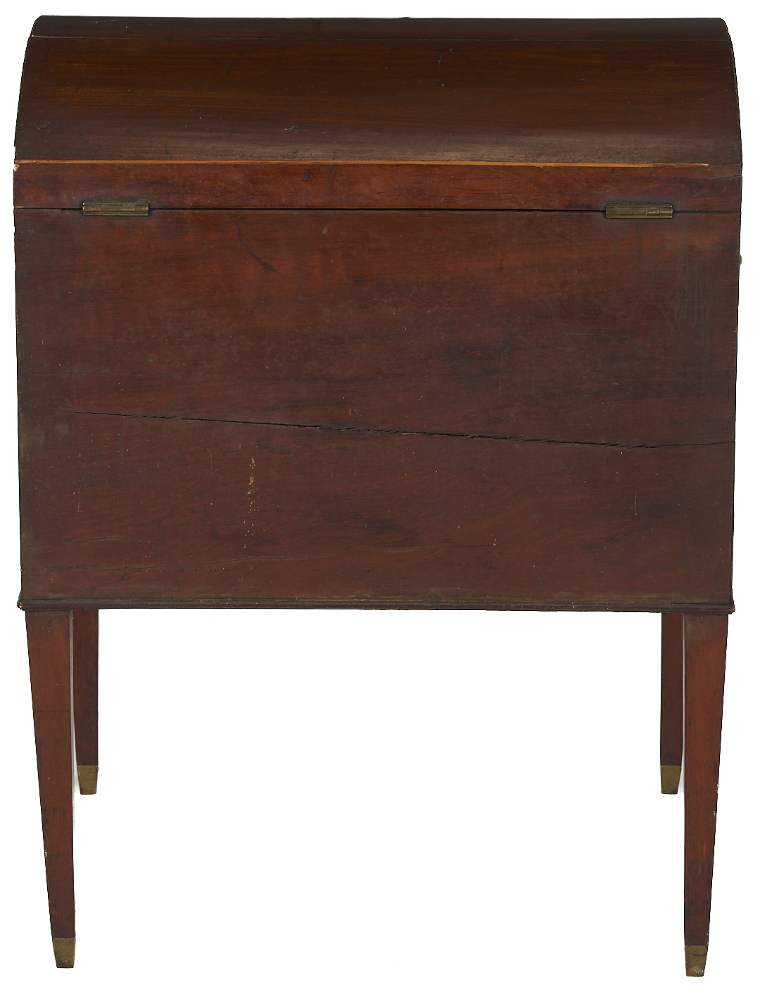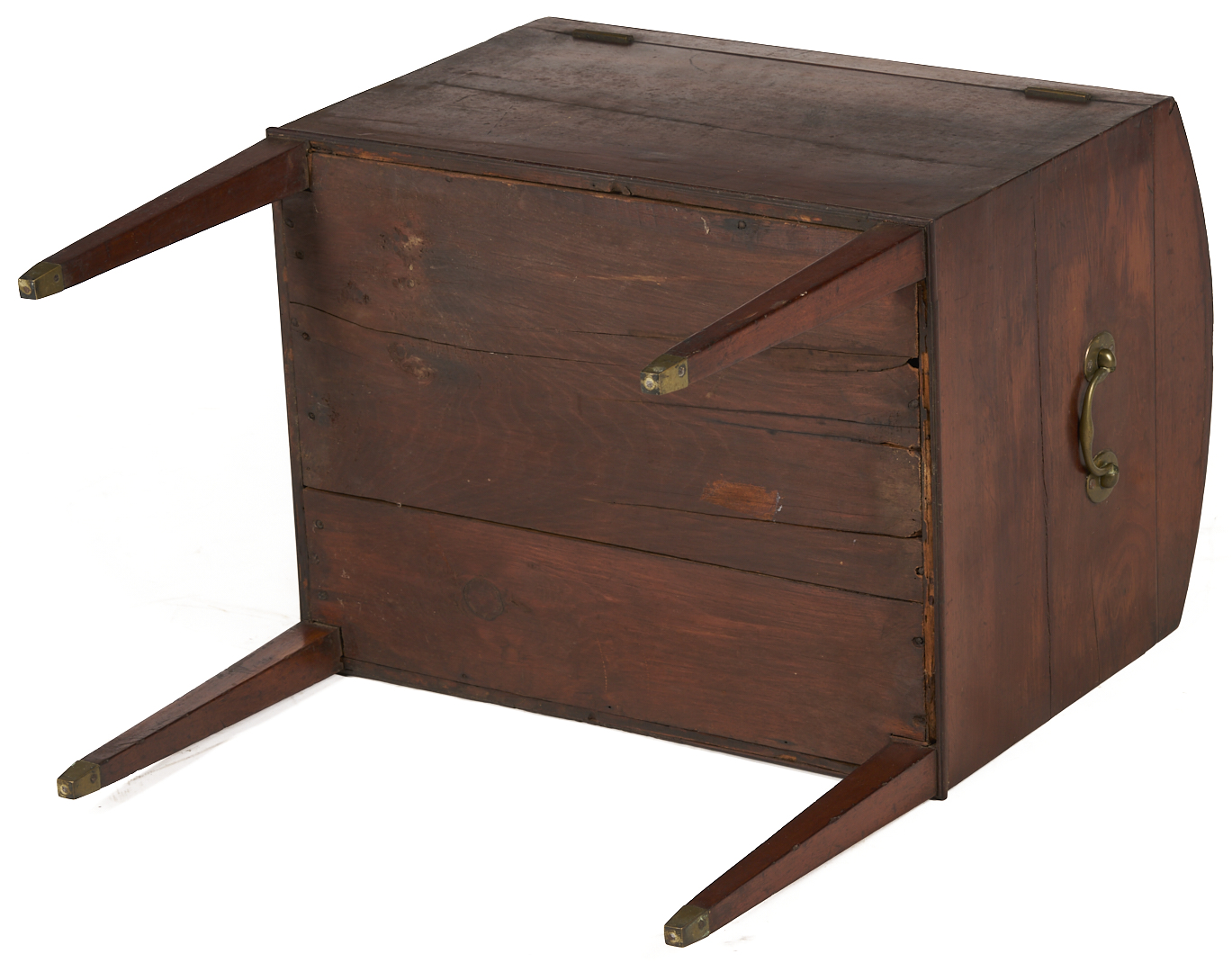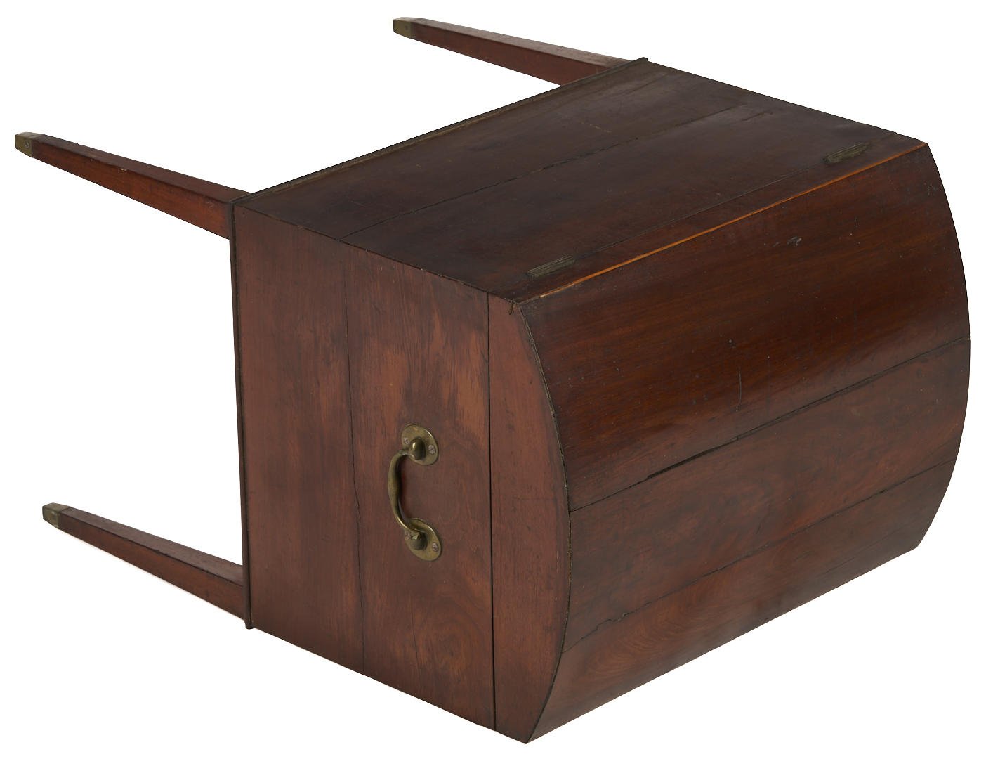 English mahogany and mahogany veneer cellarette, domed lift top, 12-bottle fitted interior, and tapered square legs with brass feet. 27 3/4 in. H x 21 1/2 in. W x 15 7/8 in. D. Late 18th/early 19th century.