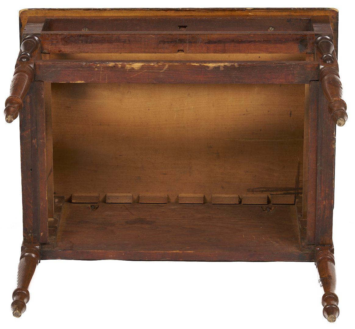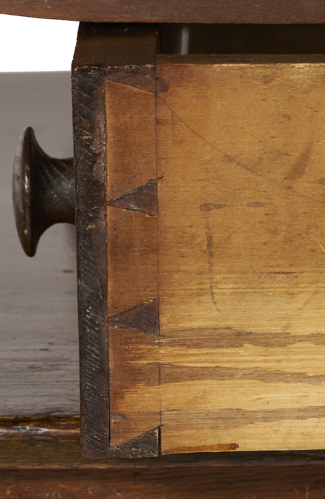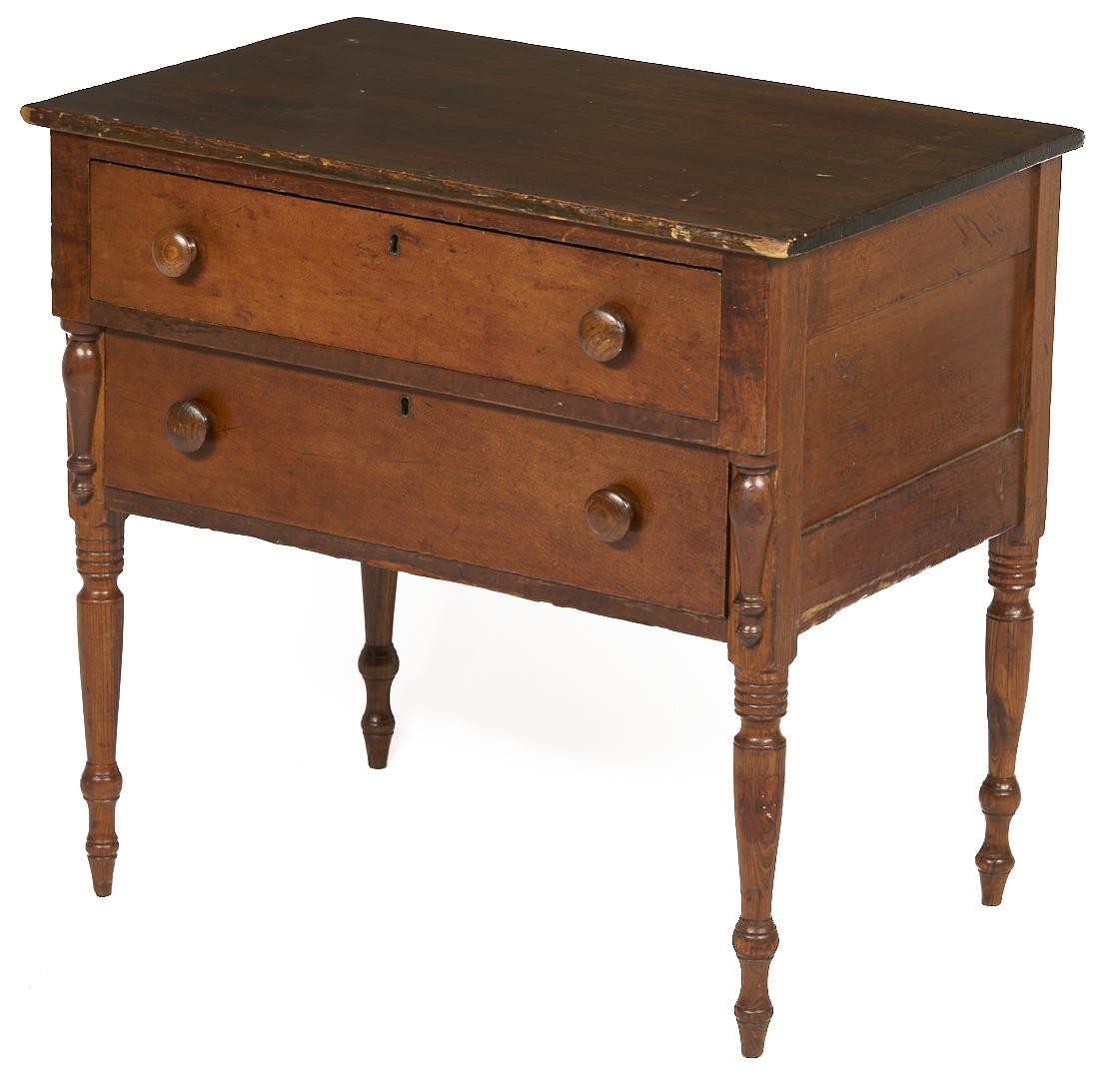 CONDITION: Scratching, wear, and losses to the poplar top; otherwise, overall good condition.