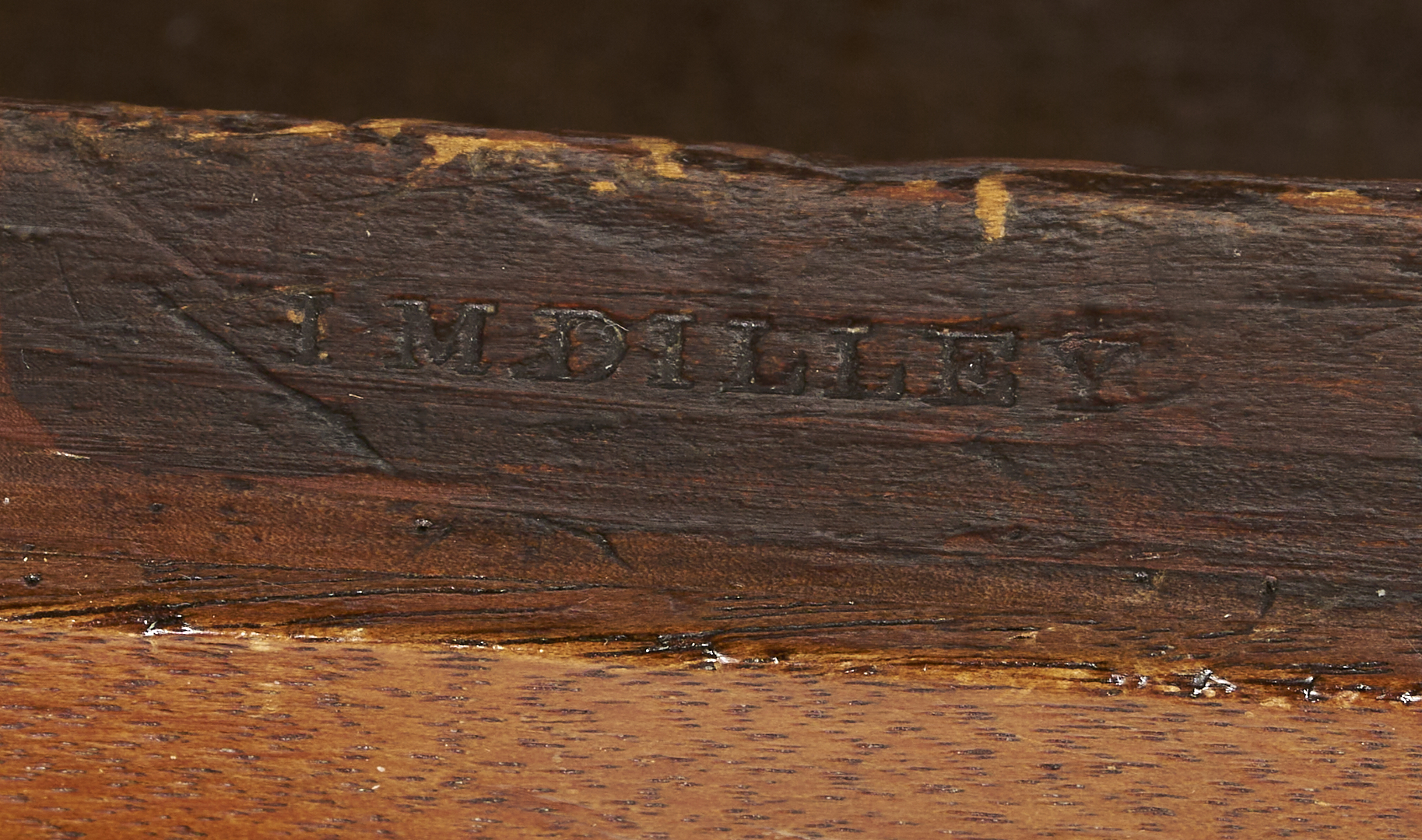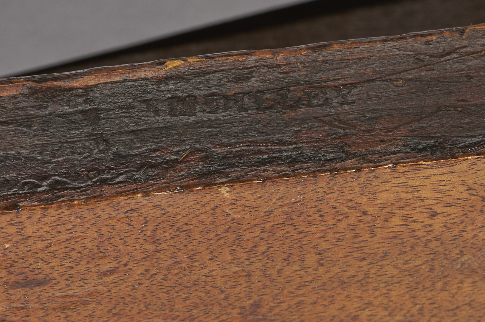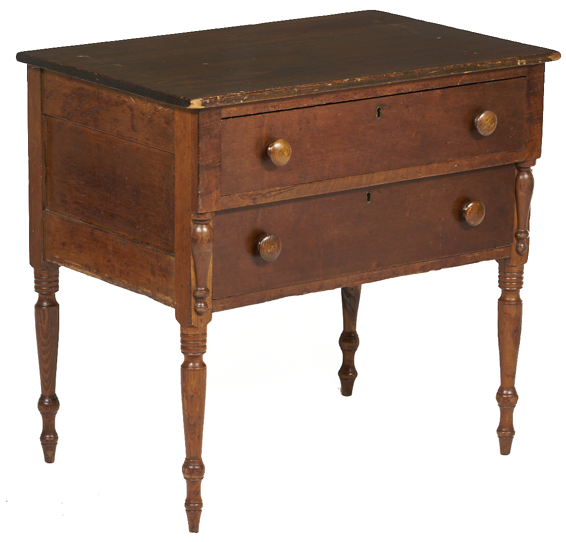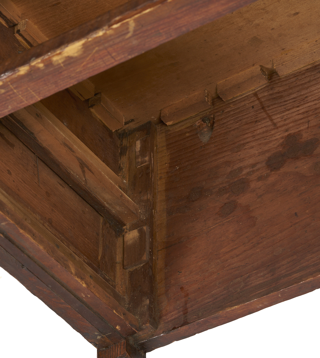 CONDITION: Scratching, wear, and losses to the poplar top; otherwise, overall good condition.