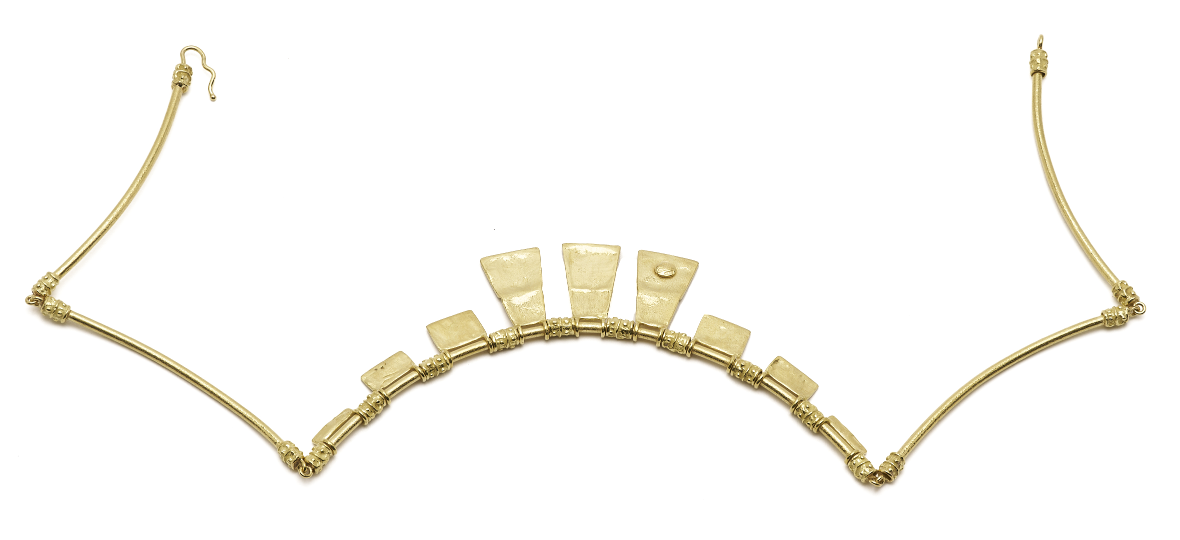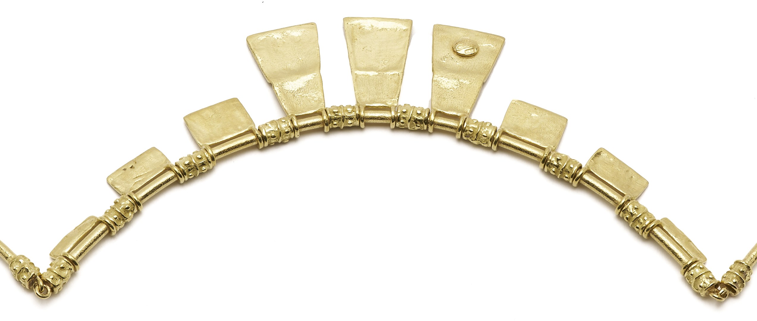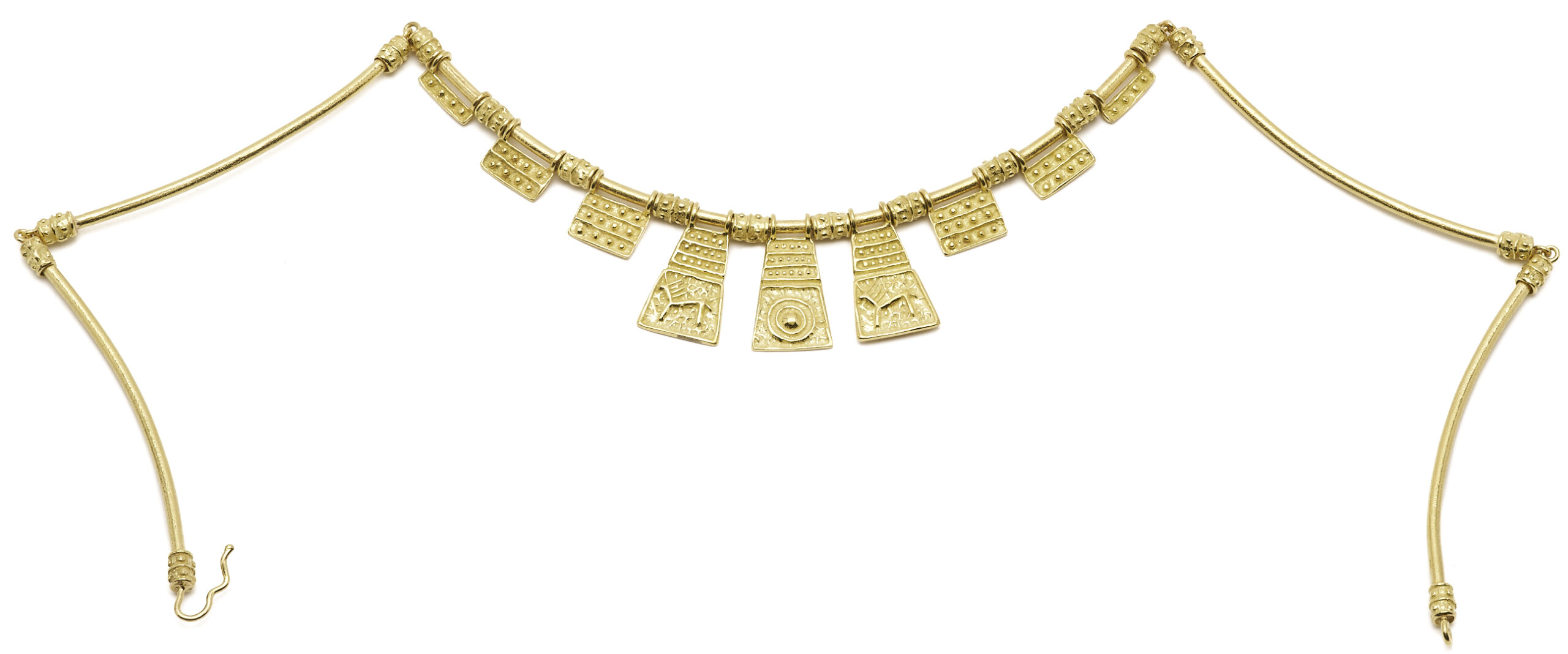 Ladies’ 18K yellow gold Etruscan revival style necklace. The necklace is marked “750” and XRF tests 18K gold, The necklace is 16 in. L. and has a weight of 34.25 grams.