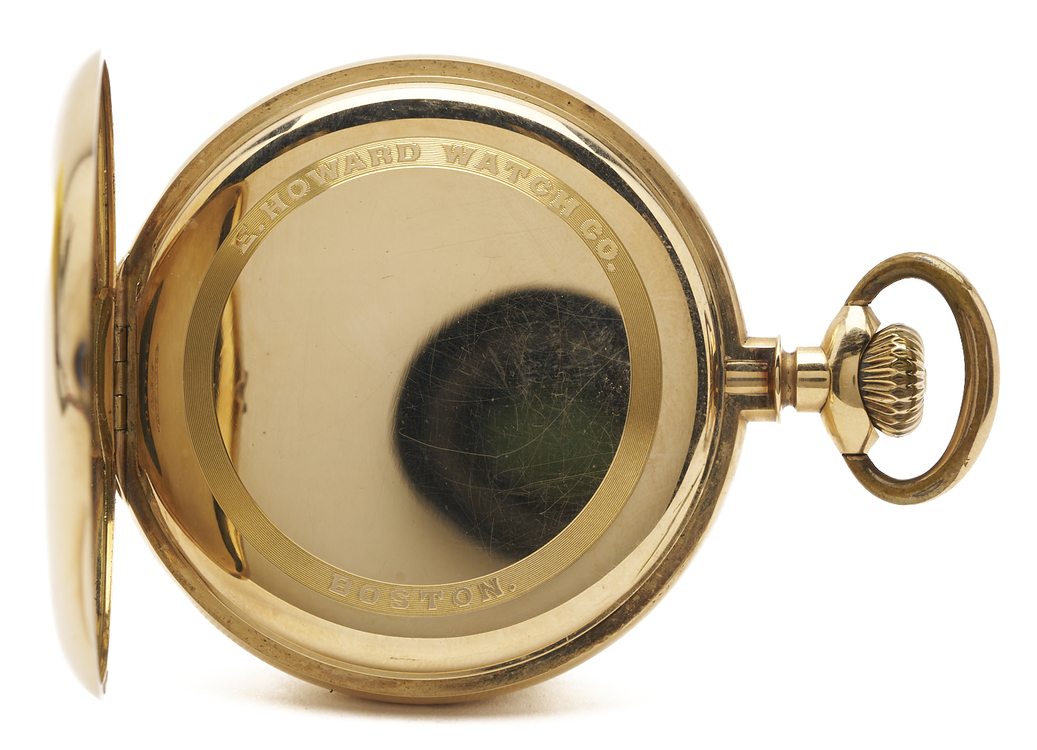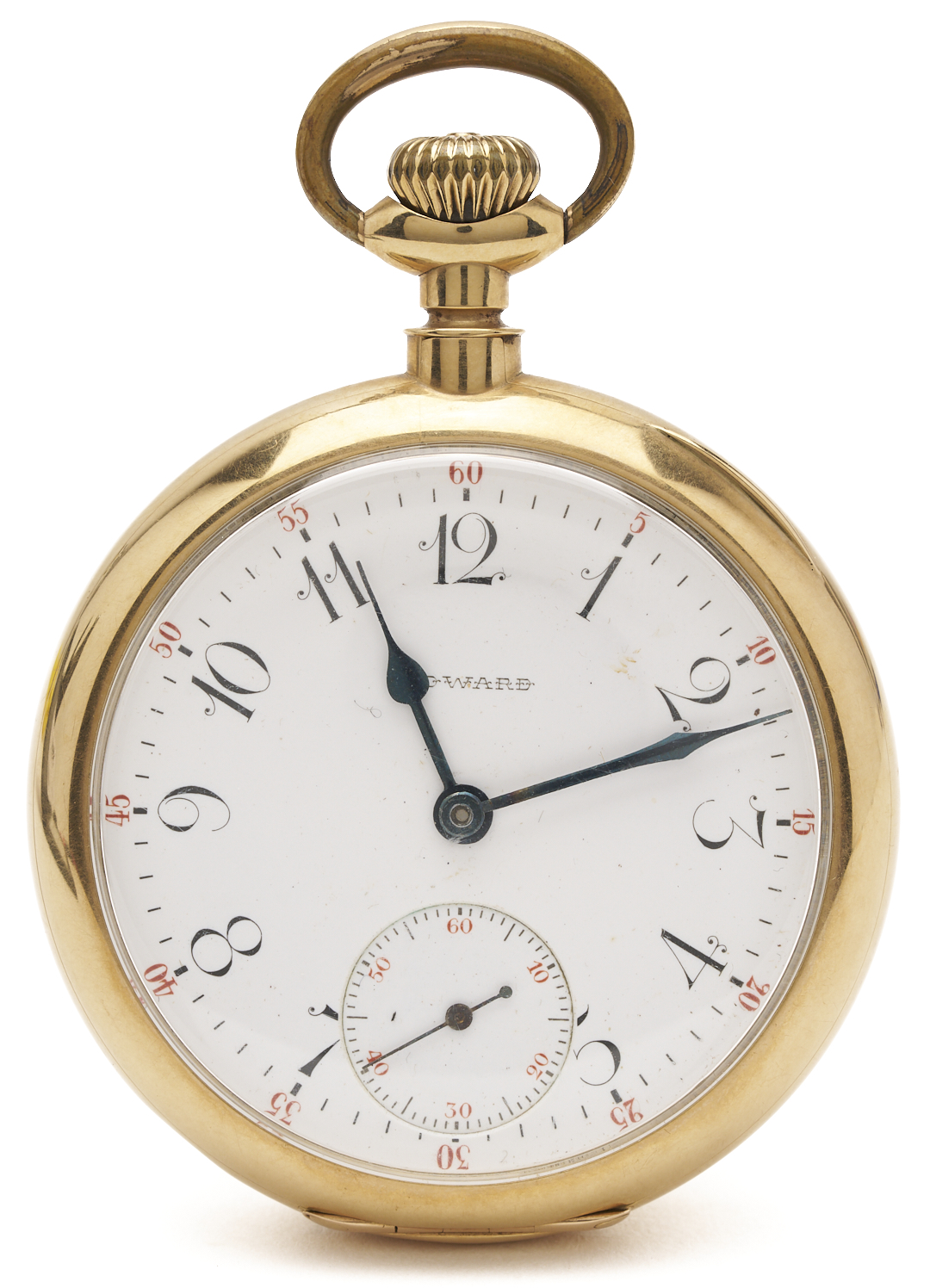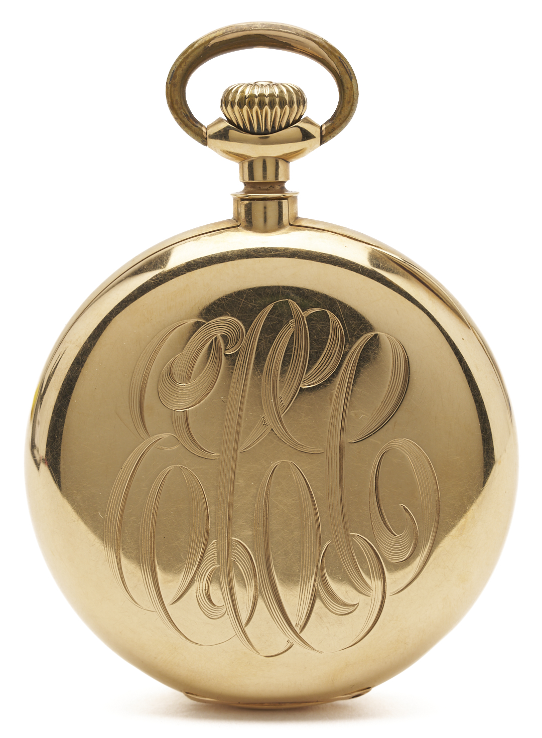 E. Howard & Co. grade series 3 17 jewel size 16s pocket watch. The watch is in a 14K yellow gold open case with three part script monogram, ECC. The case is marked “14K” and XRF tests 14K gold. The serial number is 945151 and was produced in 1907. Gross weight of the watch is 95.00 grams.