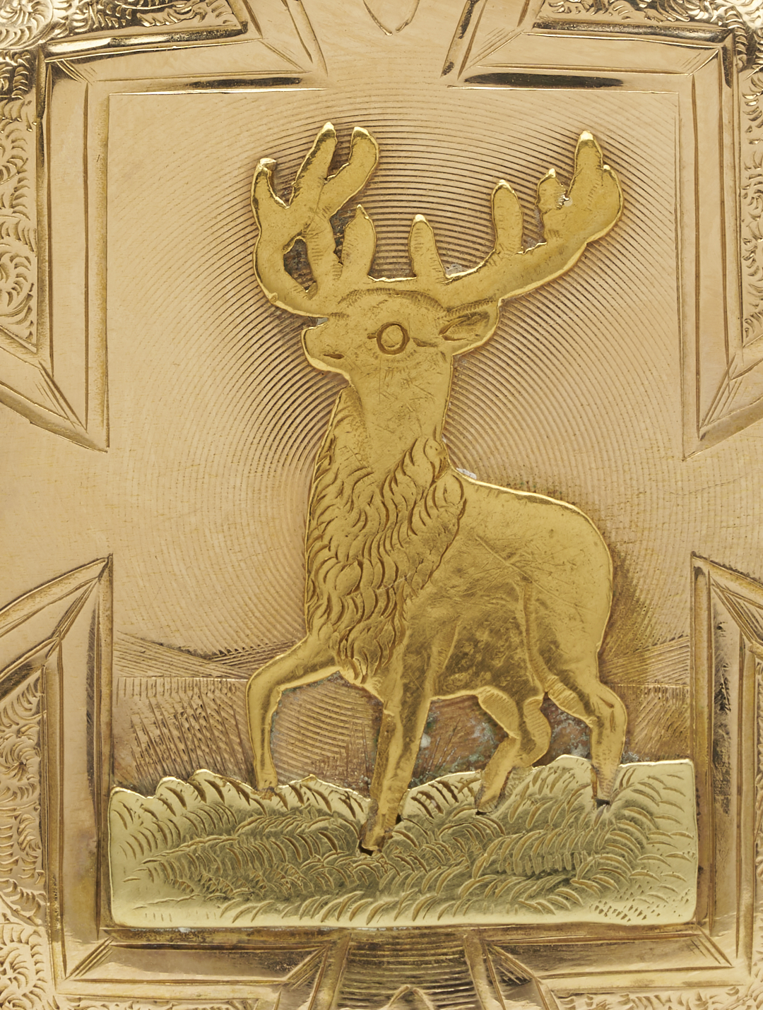 Waltham grade L 11 jewel size 6s pocket watch. The watch is in a 14K yellow gold hunting case containing an applied stag within the center of a Maltese cross design. The case is marked “14K” and XRF tests 14K gold. The serial number is 6177273 and was produced in 1893. Gross weight of the watch is 61.44 grams.