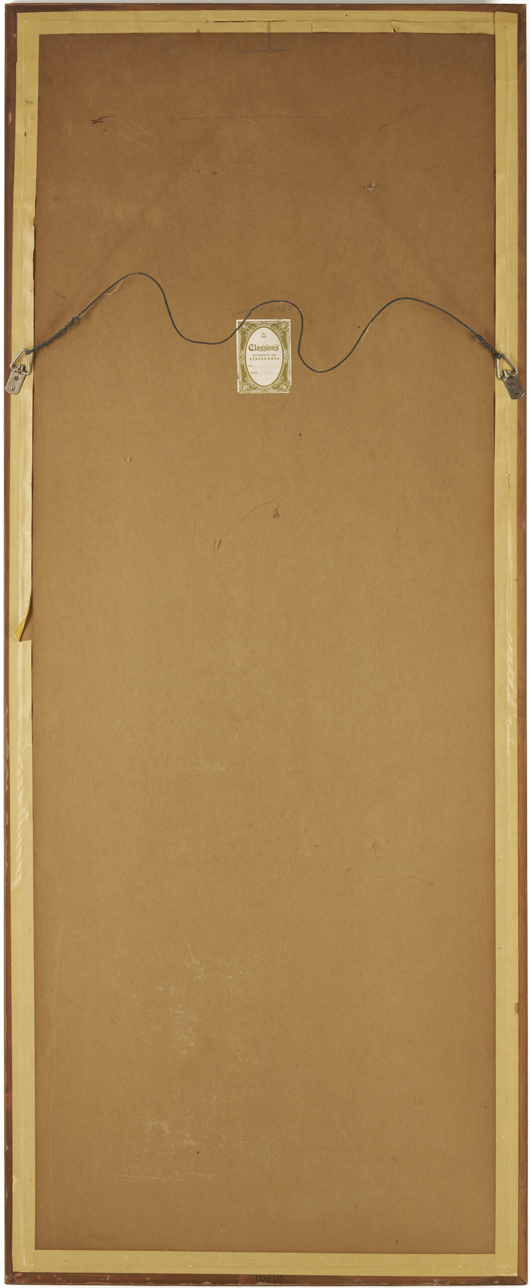 CONDITION: Painting in overall very good condition with light discoloration and fading. Mat has some whitish residue/grime. Some wear and abrasions to frame.