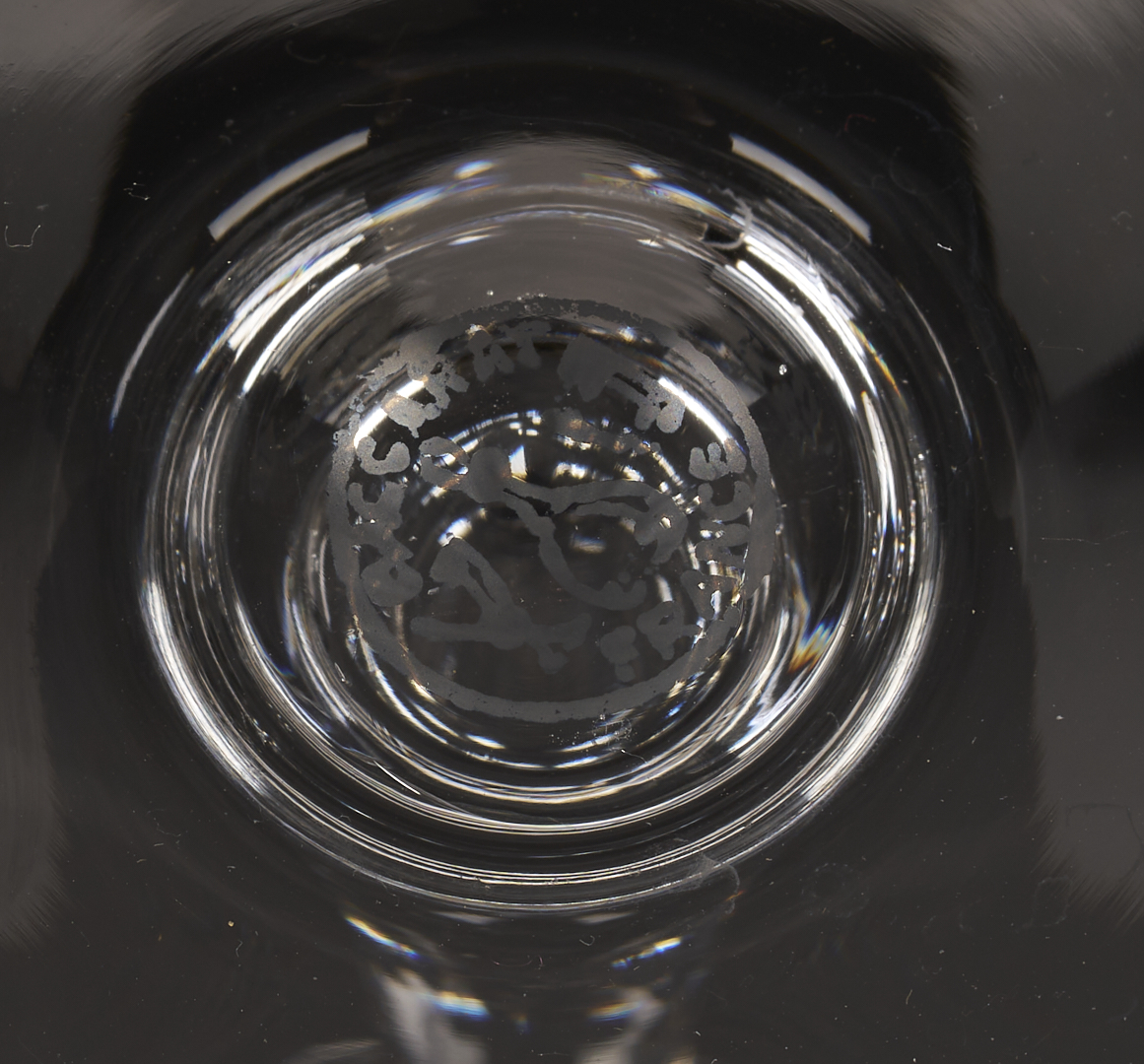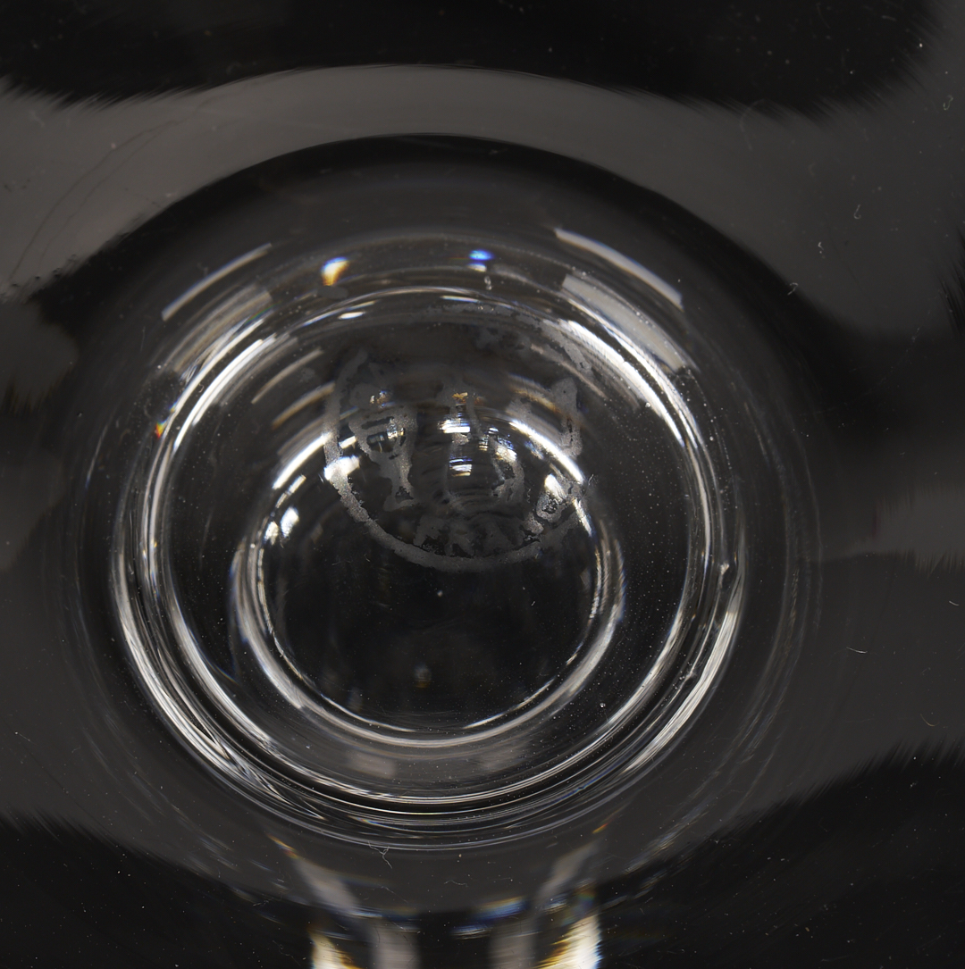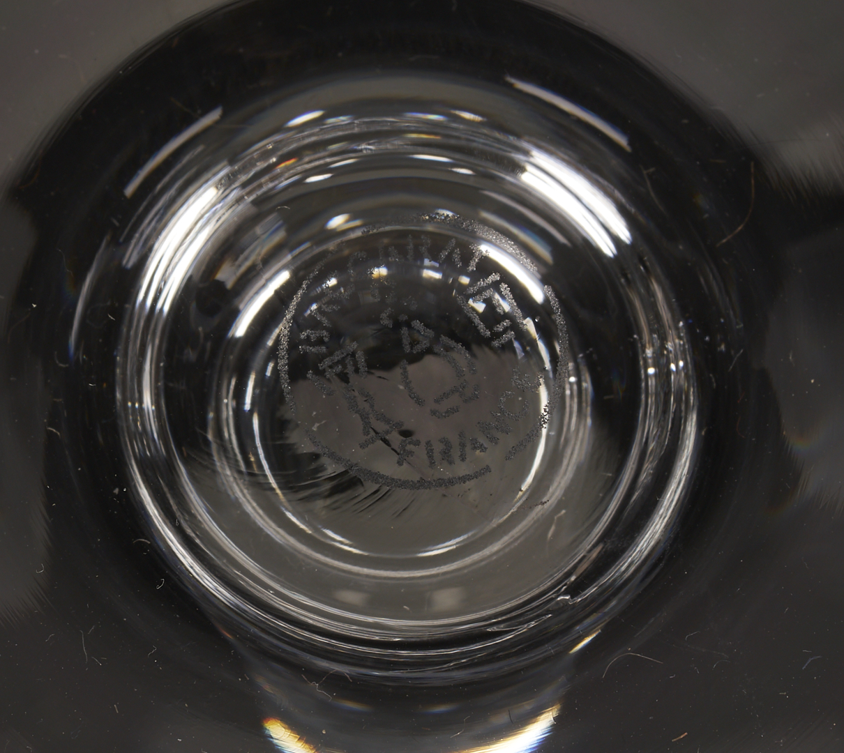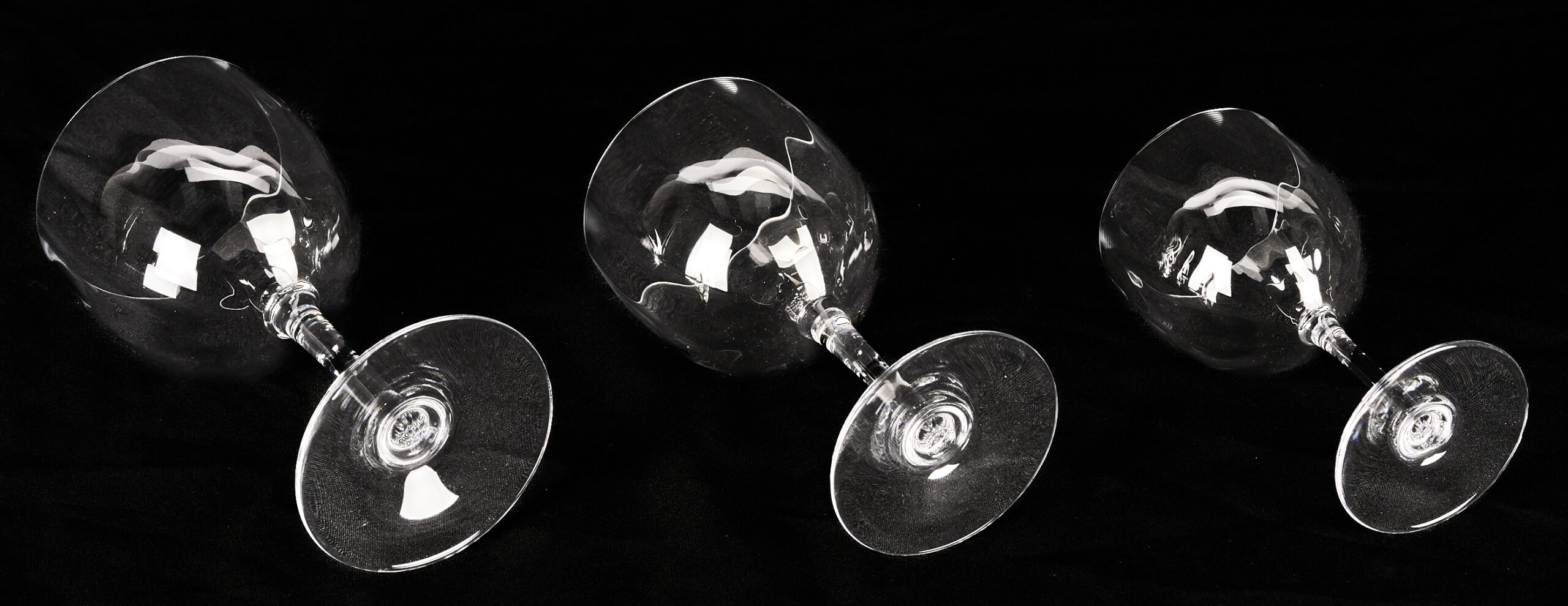 Twenty-nine (29) pieces of Baccarat crystal stemware, Montaigne Optic pattern, including 12 champagne glasses (4 7/8 in. H), 7 claret wine glasses (5 3/4 in. H), 4 water goblets (6 3/8 in. H), and 6 tall water goblets (7 in. H). All with the etched Baccarat mark to the base. 20th century.