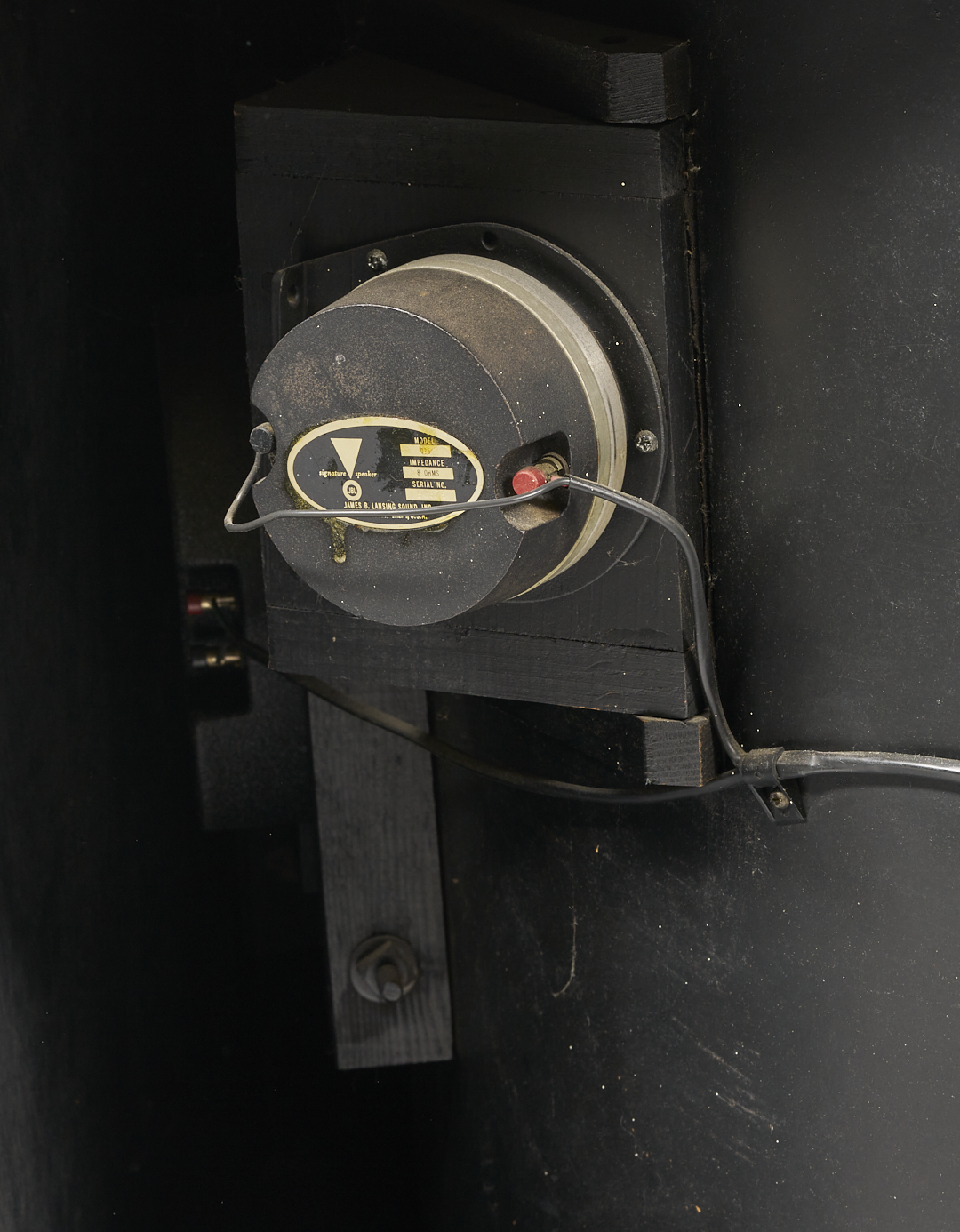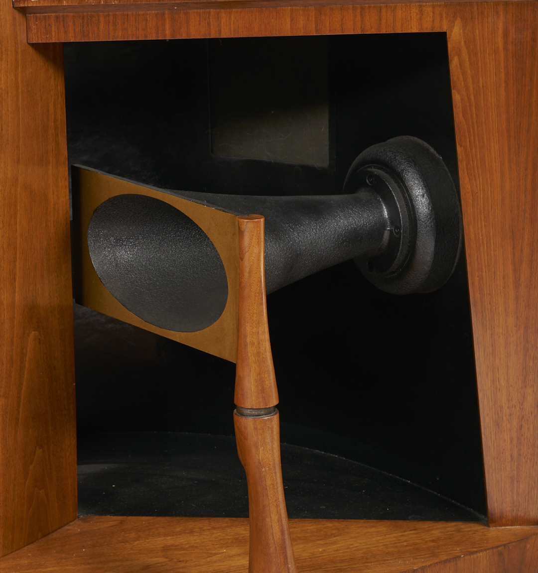 James B. Lansing (JBL) Paragon D44000 Integrated Stereophonic Reproducer, Type C44. Serial No. 41199, ca. early 1970s. One owner, operational, with original owner’s manual, wiring manual, a mid-1960’s JBL product catalog, and a 1950’s sales brochure. Interior JBL components are period-correct and include: two LE15A Low frequency speaker/drivers; two Model 375 Midrange drivers (with horns); two Model 075 High Frequency drivers; and two Model N-7000 frequency crossovers. 103 in. W x 28 1/2 in. D x 35 in. H. Combined weight: approx. 600-700 lbs.