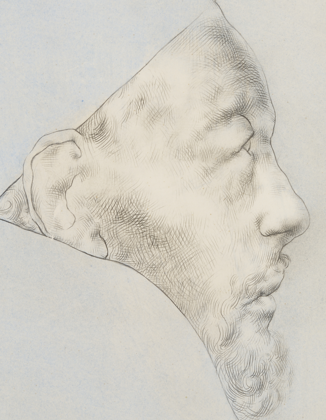 CONDITION: There appears to be a 2 1/2 in. repair to the center of the paper, near the subject’s arm, with scratch just below. Rippling to paper. Not examined out of frame. Frame with some scattered scuffs.