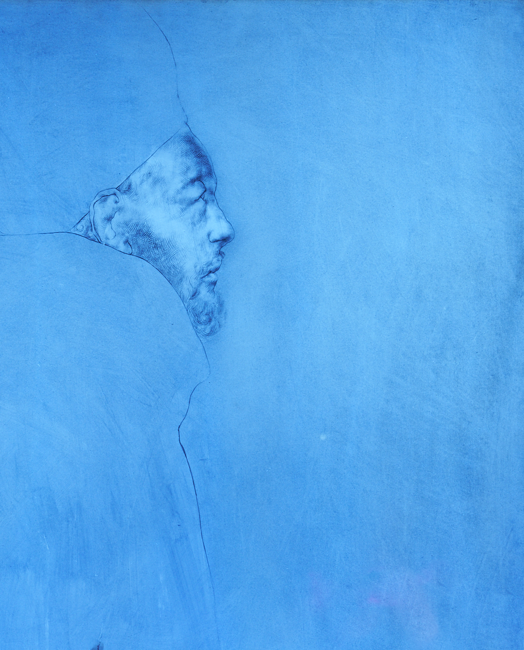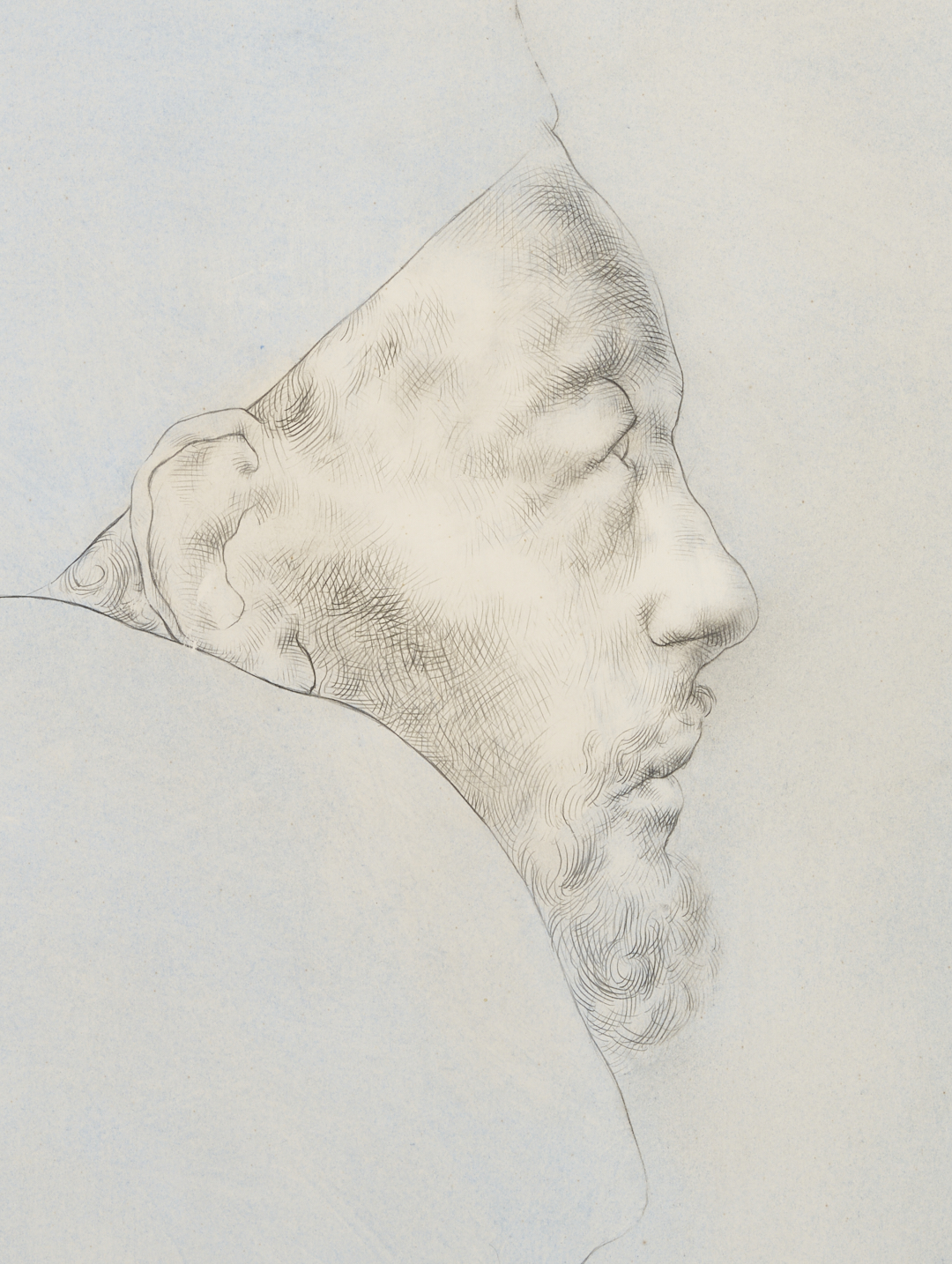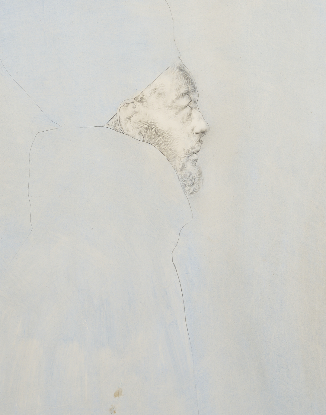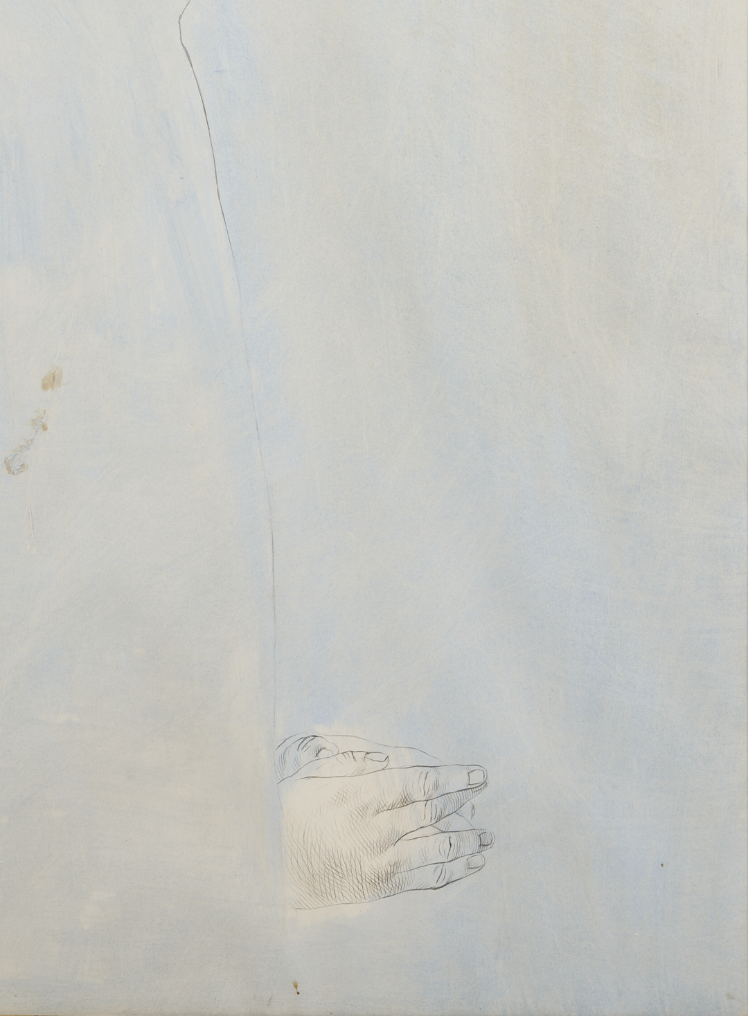 Rafael Coronel (Mexican, 1932-2019), “Anonimo”, aka “Renaissance Person in Blue,” oil crayon and graphite on paper, depicting the profile of a man in Renaissance clothing. Signed and dated “Rafael Coronel ’69” lower left with possible title. Housed under glass in an ebonized frame with gilt molded edges and a beige linen mat. Sight: 40 in. H x 29 1/2 in. W. Frame: 47 in. H x 37 1/2 in. W. This lot is accompanied by the original 1971 sales receipt from the Bernard Lewin Galleries, Beverly HIlls, California, and an exhibit catalog picturing this work, along with some additional correspondence between the gallery, the consignor and his parents (the original purchasers of the work) including a statement of authenticity from Bernard Lewin. Biography: Rafael Coronel was raised in an artistic family. His grandfather was a church family and his brother, Pedro, was a fellow painter. Rafael Coronel studied at the National School of Architecture, the High American School Academy and La Esmeralda. He worked for twenty years in the workshop of Diego Rivera, who became his father in law when he married Ruth Rivera. He is known for his paintings of “melancholic essences” and said his intention was “to show the particularity of the human being without as much covering as the muralists did, capturing characters whose essence is frozen in time.” Source: Rafael Coronel, RETROFUTURE (Instituto Nacional de Bellas Artes, 2010).