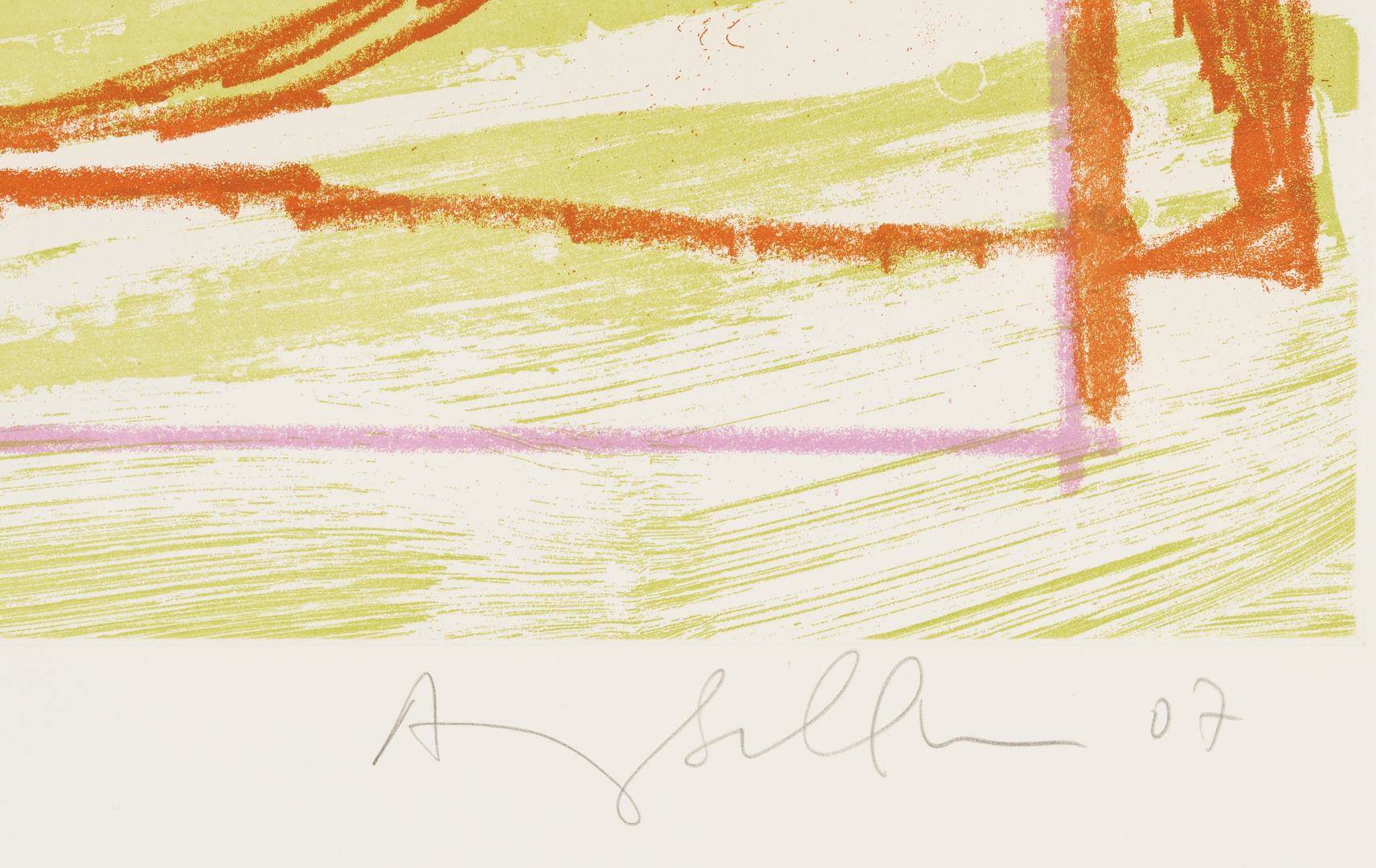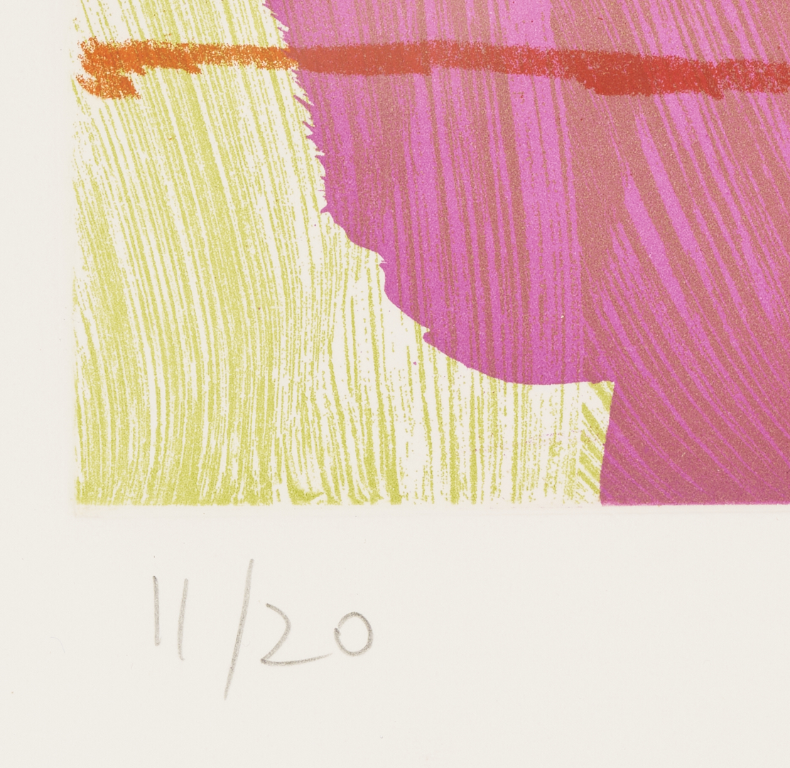Amy Sillman (Michigan/New York, b. 1955) abstract color sugar lift and spit bite aquatint with soft ground etching, “R & E,” 2007. Published by Crown Point Press. Signed and dated in pencil, lower right, and numbered 11/20, lower left. Floated under plexiglass in a modern wood frame. Sheet: 34 1/2 in H x 27 1/2 in W. Framed: 37 13/4 in H x 30 5/16 in W.
