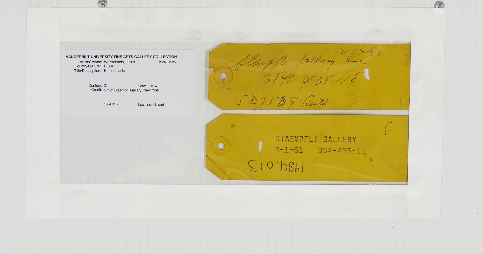 PROVENANCE: Deaccessioned by the Vanderbilt University Museum of Art to benefit the acquisitions fund. Ex-Staempfli Gallery, New York.