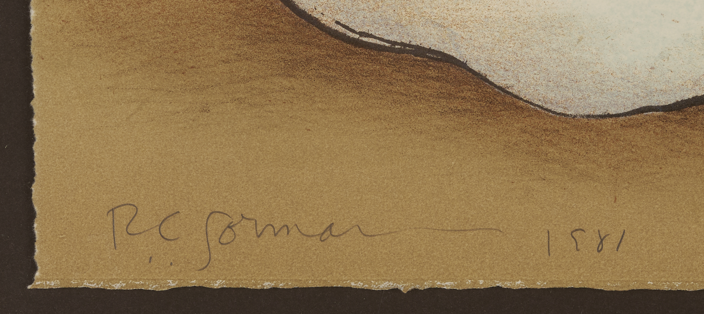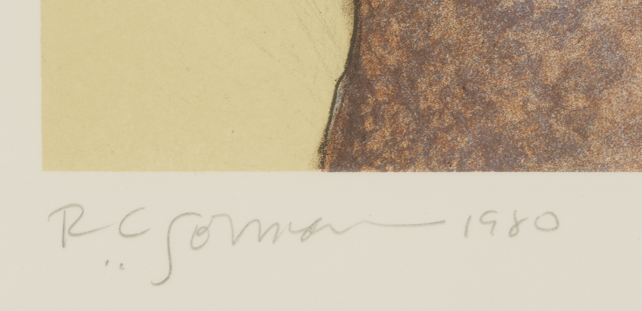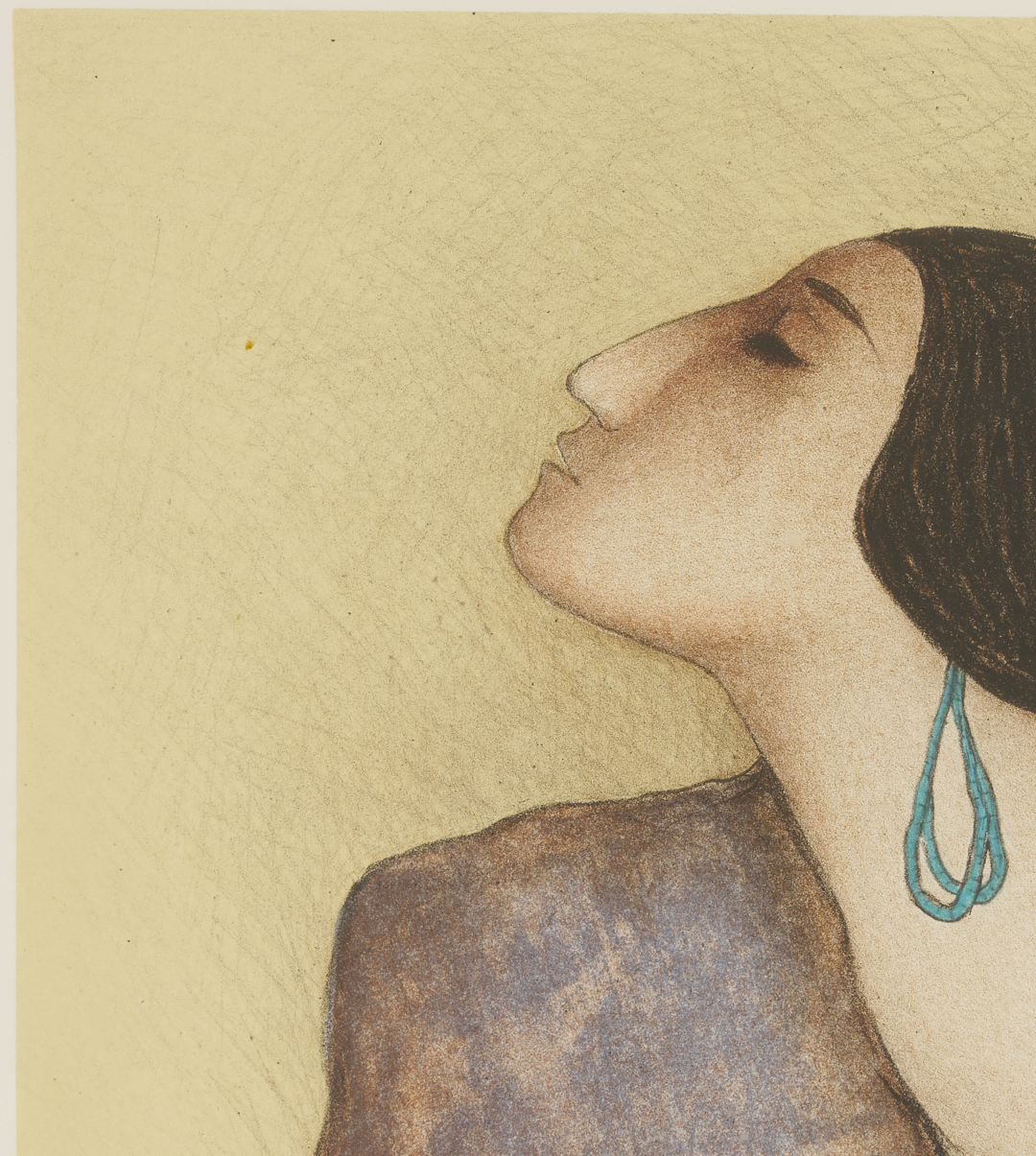 Two (2) Rudolph Carl Gorman (New Mexico/Arizona/California, 1932-2005) color lithographs. 1st item: “Woman with a Tulip Bowl” (State II), 1981. A seated woman in a blue dress places her left hand on the rim of a pottery vessel decorated with a tulip motif. From the Roman numeral edition of 25 outside of the Arabic numeral edition of 150. Published by Houston Fine Art Press and printed by Richard Newlin and Tamarind master printer Frances A. Theil, with publisher’s and printer’s blind stamps to lower corners. Artist’s embossed chop, lower center. Pencil signed, dated, and numbered IX/XXV along lower edge. Floated under acrylic in a metallic frame with tan mat and dark brown mount. Sheet: 16 1/4 in. H x 20 in. W. Framed: 24 in. H x 27 1/4 in. W. 2nd item: “Danya,” 1980. A woman shown in bust-length, profile view wears a turquoise earring as she raises her chin, closes her eyes, and parts her lips slightly. Pencil signed, dated, and numbered 80/150, lower margin. Housed under glass in a wooden frame with tan suede mat and dark brown reveal. Sight: 12 in. H x 13 1/2 in. W. Framed: 21 1/4 in. H x 22 in. W.
