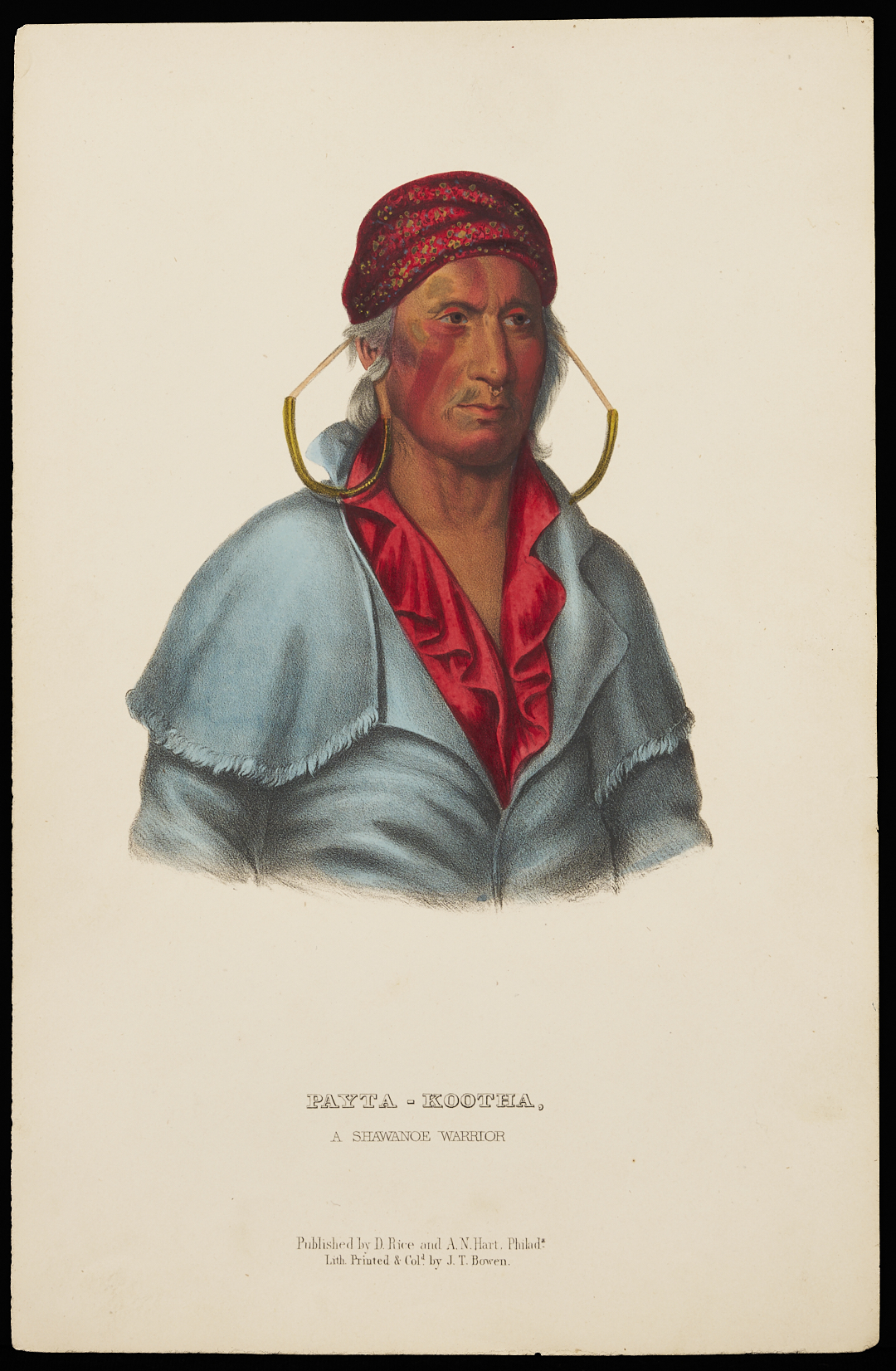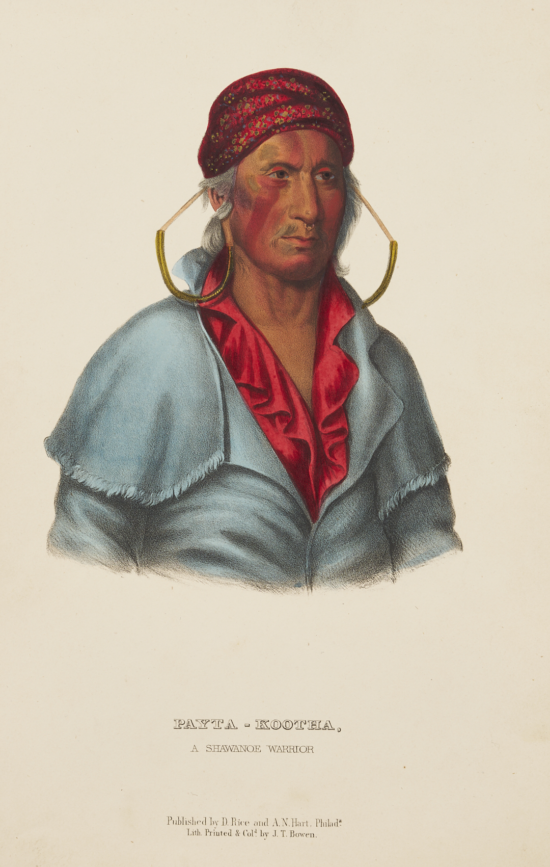 Group of six (6) McKenney and Hall hand-colored lithographs of Native American leaders from the Octavo edition of HISTORY OF THE INDIAN TRIBES OF NORTH AMERICA, c. 1848-70s. Includes John Ross: A Cherokee Chief, published by J.T. Bowen; Timpoochee Barnard: A Uchee Warrior, published by Rice, Rutter, & Co.; and Payta-Kootha: A Shawanoe Warrior, David Mann: A Cherokee Chief, Major Ridge: A Cherokee Chief, and Ka-Na-Pi-Ma: An Ottawa Chief, all published by D. Rice and A.N. Hart. Unframed. All sheets between 10 1/4 in. H x 6 1/2 in. W and 11 in. H x 7 1/4 in. W.