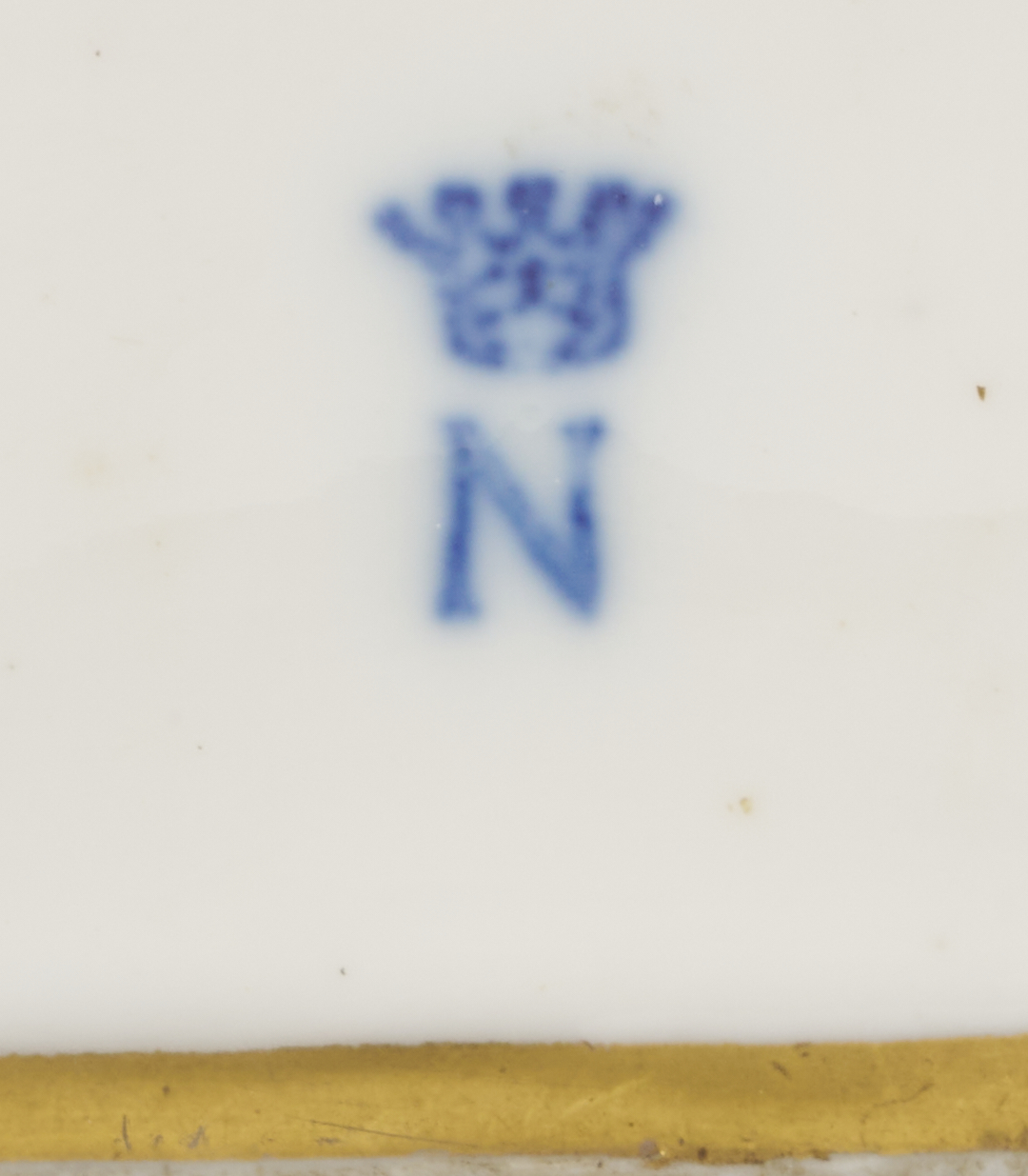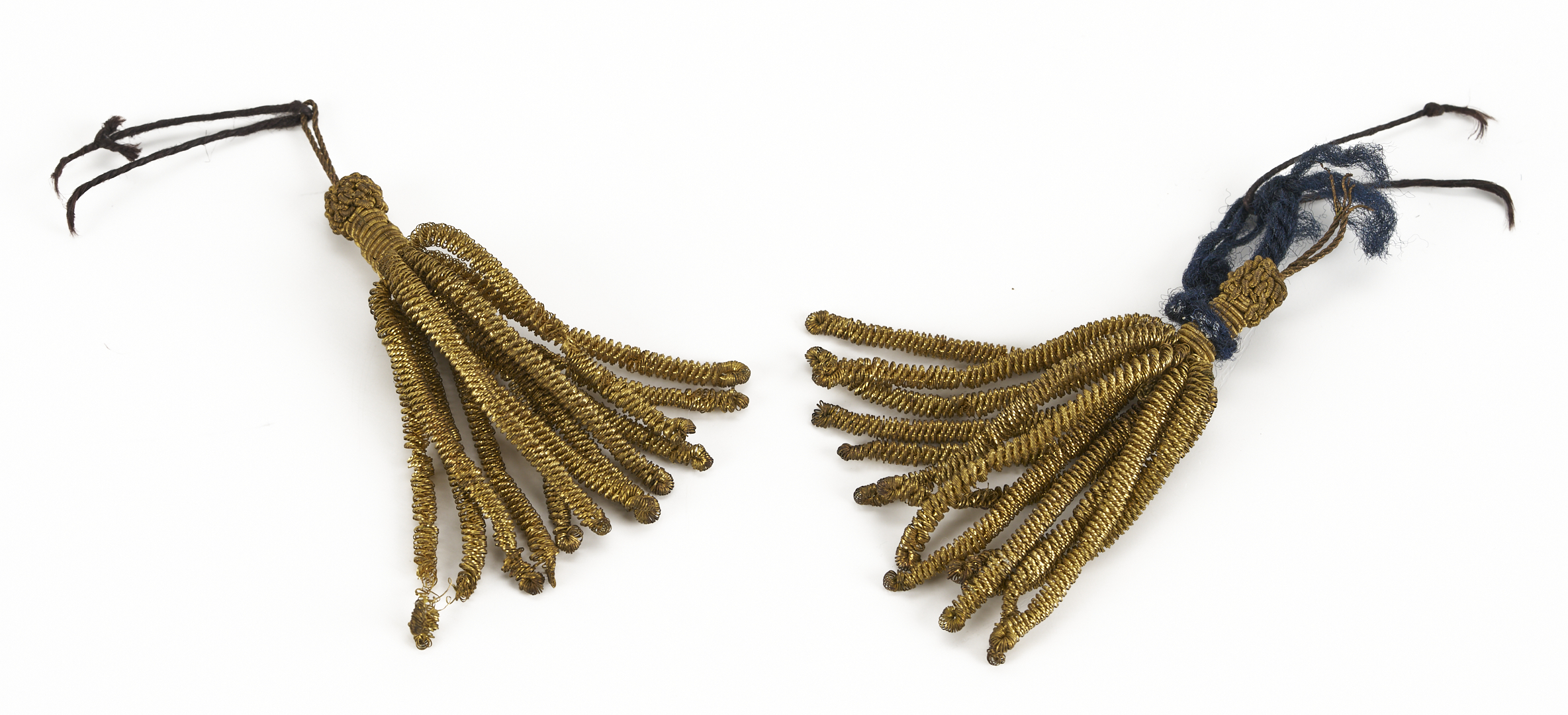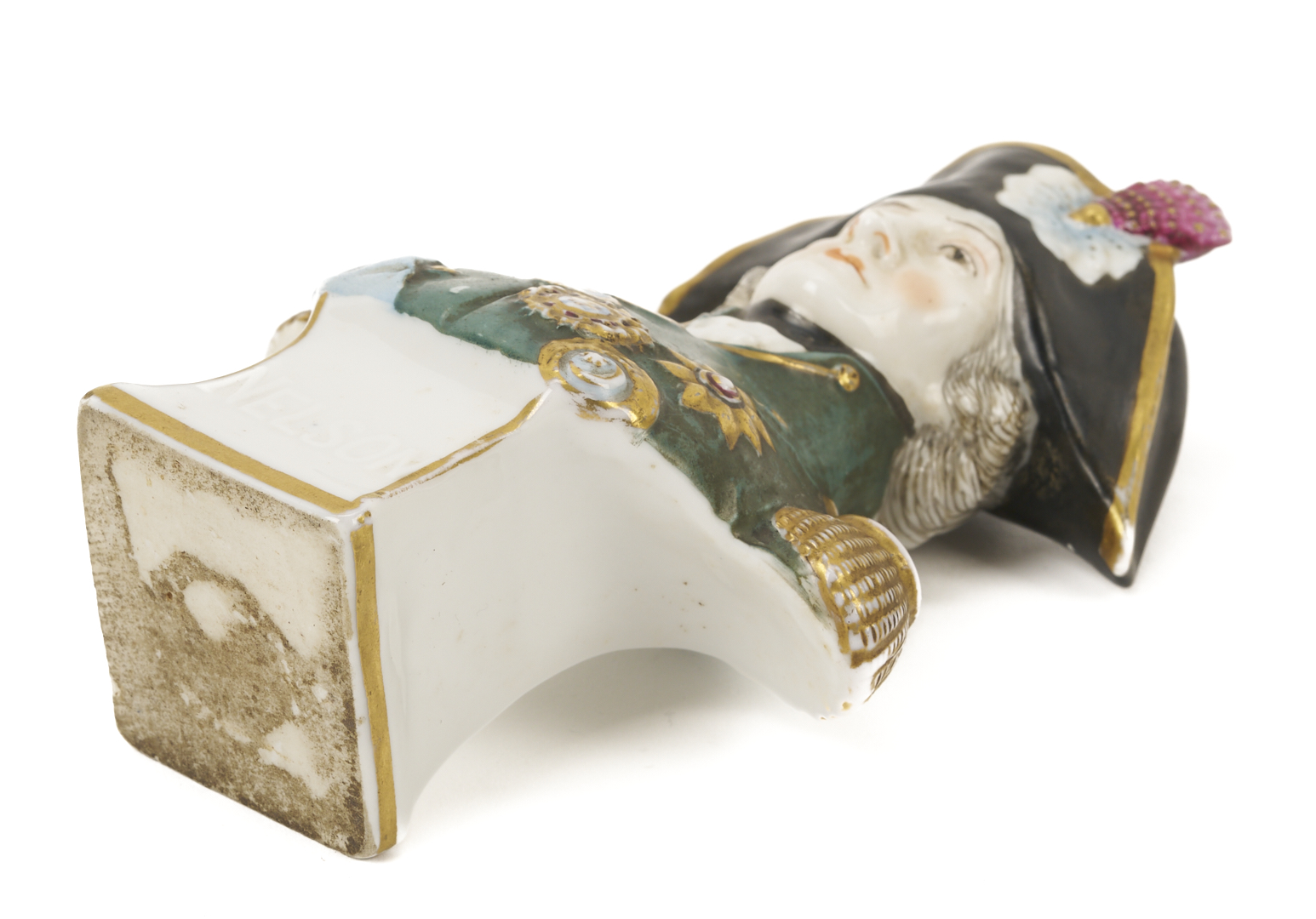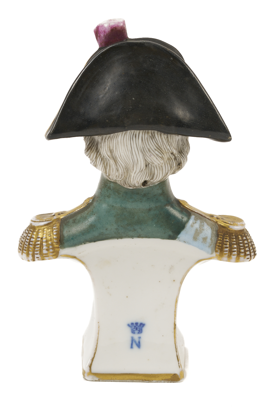 1st item: Miniature Capodimonte porcelain portrait bust of Admiral Lord Nelson, housed in a wood and glass curio or showcase having a lift top and four bun feet. Bust 5 1/4 in. H. Case: 11 in H x 9 in W x 5 in. D. 2nd item: Miniature oval watercolor on wafer portrait of young King George IV, in a thin gold metal frame, 2 7/8 in. H x 2 1/4 in. W overall. 3rd item: Miniature oval watercolor on porcelain portrait of Queen Louise of Denmark, housed in a gold metal Rococo style easel frame, 4 1/2 in. H 3 1/2 in. W overall. Also included are two small gold metallic tassels, possibly from epaulets. All items are 19th century.