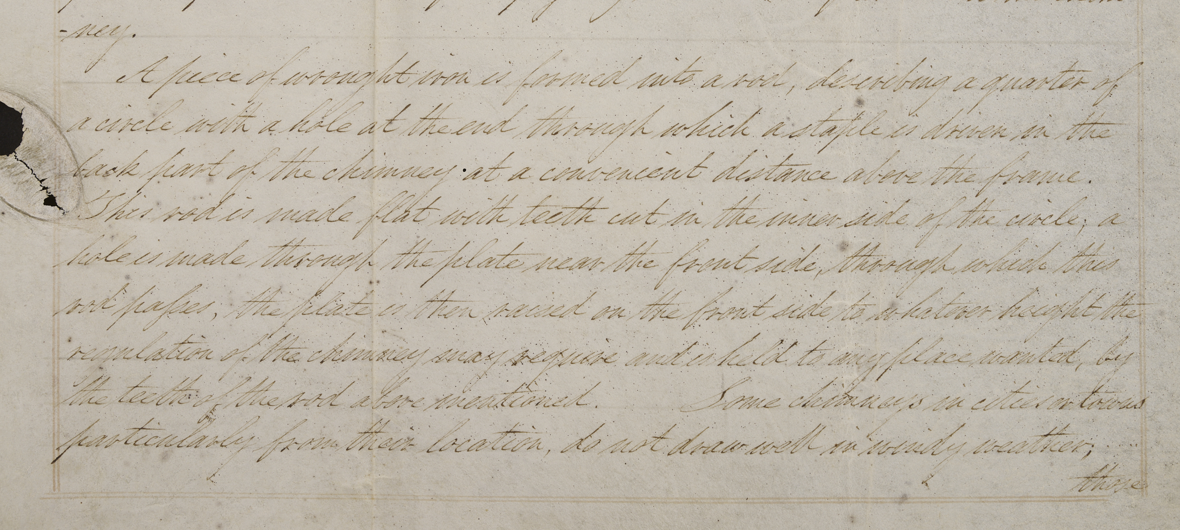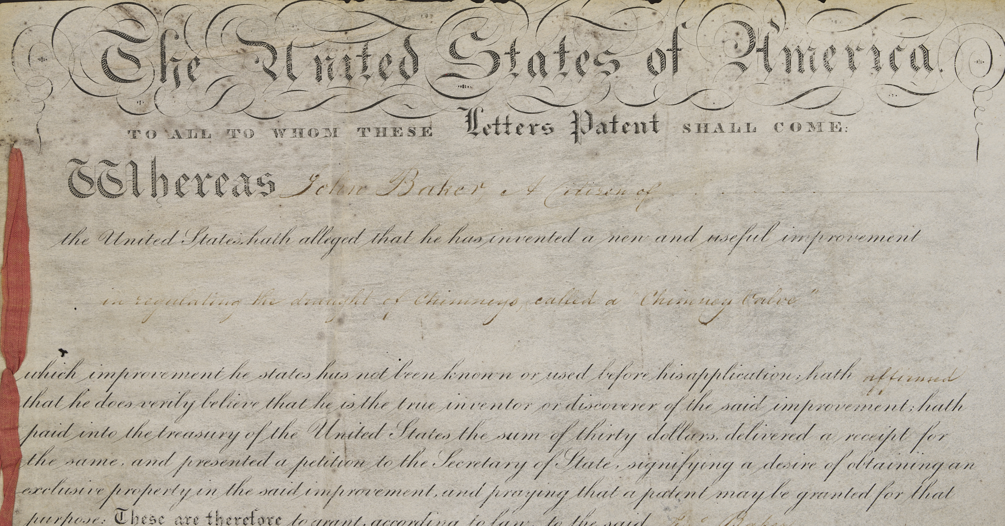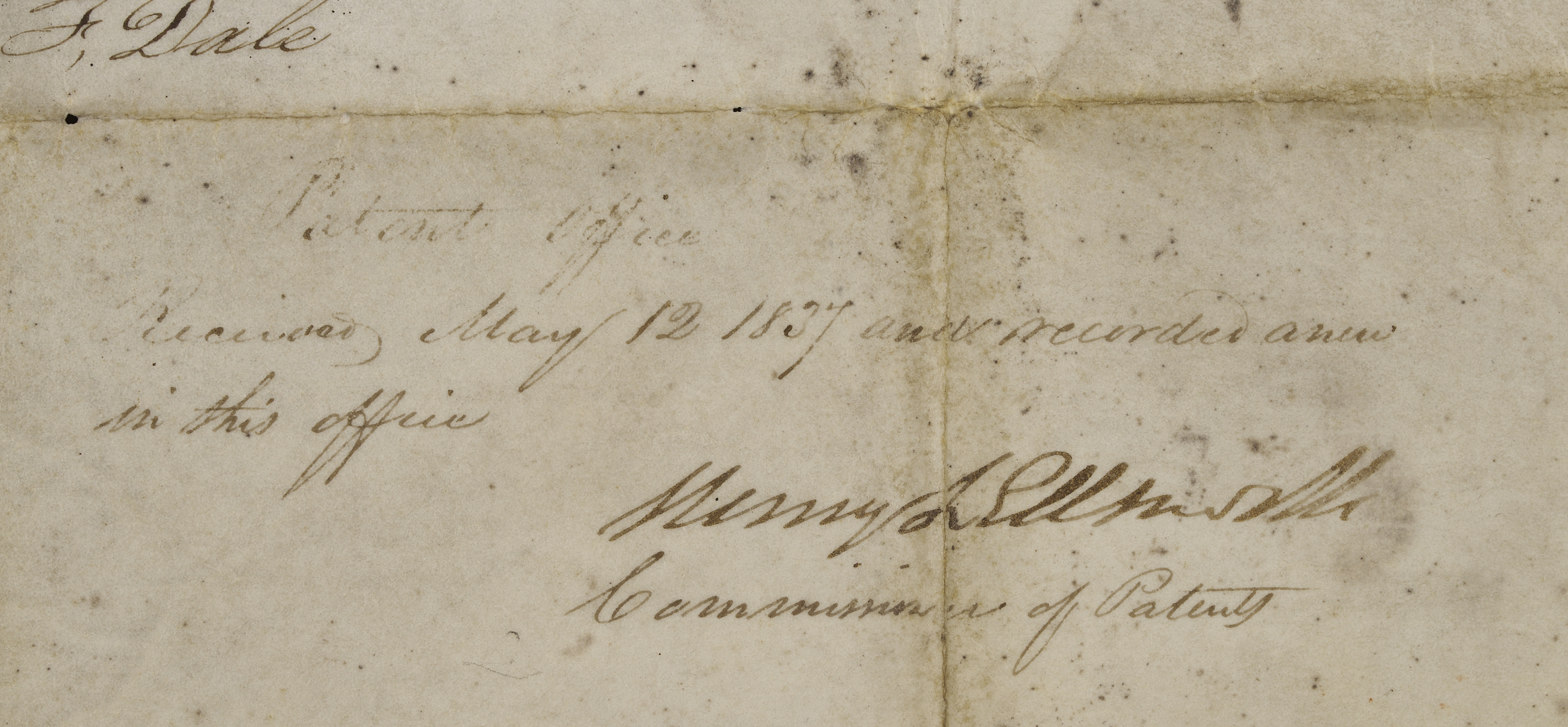 U. S. President Andrew Jackson (1767-1845), large and bold autograph signature on two-page Letters Patent for John Baker’s “improvement in regulating the draught of chimneys, called a Chimney Valve,” dated Oct. 28, 1831. Countersigned by Secretary of State Edward Livingston and Attorney General B.B. Taney. White wafer seal and pink ribbons adhered at the lower left. Jackson’s signature is very large, measuring over 6 1/2 in. long. The second page of the patent features a detailed description of the Chimney Valve, written and signed by Baker, a resident of Lancaster, PA. 2 pages, each 14 in. H x 11 in. W. The documents are enclosed (not attached) in a tooled leather portfolio, 16 1/2 in H x 14 in. W.