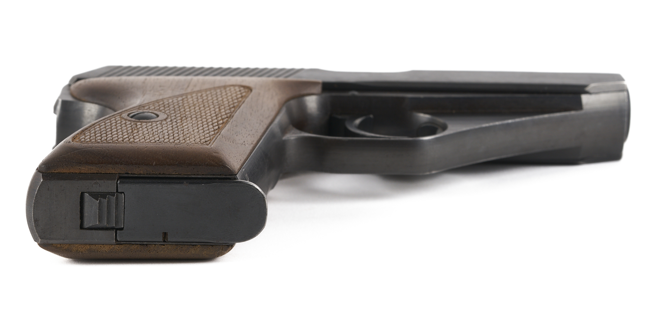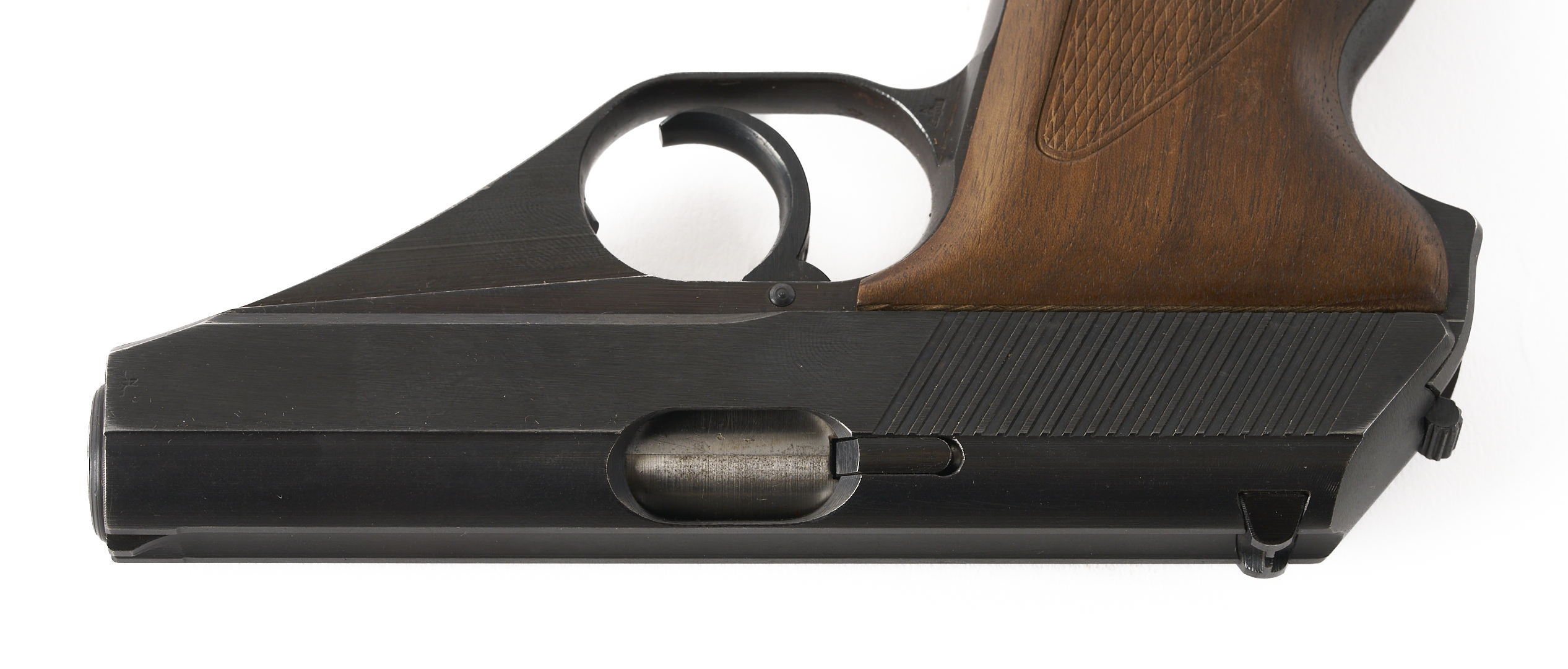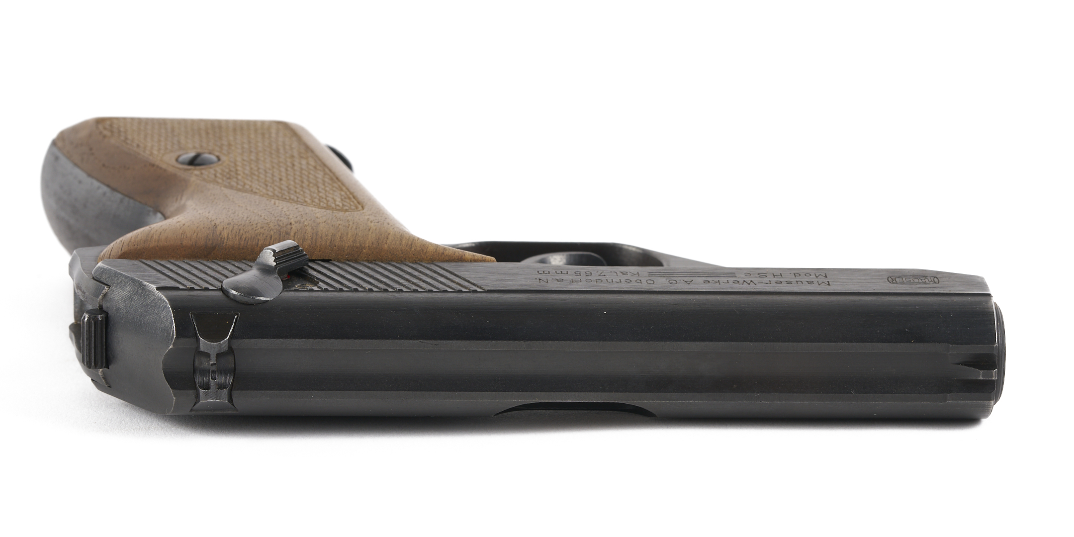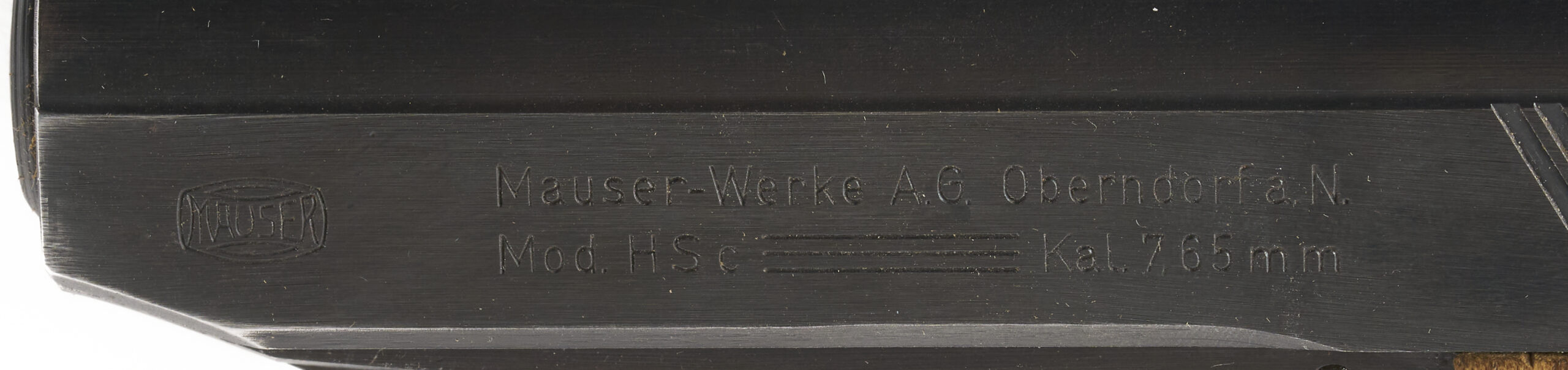 World War II German Mauser HSc 7.65mm (.32 ACP) pistol. Fourth variation, serial # 861535, this example issued to the German Army, marked with an acceptance stamp of eagle over 135 on the rear of the left trigger guard. Eagle N proofs on right trigger guard and front of slide. Late war roll-stamped slide inscription with three horizontal lines. Includes two magazines and later holster. NOTE: Most firearms made after 1898 require passing an FFL background check prior to transfer. The date of production for this gun makes it subject to FFL rules. Please be prepared with proper identification and information. If you do not reside in Tennessee, an FFL dealer in your state is required to complete the transfer.
