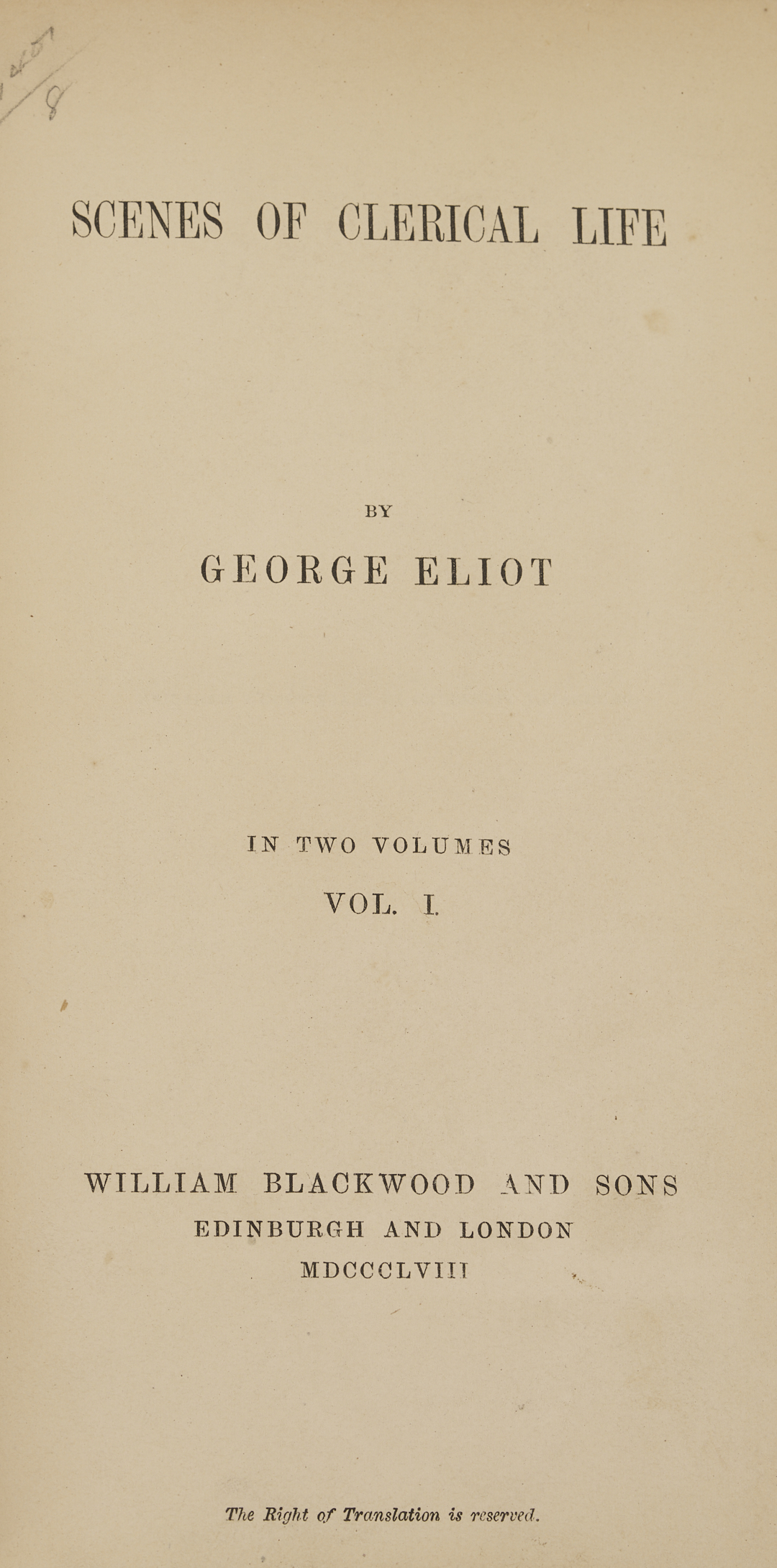 SCENES OF CLERICAL LIFE, Vol. I-II, 1858;