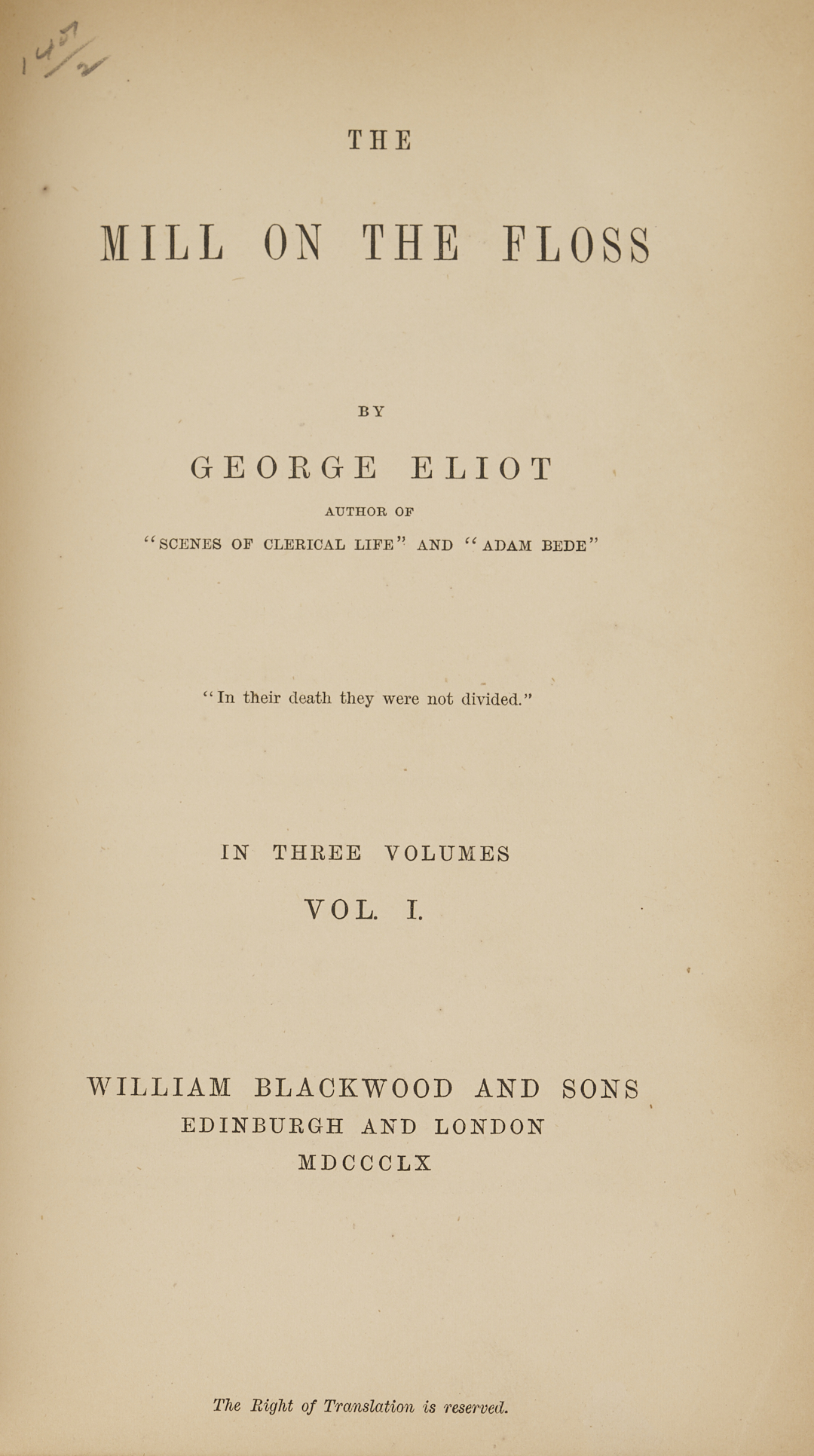 THE MILL ON THE FLOSS, Vol. I-III, 1860;