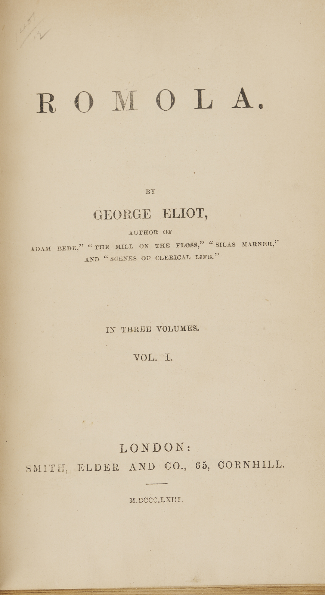 ROMOLA, Vol. I-III, published by Smith, Elder, and Company, London, 1863;
