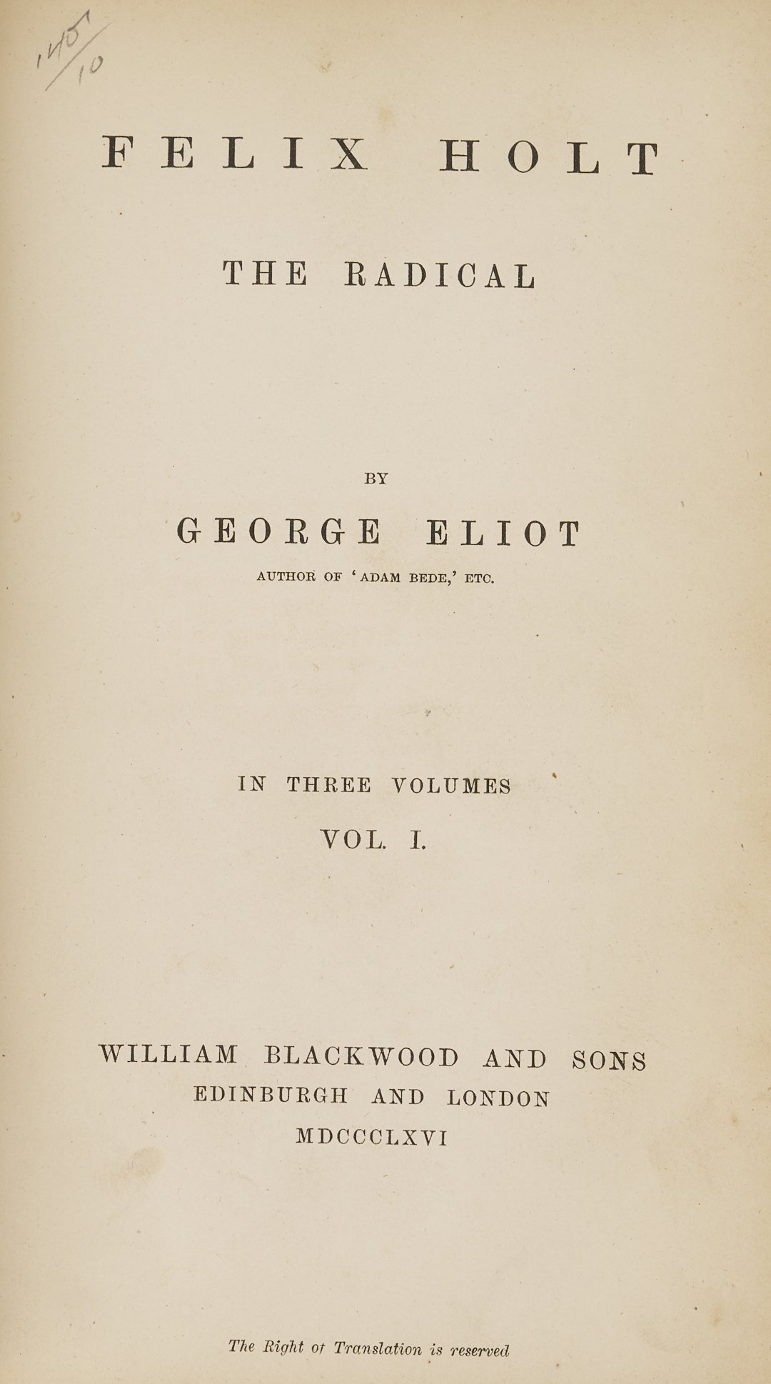 FELIX HOLT, THE RADICAL, Vol. I-III, 1866;