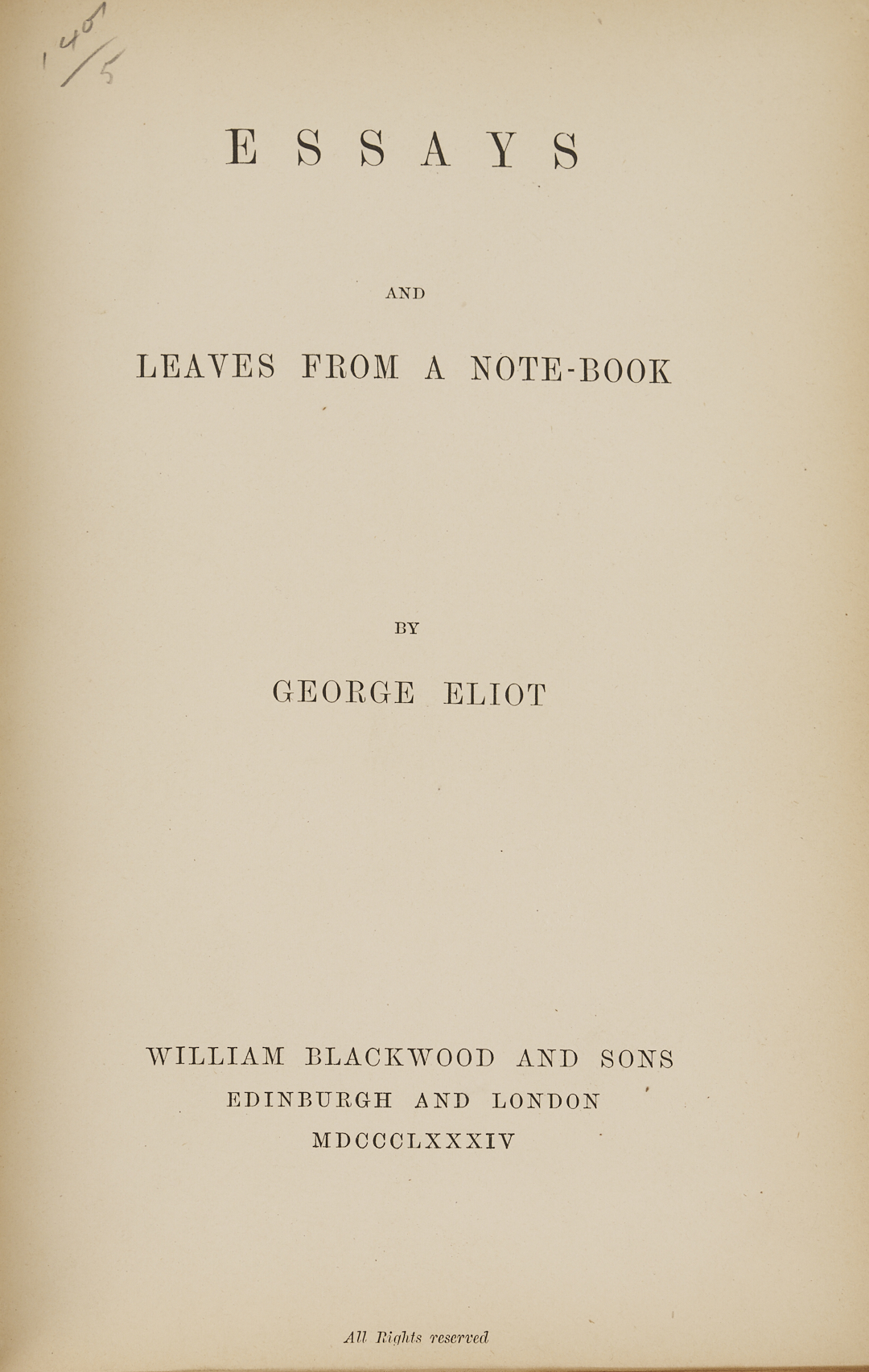 ESSAYS AND LEAVES FROM A NOTEBOOK, 1884.
