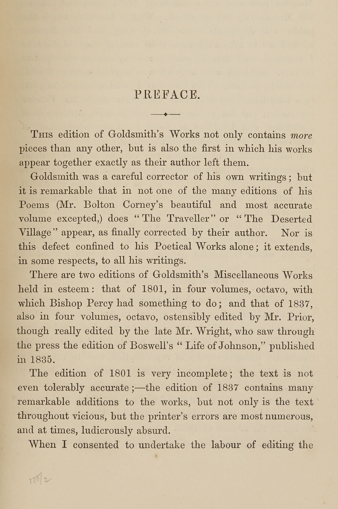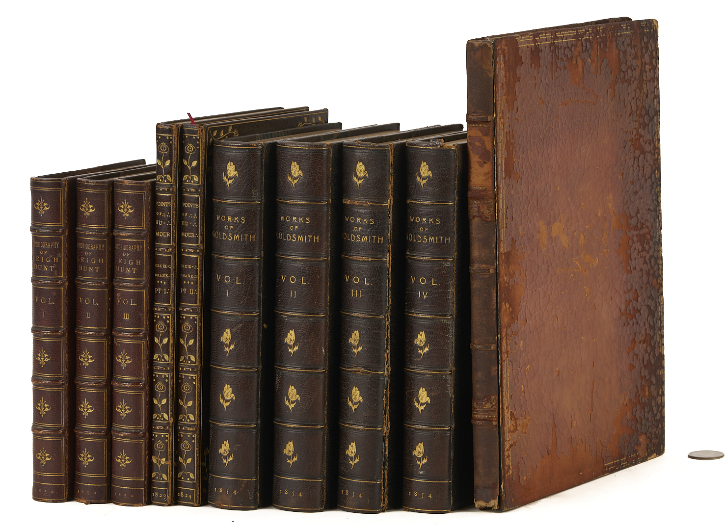 Wordsworth: Front cover detached; leather dry and flaking; spine labels missing. Cruikshank: Bookseller pencil notations and listing label; spines with slight separations. Hunt: Each in Fine condition with slight wear to covers; pencil notations ffep Vol I. Goldsmith: Each with rubbing to corners; Vol I with pencil inscription; Vol III with cover detached.