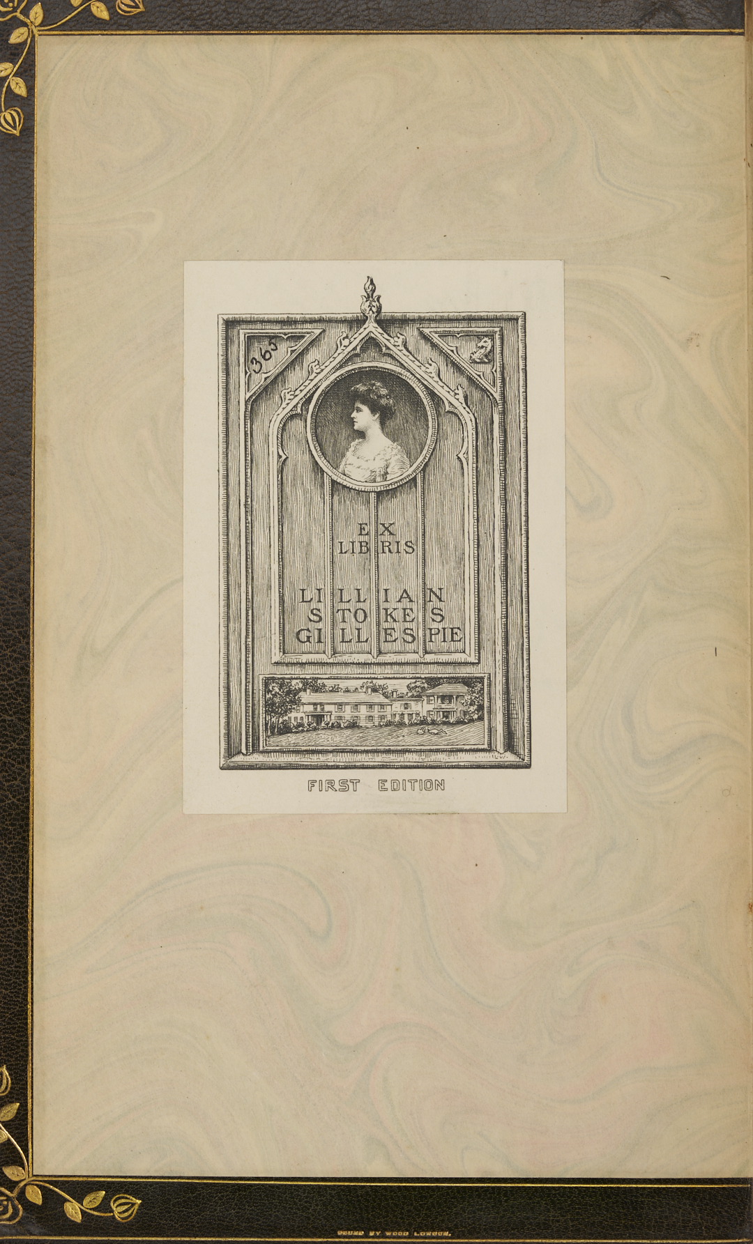 Each with bookplate of Lillian Stokes Gillespie. Note: Lillian May (Stokes) Gillespie (1869-1915) was an independently wealthy socialite from the Stokes family of New York, a line of enormously successful financiers and merchants.