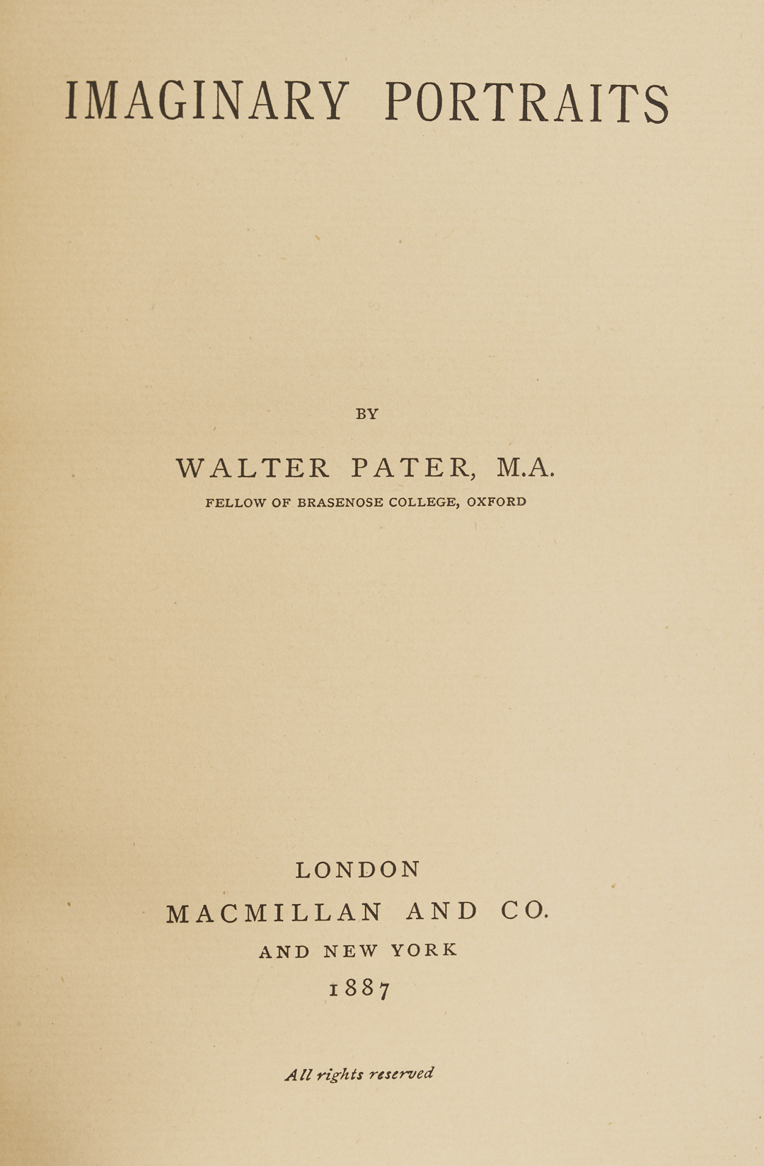 IMAGINARY PORTRAITS. London: Macmillan & Co., 1887. 180pp.