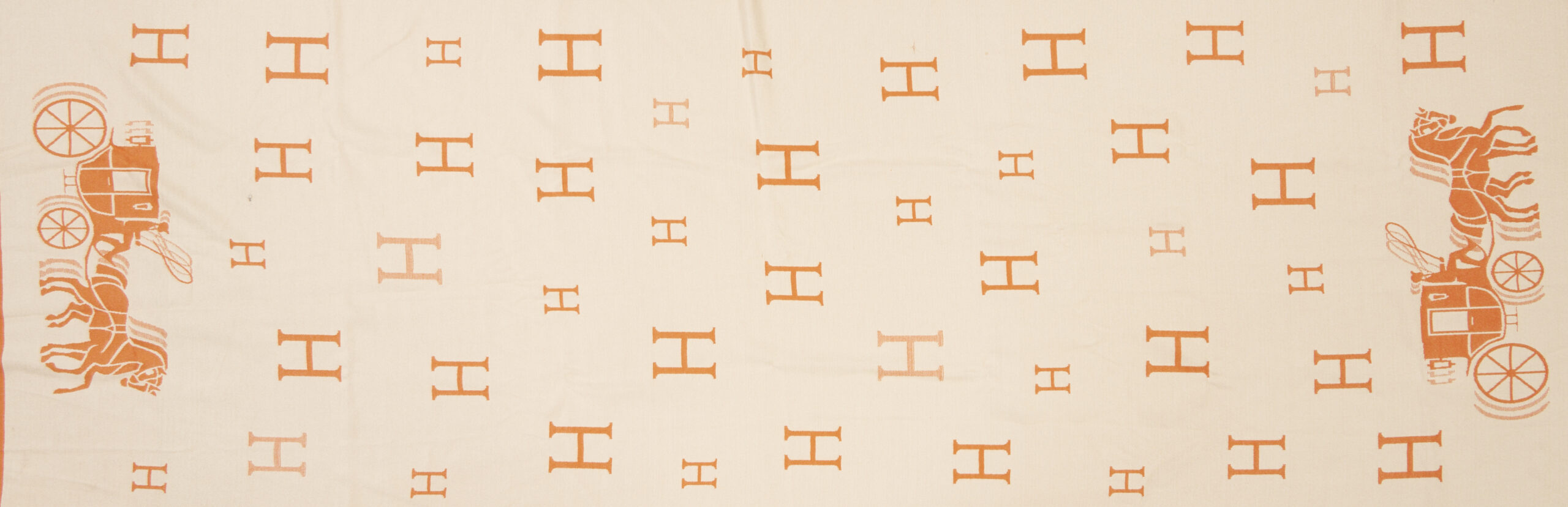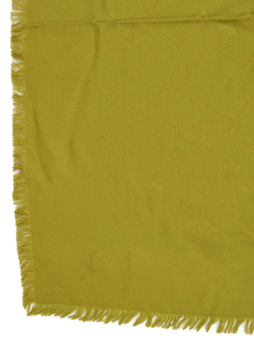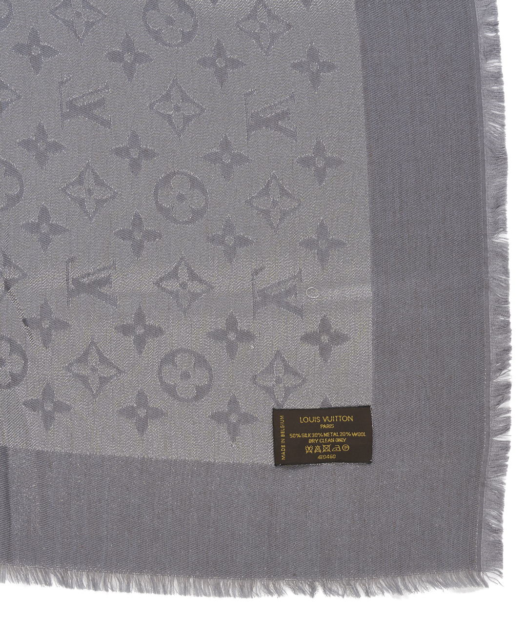 CONDITION: Hermes has a black mark near the carriage approx 1/4 in.; dry cleaning is recommended. Light fraying is visible along the ends. Louis Vuitton shawls are in very good condition.