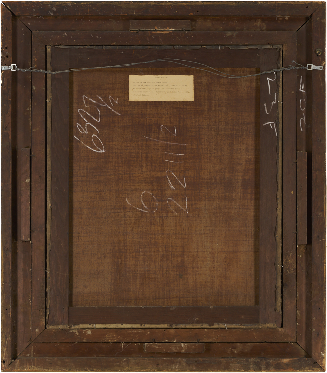 CONDITION: Painting: Lined; repaired tear with retouch, 2 inches in length, upper left background above subject’s head. A few other minor spots of retouch. Scattered craquelure. Some darkening to varnish.Frame: re-gilt, with scattered minor losses, cracks, repairs and scuffs.
