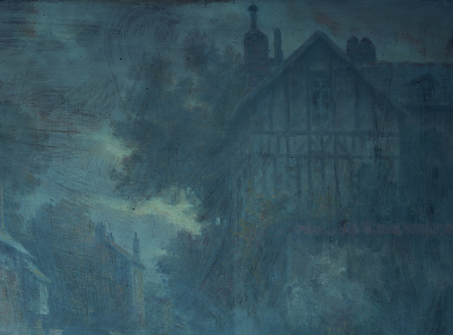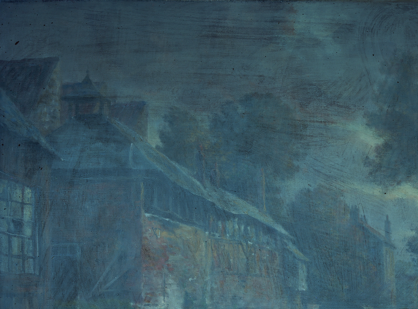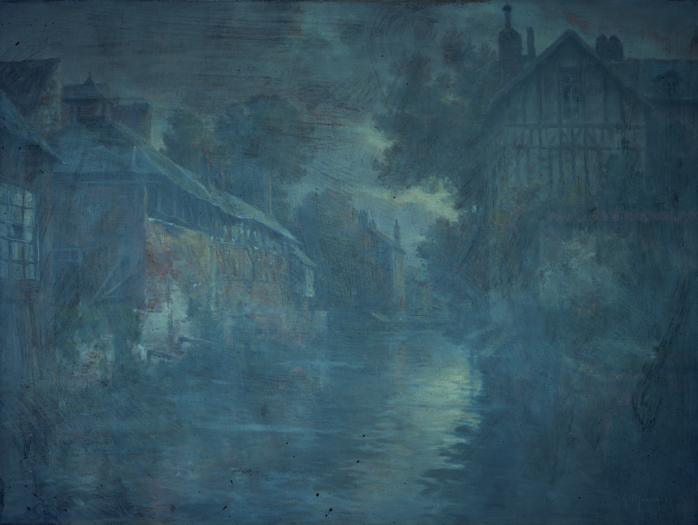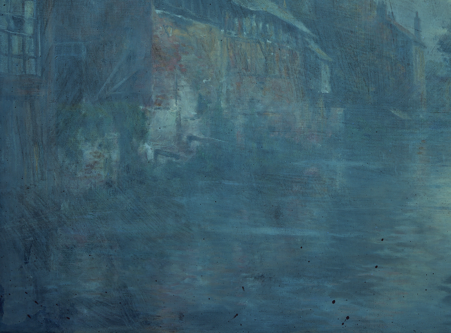 CONDITION: Painting is in overall good condition with light overall grime and a couple of areas of minute accretions to the upper left sky and lower middle water area.