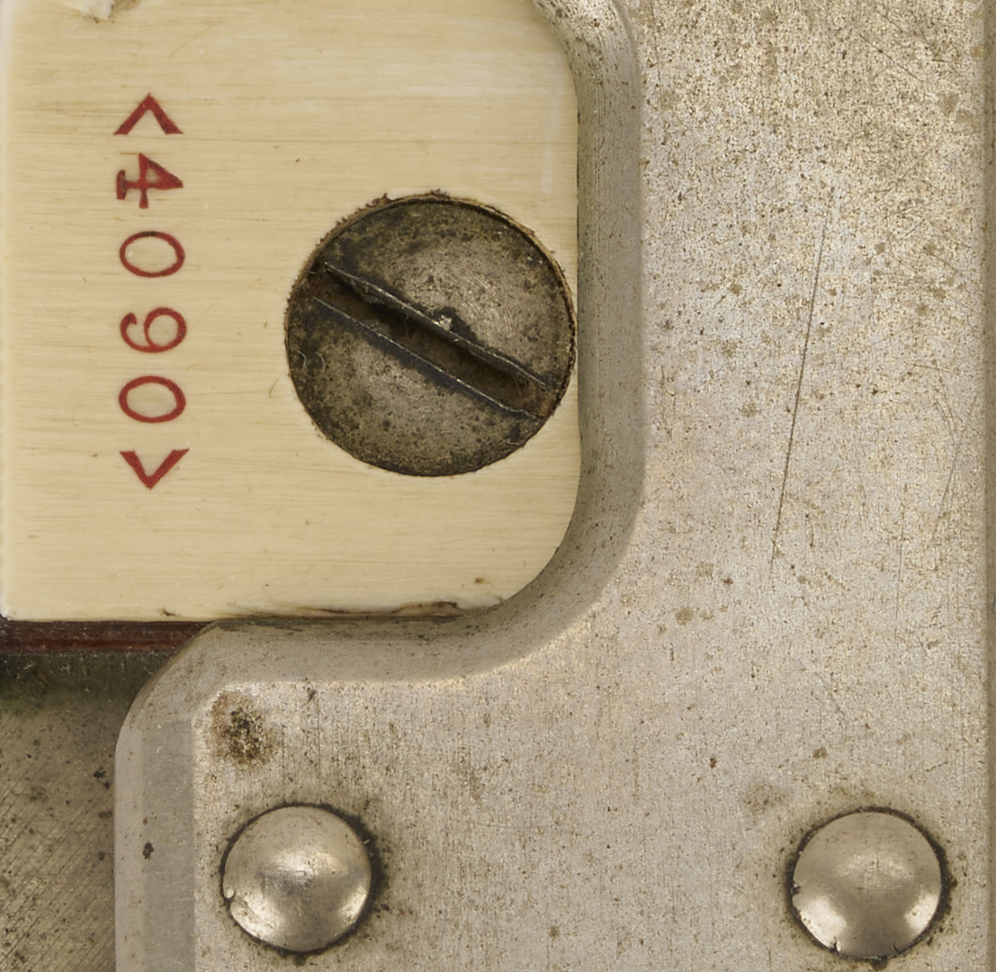 CONDITION: Very Good condition with previous owner’s initials in four places, slight yellowing with age; slides move stiffly.