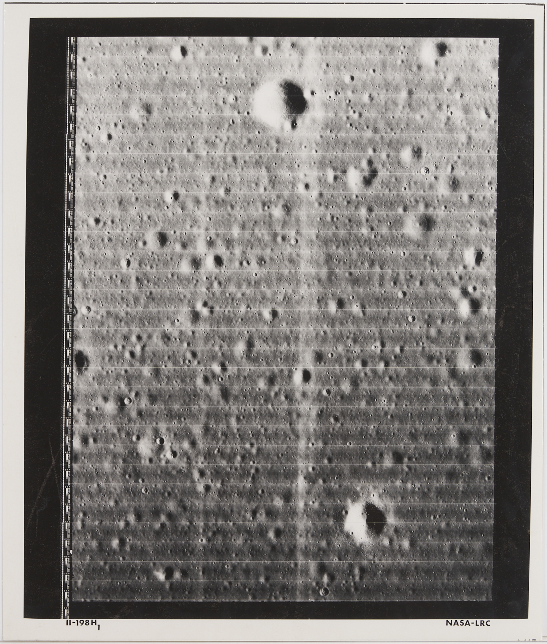 Lunar Orbiter 2’s mission was to photograph 13 primary and 17 secondary landing sites for the Apollo program in the northern region of the Moon’s near side equatorial area.” (Source: NASA.gov)