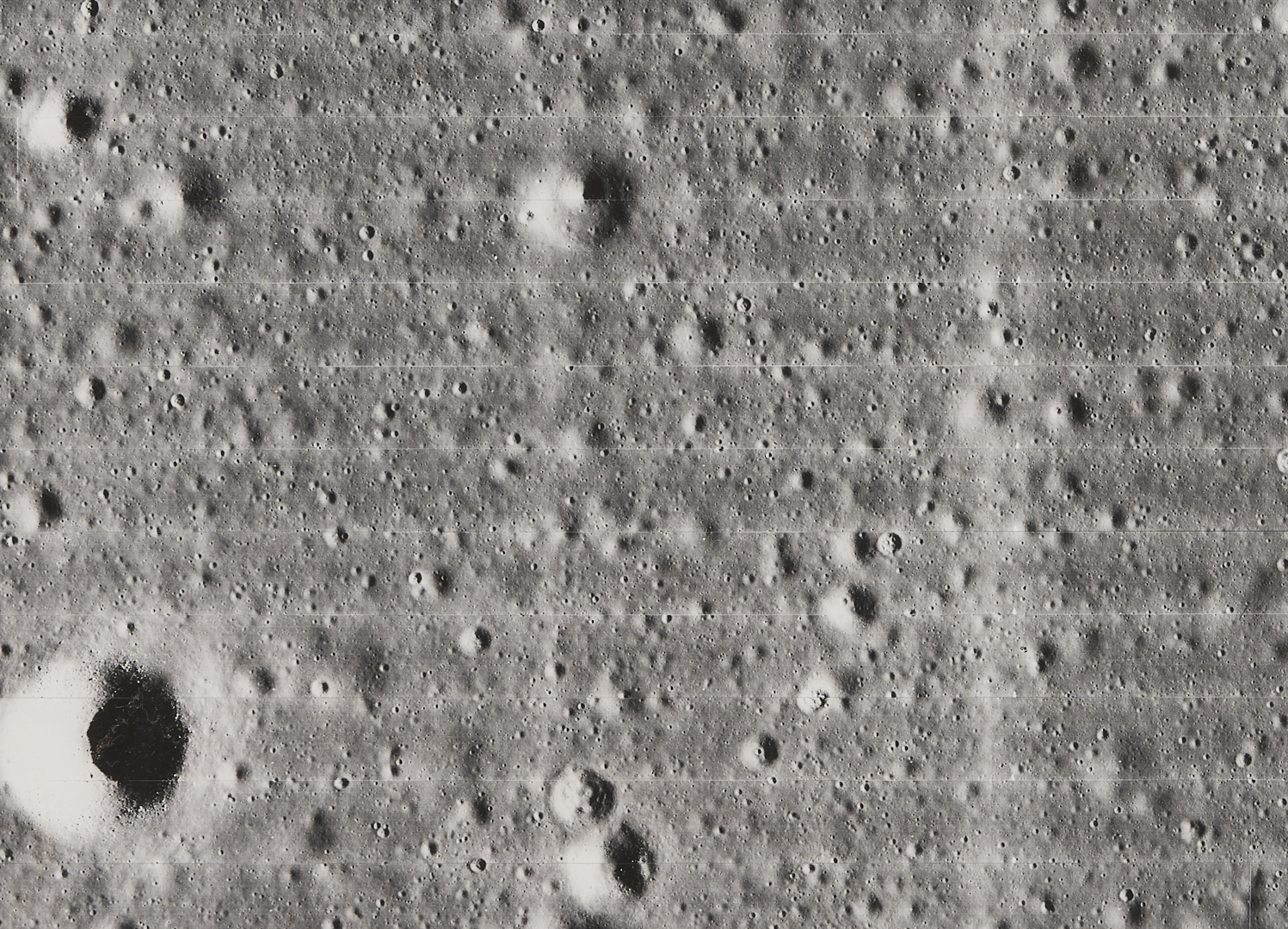 Note: “Five Lunar Orbiter missions were launched in 1966 through 1967 with the purpose of mapping the lunar surface before the Apollo landings. All five missions were successful, and 99% of the Moon was photographed with a resolution of 60 m or better. The first three missions were dedicated to imaging 20 potential lunar landing sites, selected based on Earth-based observations.