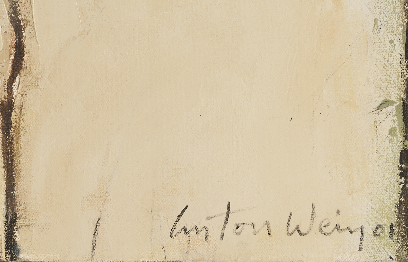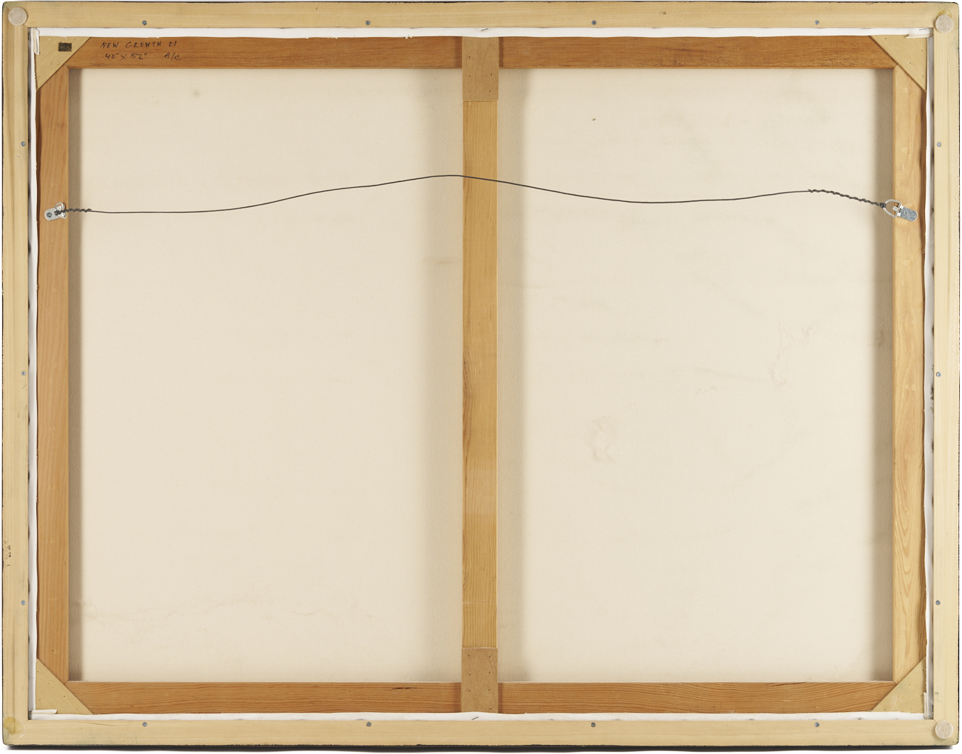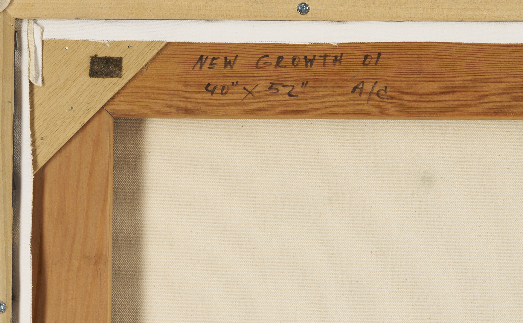Anton Weiss (Tennessee/Arkansas, 1936-2019), “New Growth,” large oil on canvas abstract painting in a plain stained wood frame. Signed lower right and dated 2001, titled en verso. Sight: 52 in. H x 40 in. W. Frame: 54 in. H x 42 in. W.