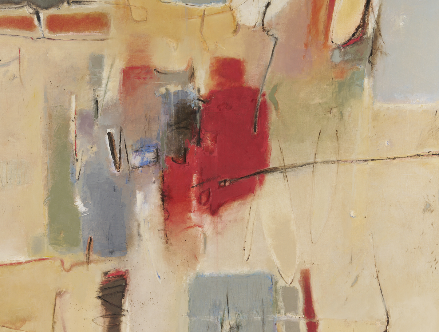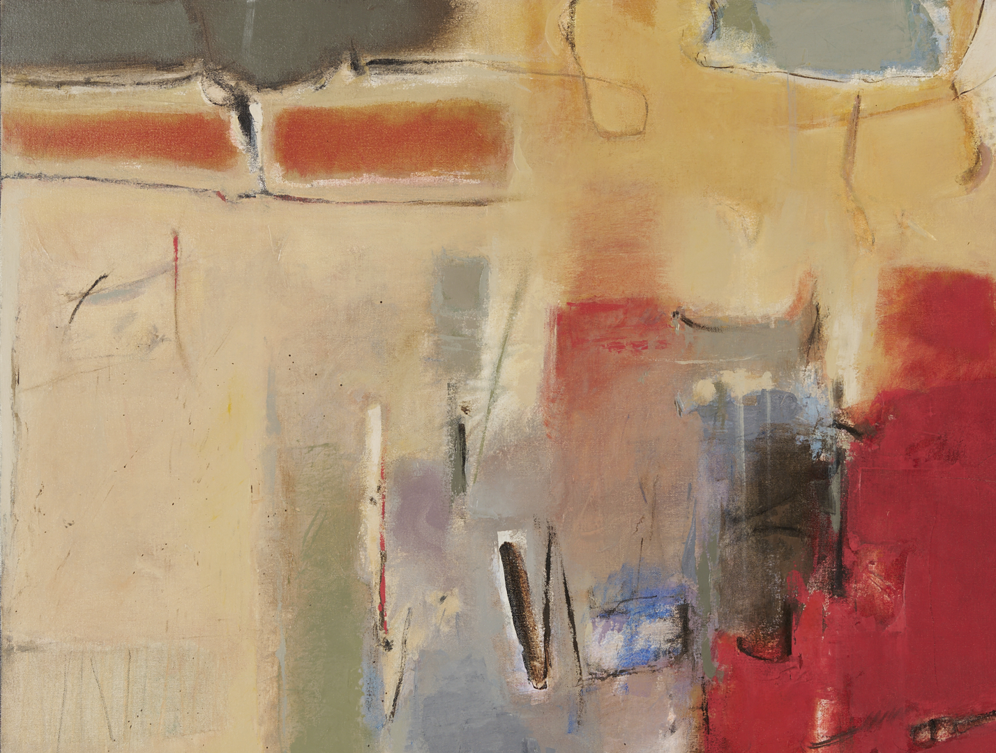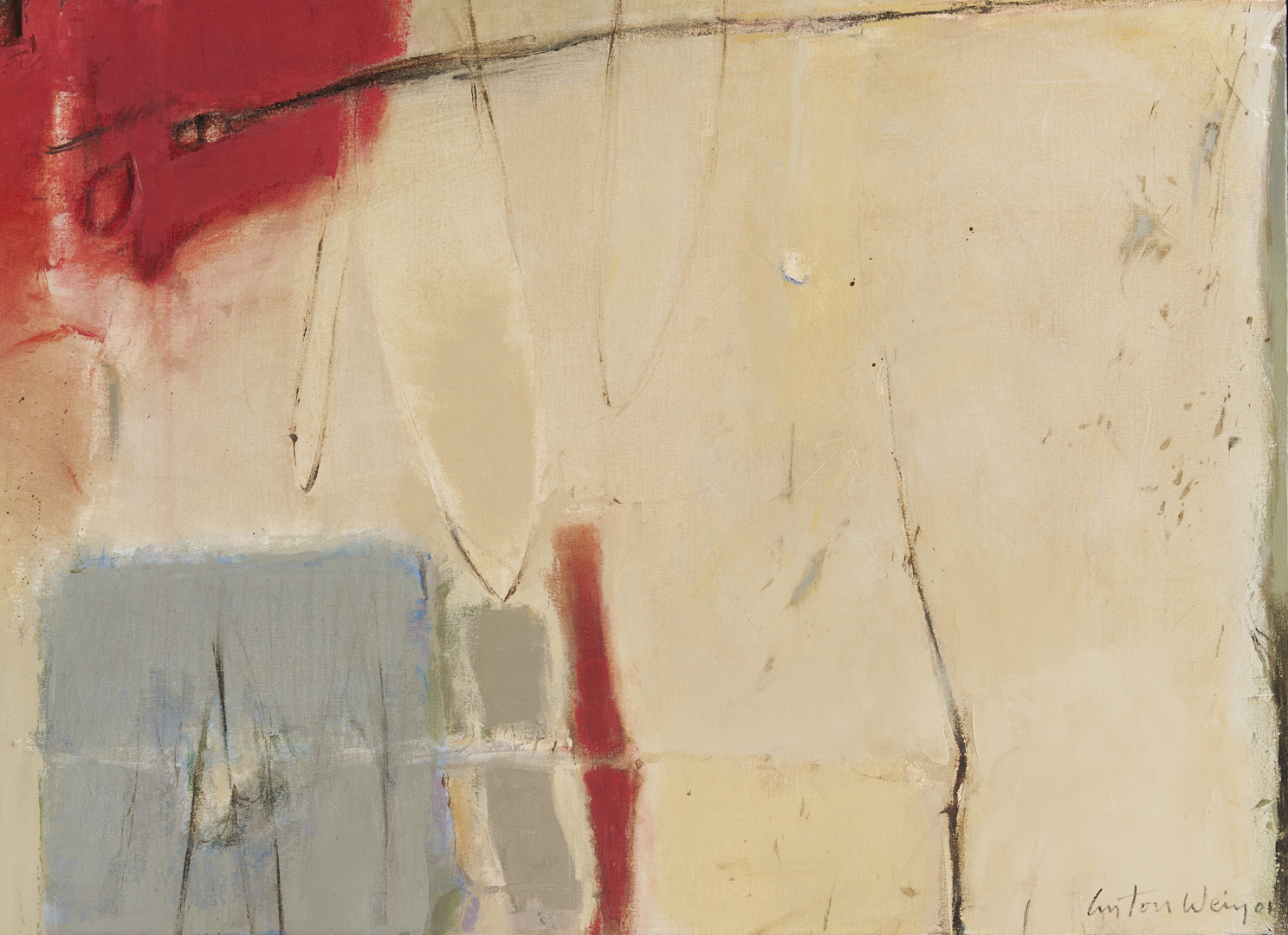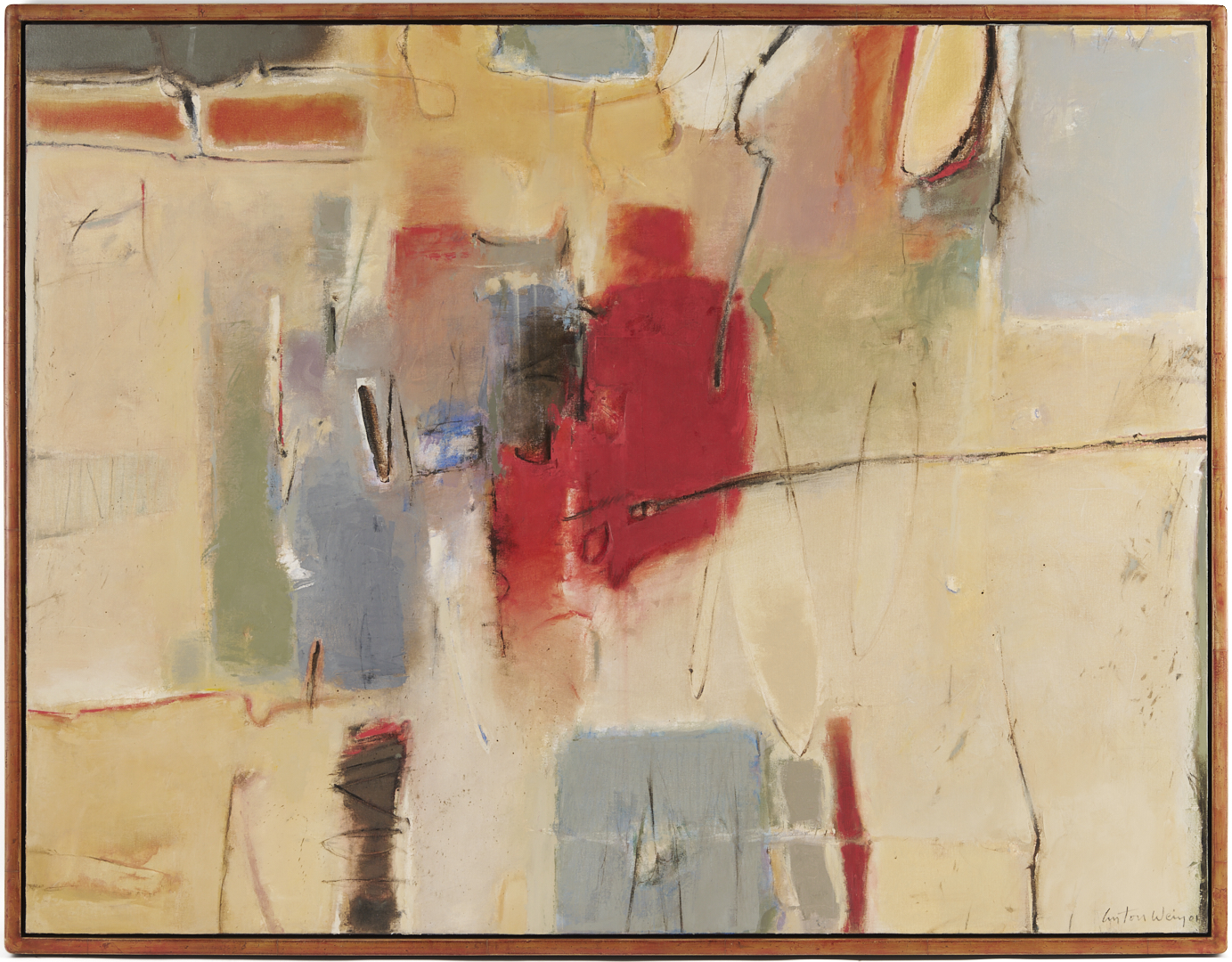Anton Weiss (Tennessee/Arkansas, 1936-2019), “New Growth,” large oil on canvas abstract painting in a plain stained wood frame. Signed lower right and dated 2001, titled en verso. Sight: 52 in. H x 40 in. W. Frame: 54 in. H x 42 in. W.
