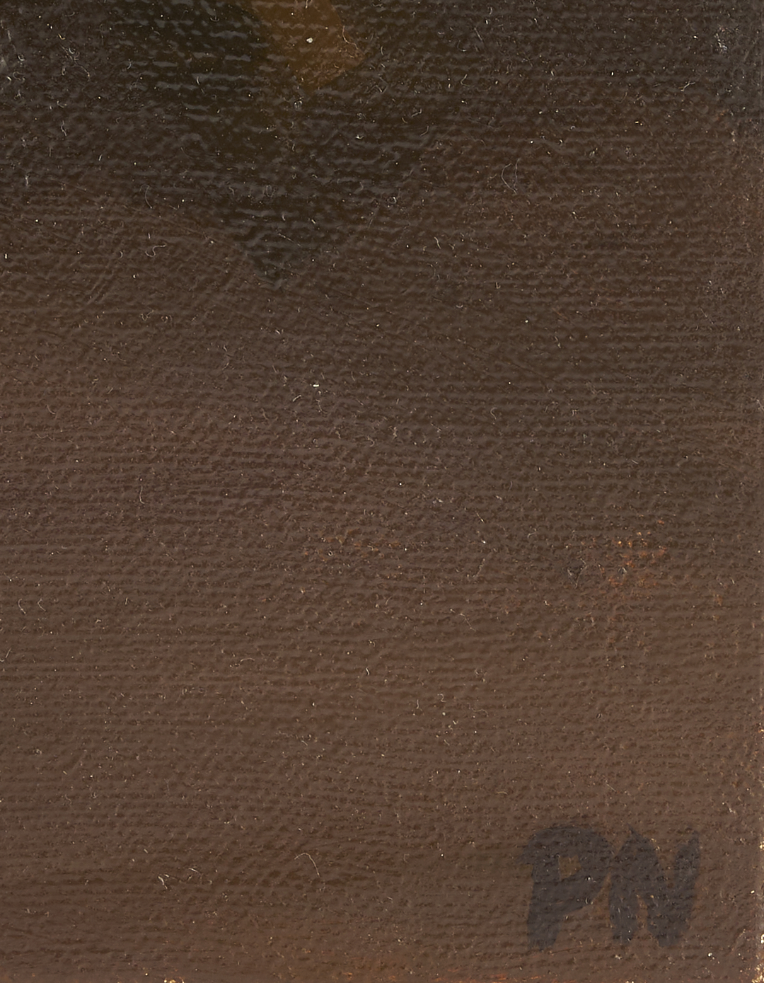 Peter Nye (American, b.1954) oil on canvas photo-realistic interior scene painting titled “Morning Interior” depicting the living room of a house with a bay window and view of the outside in the background. Initialed lower right PN. Created in 1994. Housed in a simple wood frame. Sight: 36 in. H x 44 in. W. Framed: 36 7/8 in. H x 44 7/8 in. W.