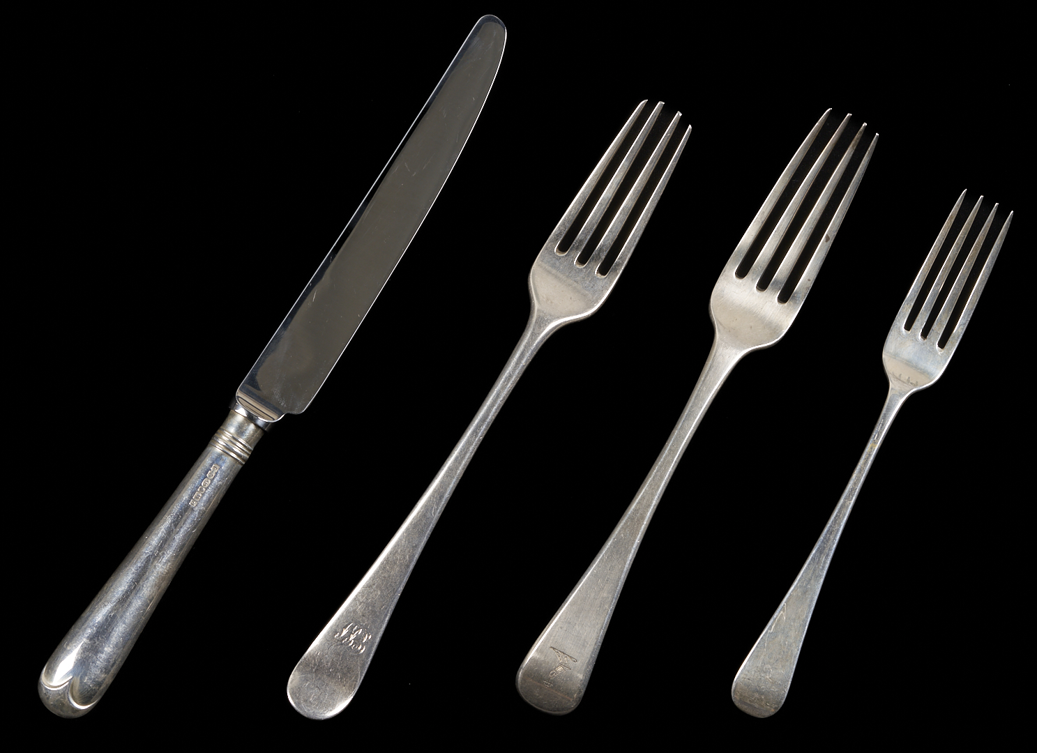 CONDITION: All pieces are in overall condition. Most of the forks and spoons are monogrammed.