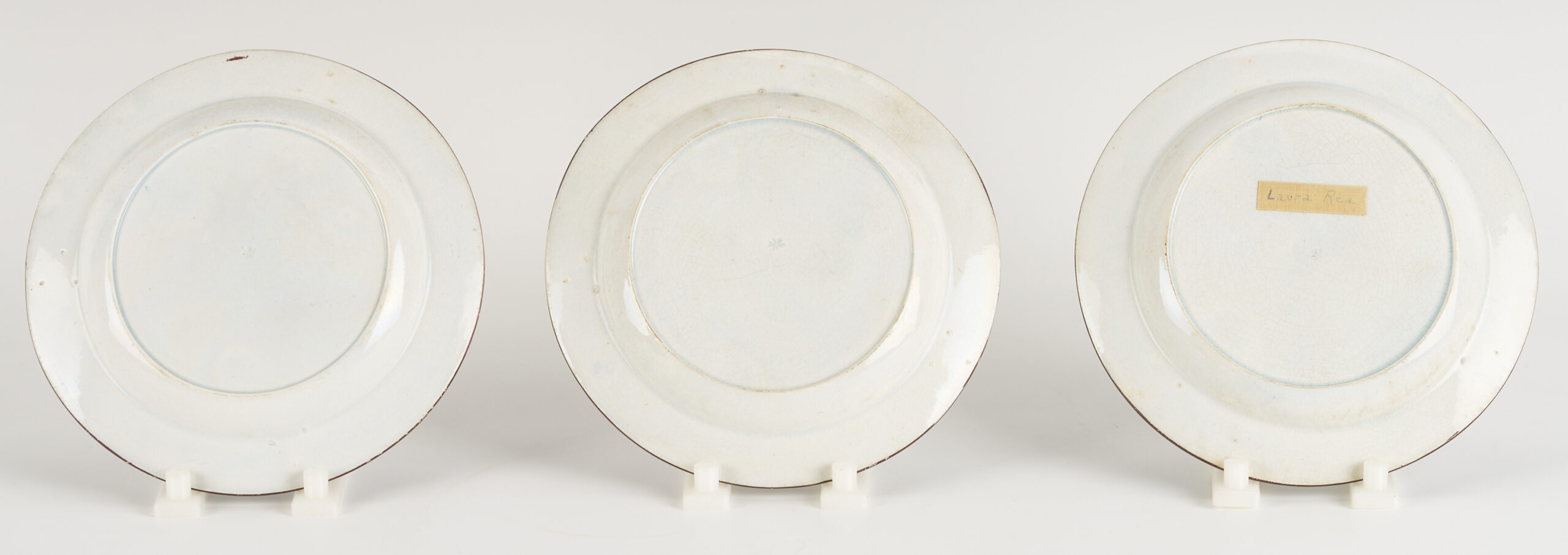 CONDITION: Scattered edge wear. Some utensil marks and wear to decoration on plates. Repairs to cracks on two cups. 2″ hairline to back of one plate, not visible from front.
