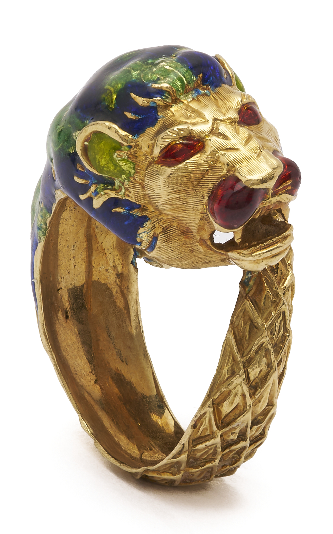 Ladies’ Italian 18K yellow gold panther ring. The ring is marked “18K Italy” and XRF tests 18K gold. The ring is size 7 and weighs 18.73 grams.
