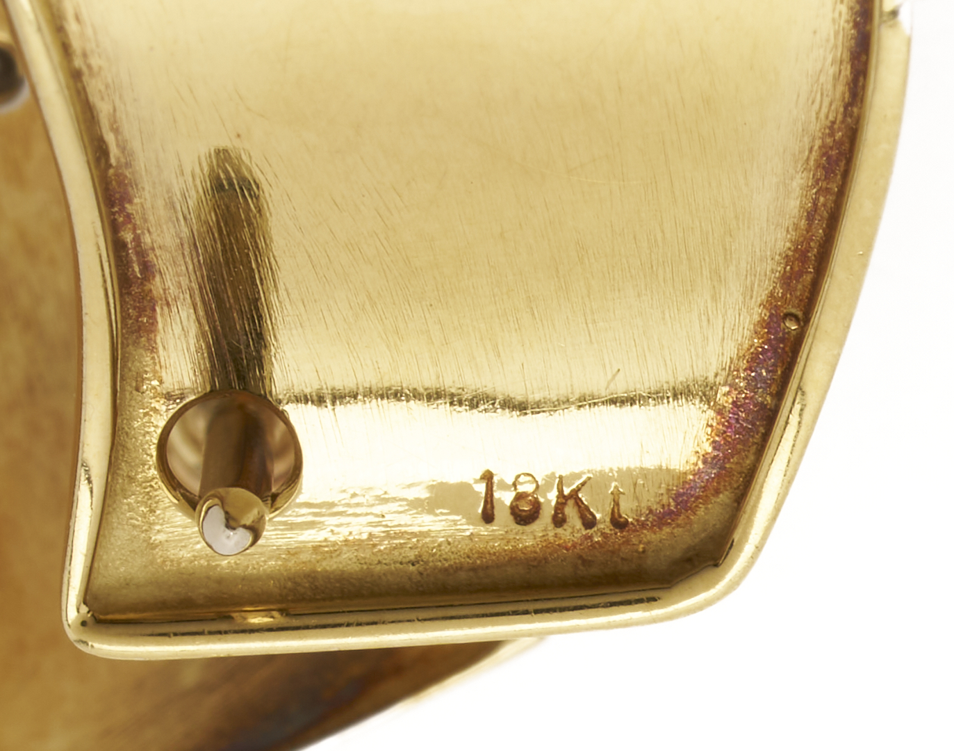 Ladies’ 18K yellow gold pierced clip back earrings featuring twenty-eight (28) round brilliant cut melee diamonds. The earrings are marked “18K” and XRF test 18K gold. The earrings are 1 in. x 1 in. and have a gross weight of 16.15 grams.